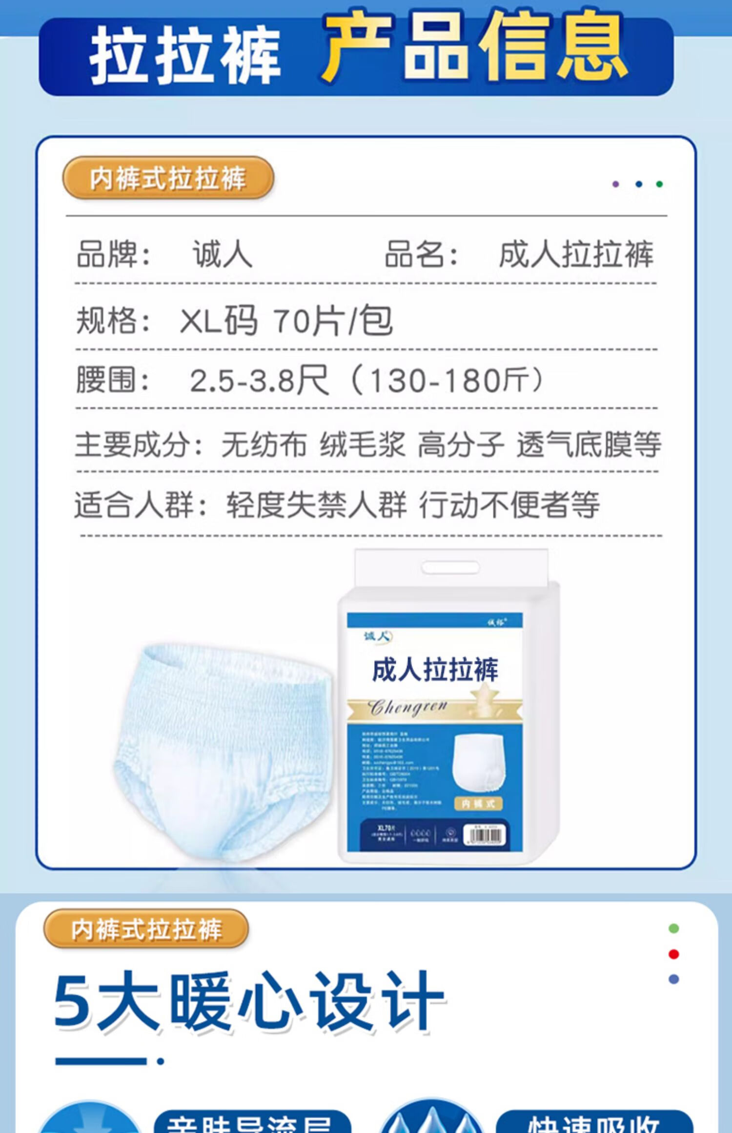 诚人成人拉拉裤L号80片成年人女经期老人用尿不湿内裤式纸尿裤男 XXXL号拉拉裤32片