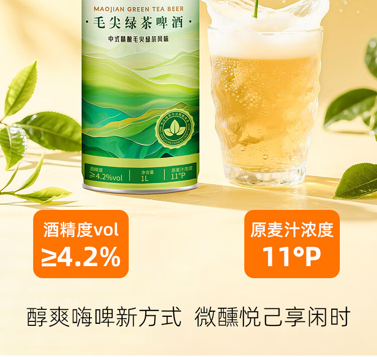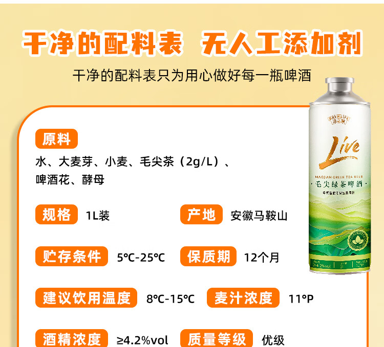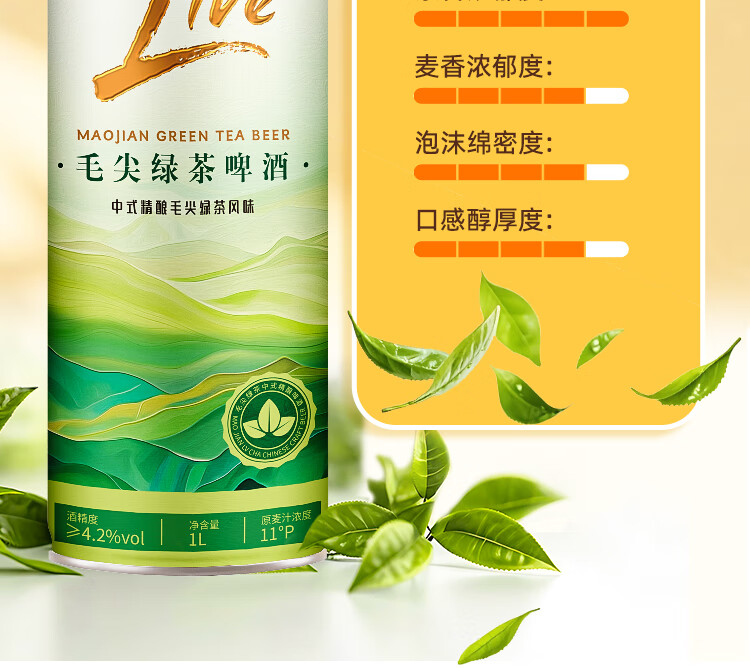 活之酿毛尖绿茶中式精酿原浆11°P全麦活啤酒1L*2罐,1L*6整箱包邮 品牌正品,假一赔十 1L 6罐 组合装