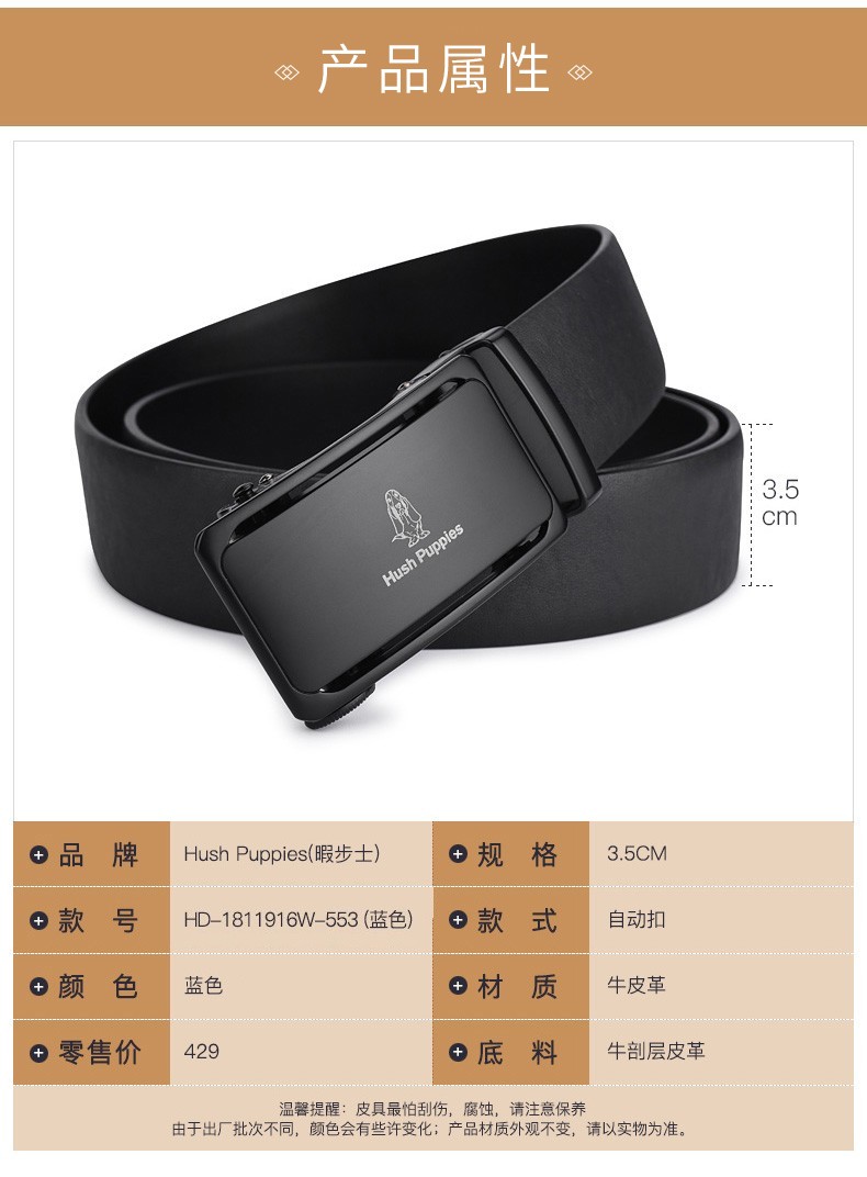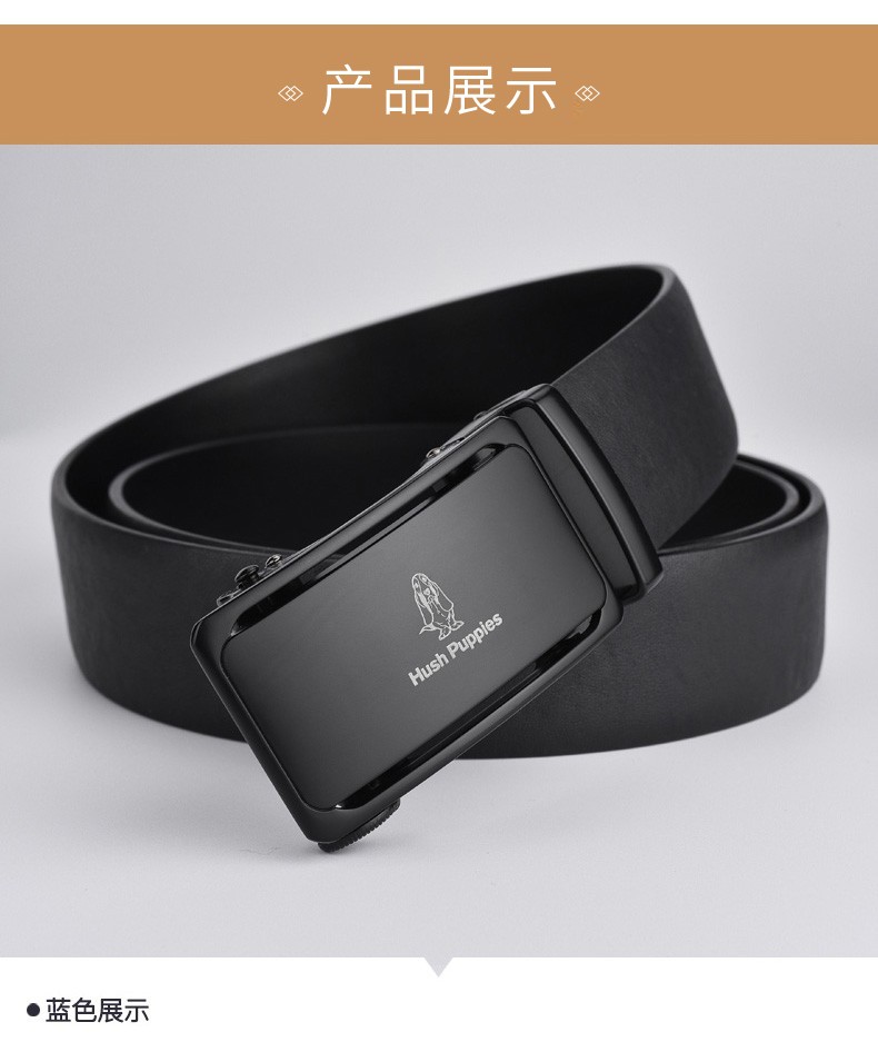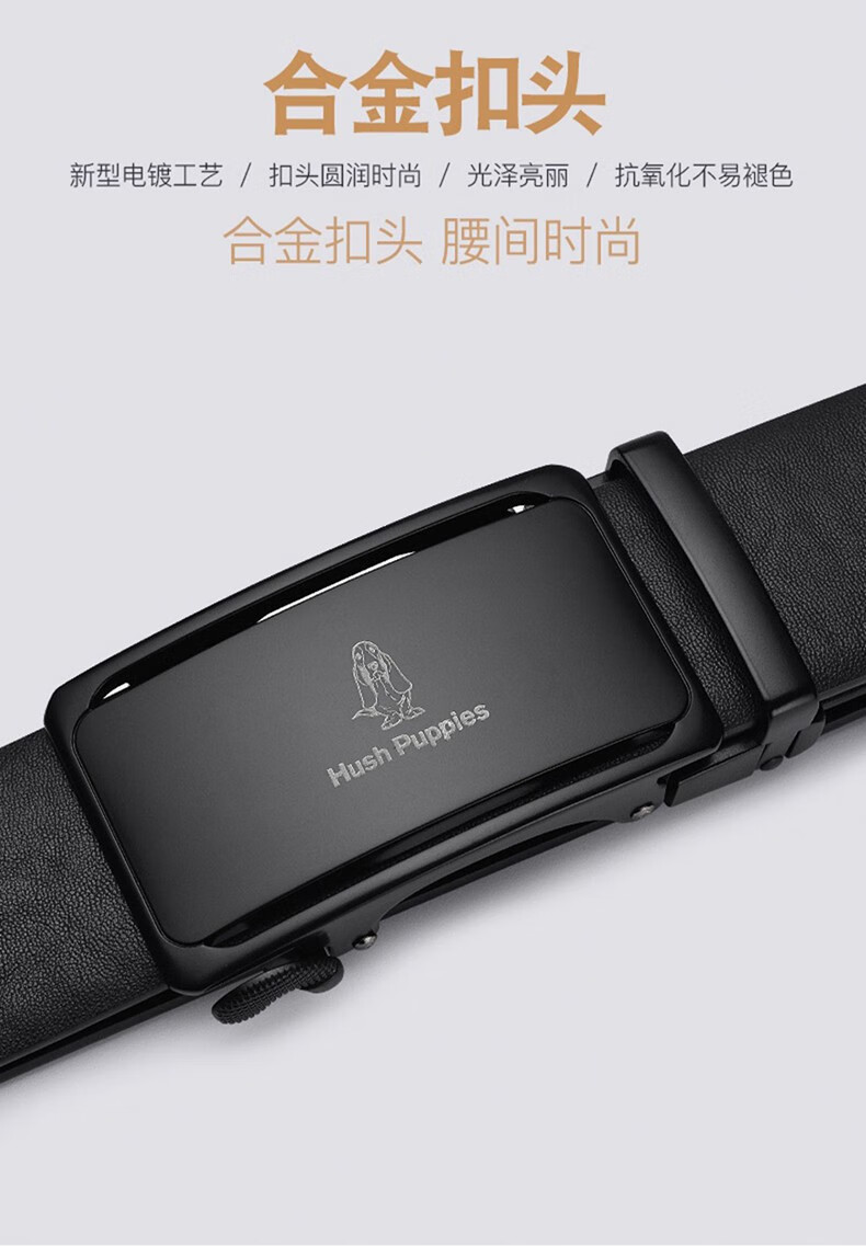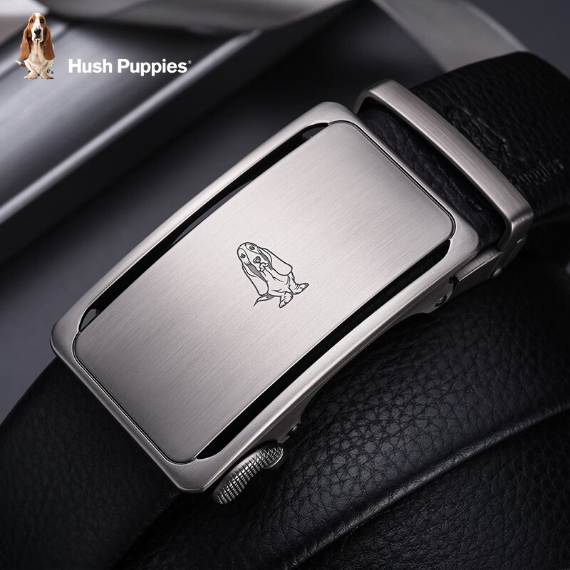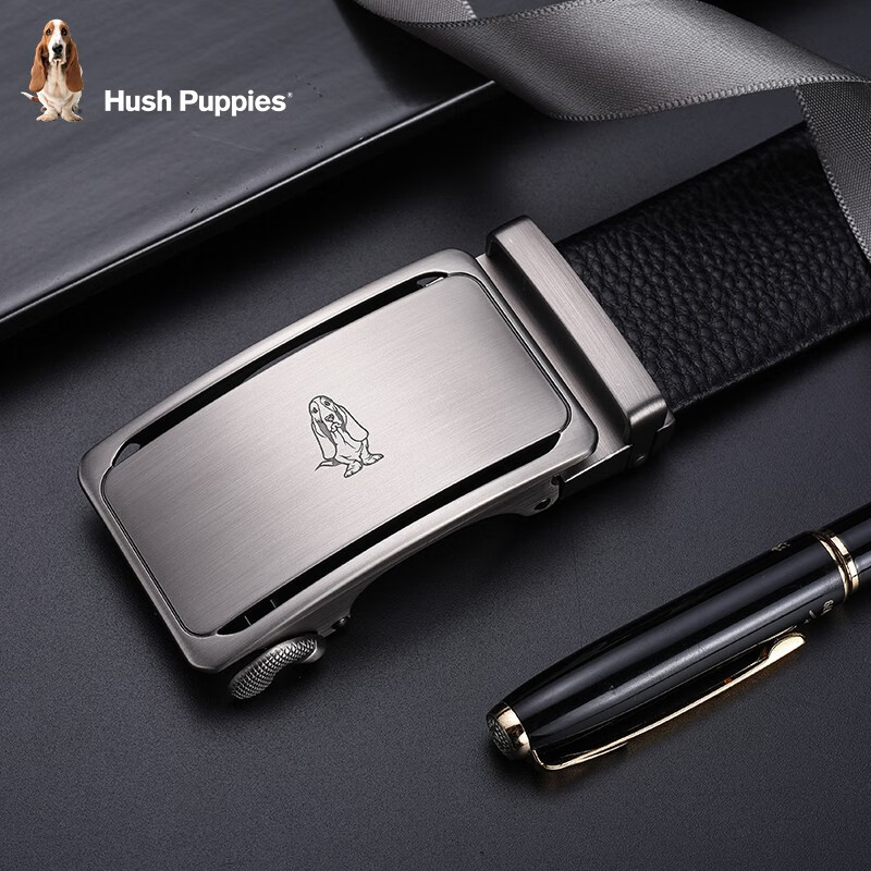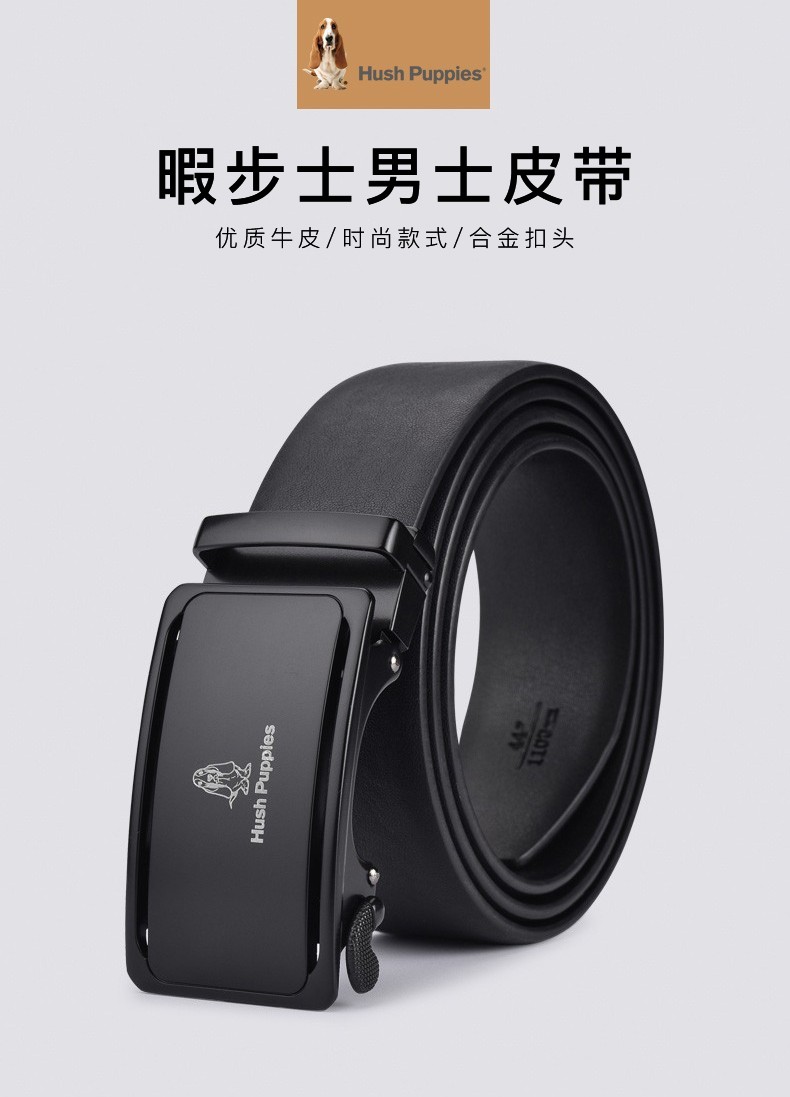 暇步士(Hush Puppies)皮带男真皮自动扣时尚男士腰带头层牛皮裤带商务休闲裤腰带送男友 黑色951W 125cm