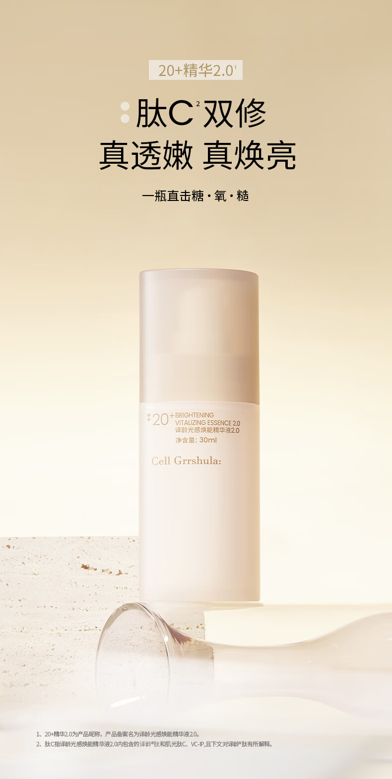 译龄20+精华30ml 减黄双抗提亮烟酰胺保湿补水VC精华 【替换芯】20精华30ml 30ml