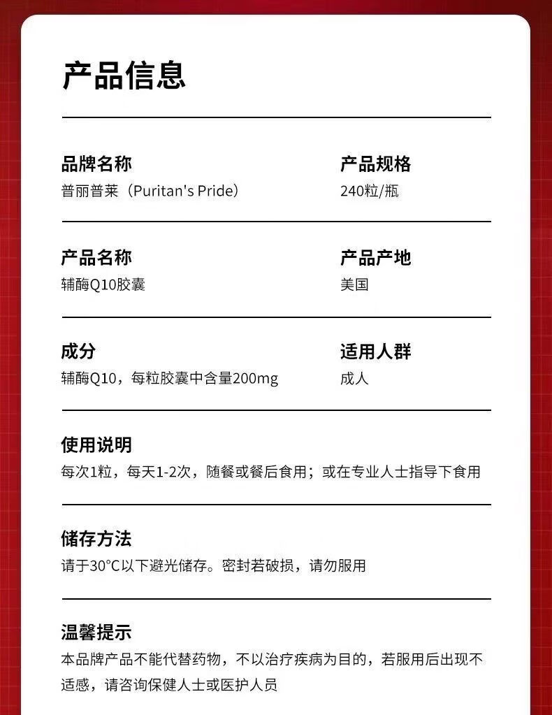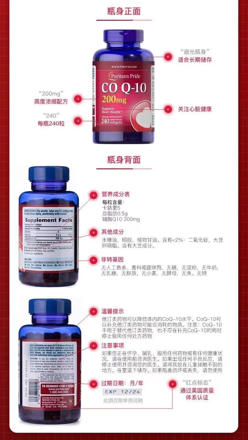 普丽普莱(Puritan's Pride)普丽普莱辅酶q10软胶囊200mg240粒辅酶素q10coq10美国进口240粒 普丽普莱辅酶q10 240粒*2瓶