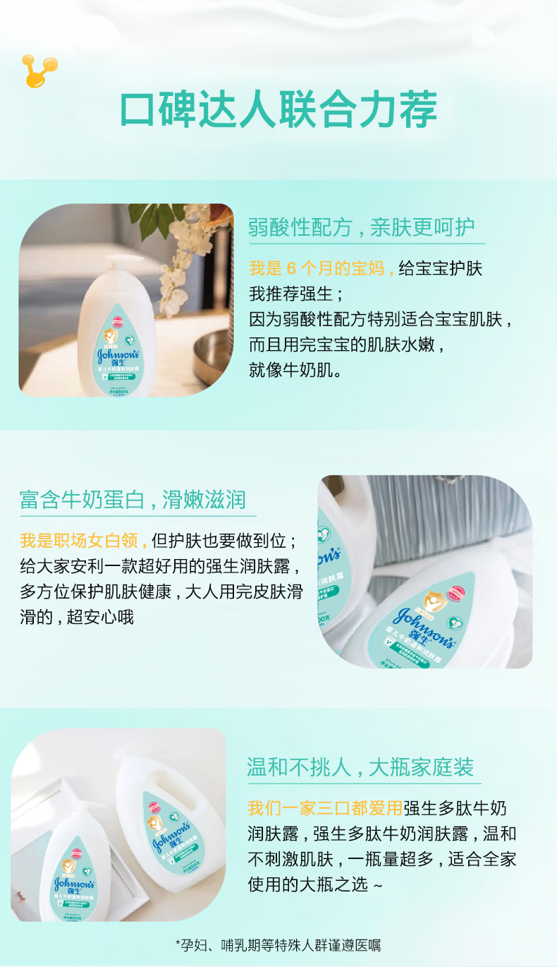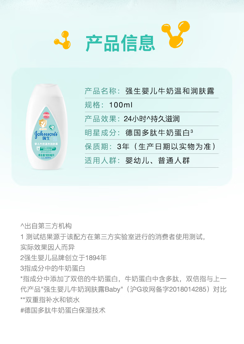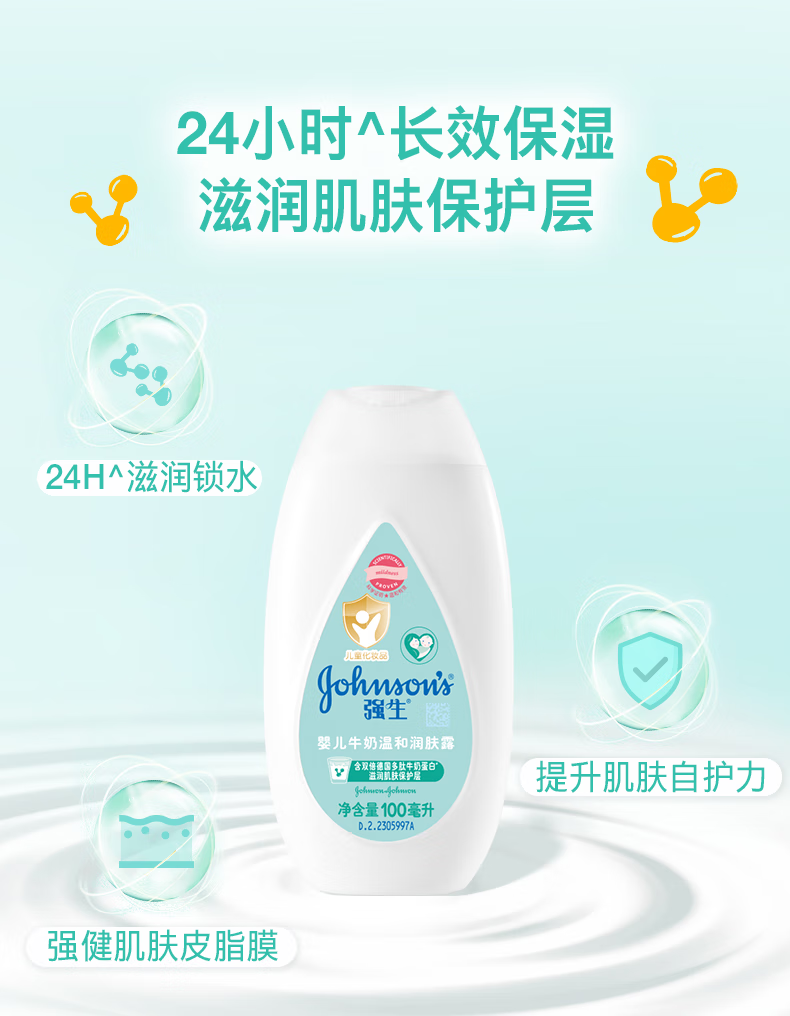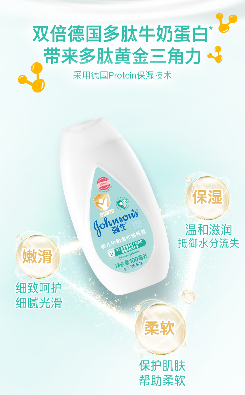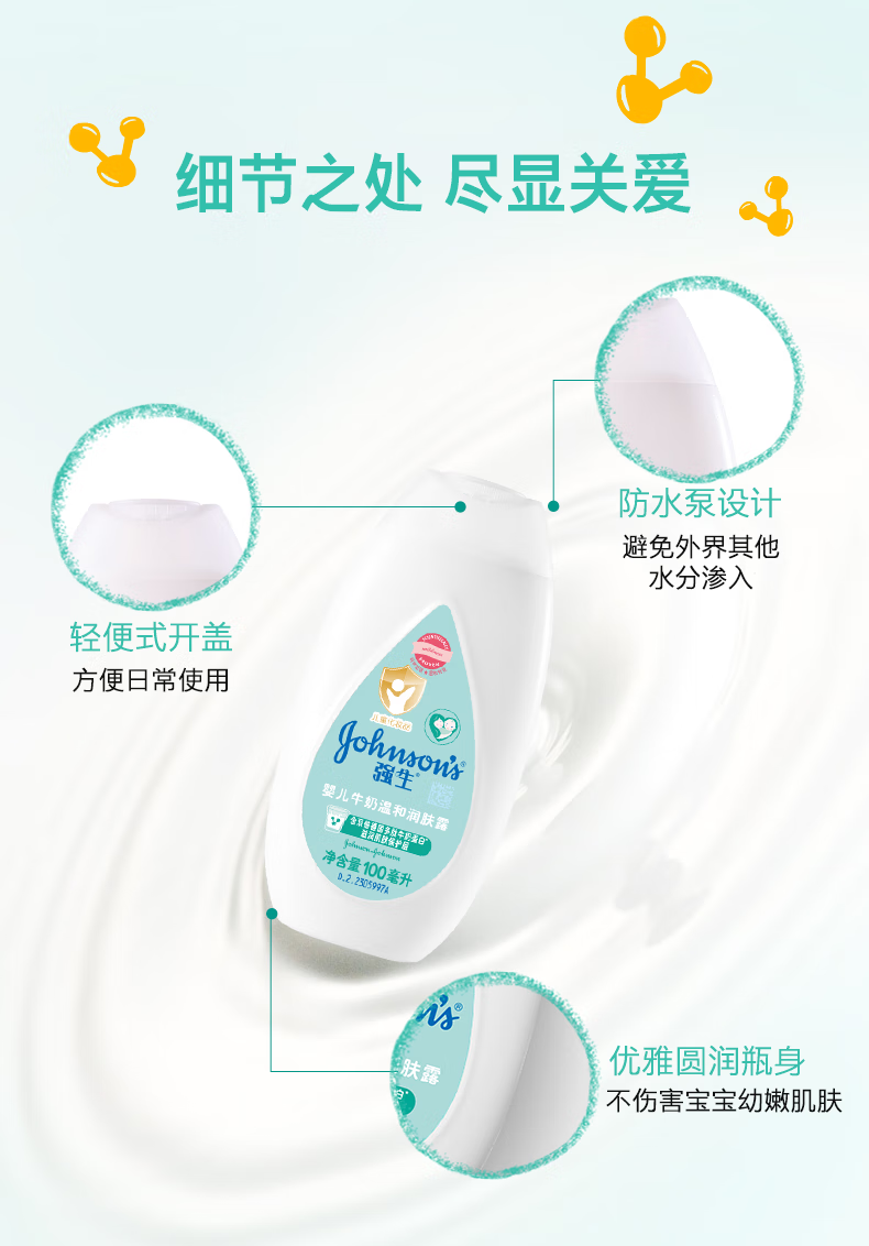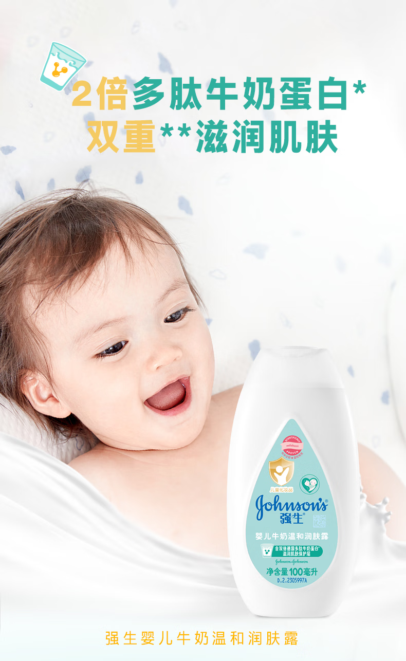 强生(Johnson)婴儿牛奶身体乳200ml 宝宝婴儿儿童青少年保湿面霜护手霜润肤乳