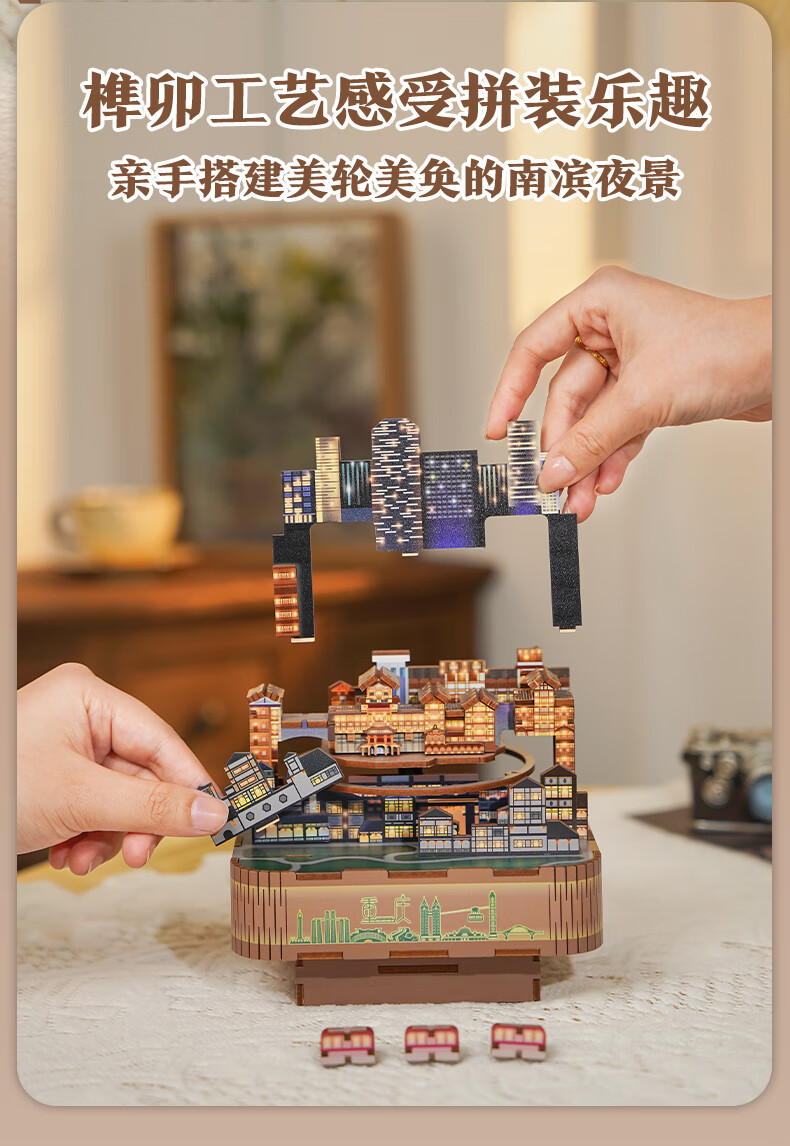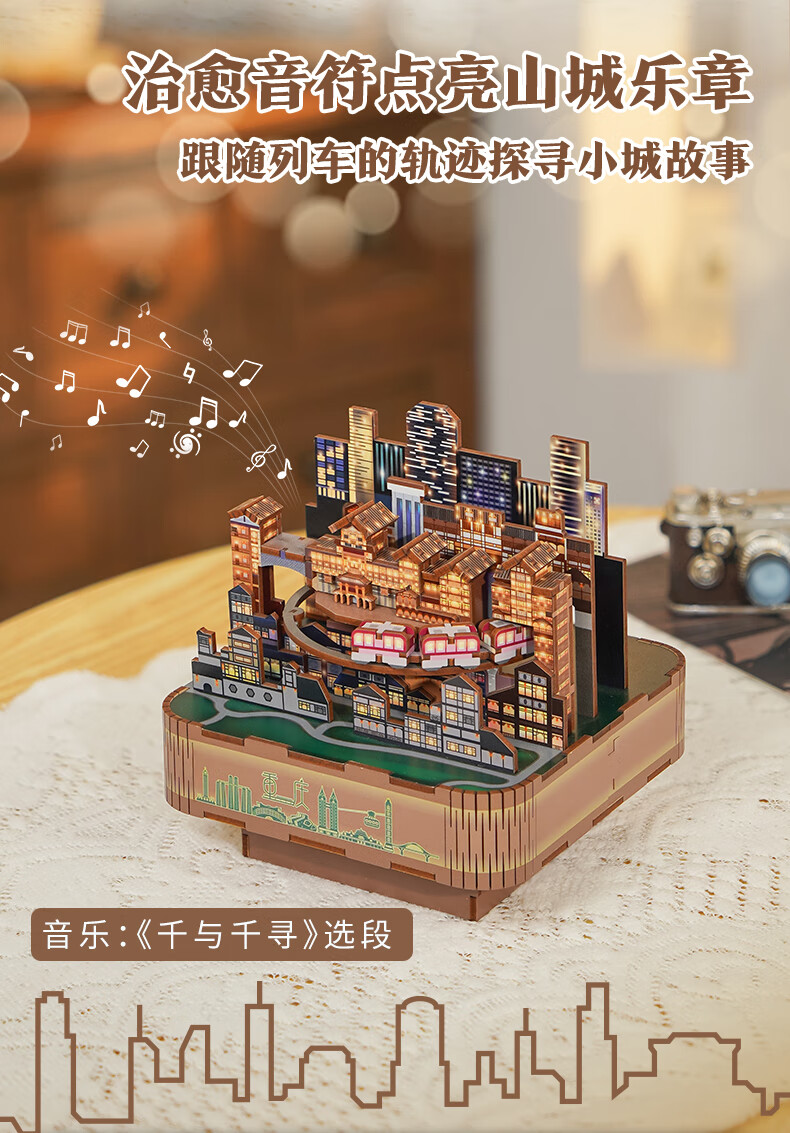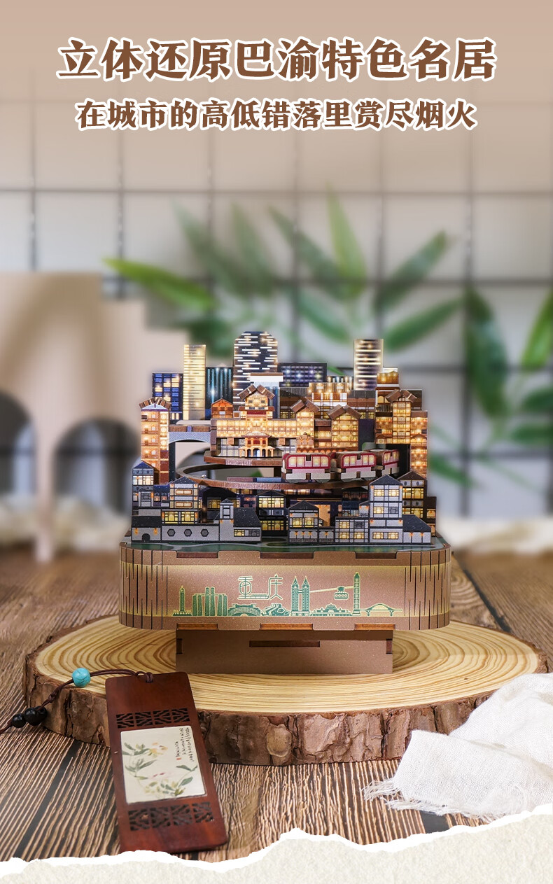 同趣山城重庆八音盒diy手工积木玩具拼装旋转音乐盒立体摆件生日礼物