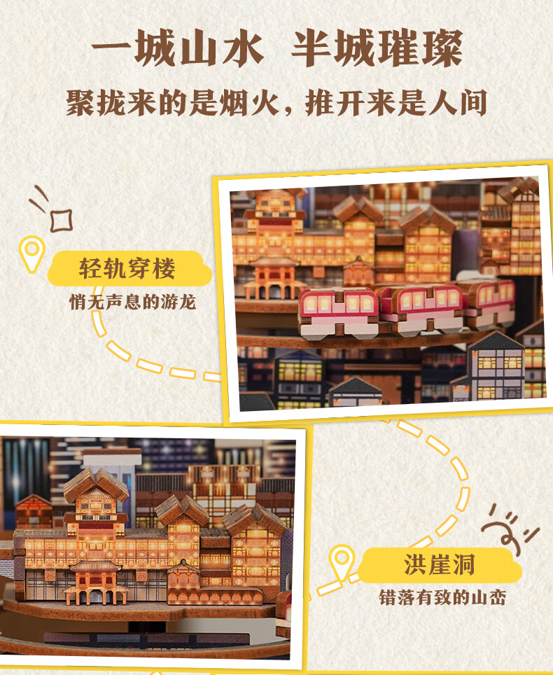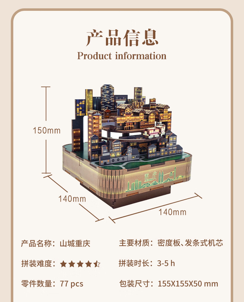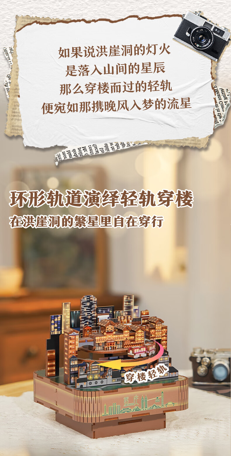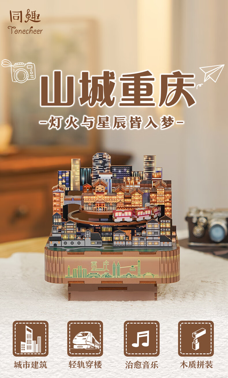 同趣山城重庆八音盒diy手工积木玩具拼装旋转音乐盒立体摆件生日礼物