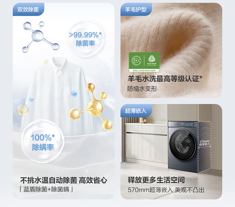 西门子(SIEMENS)小晶钻优享10KG大容量全自动滚筒洗衣机深层净洗 蒸汽除菌 羊毛洗护 隐形触控WG52H2X10W国家补贴