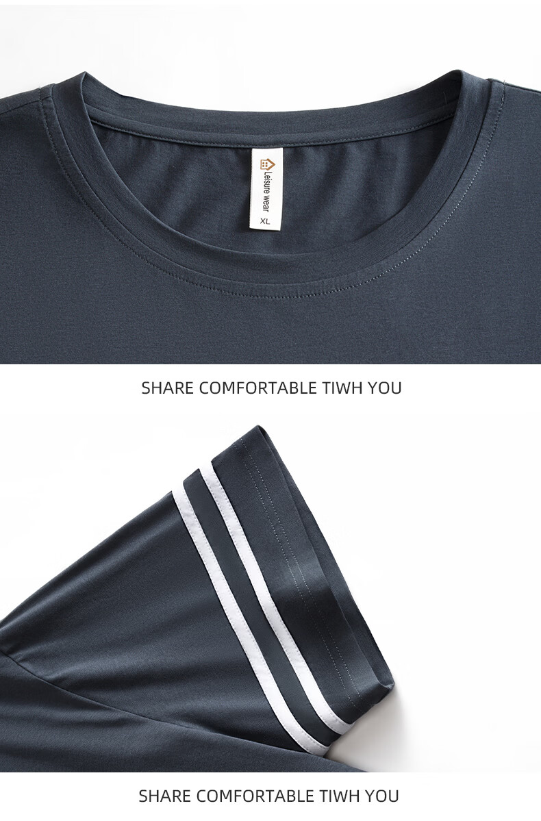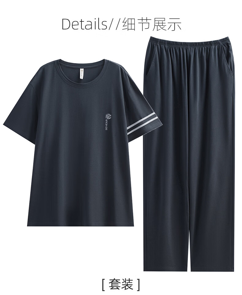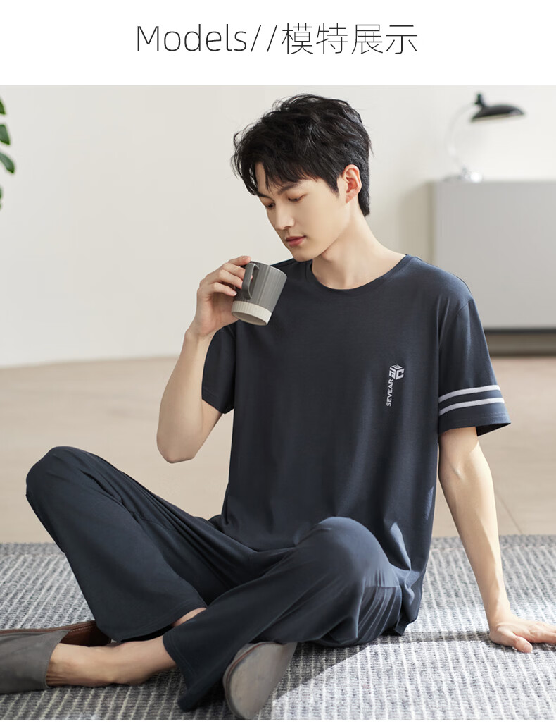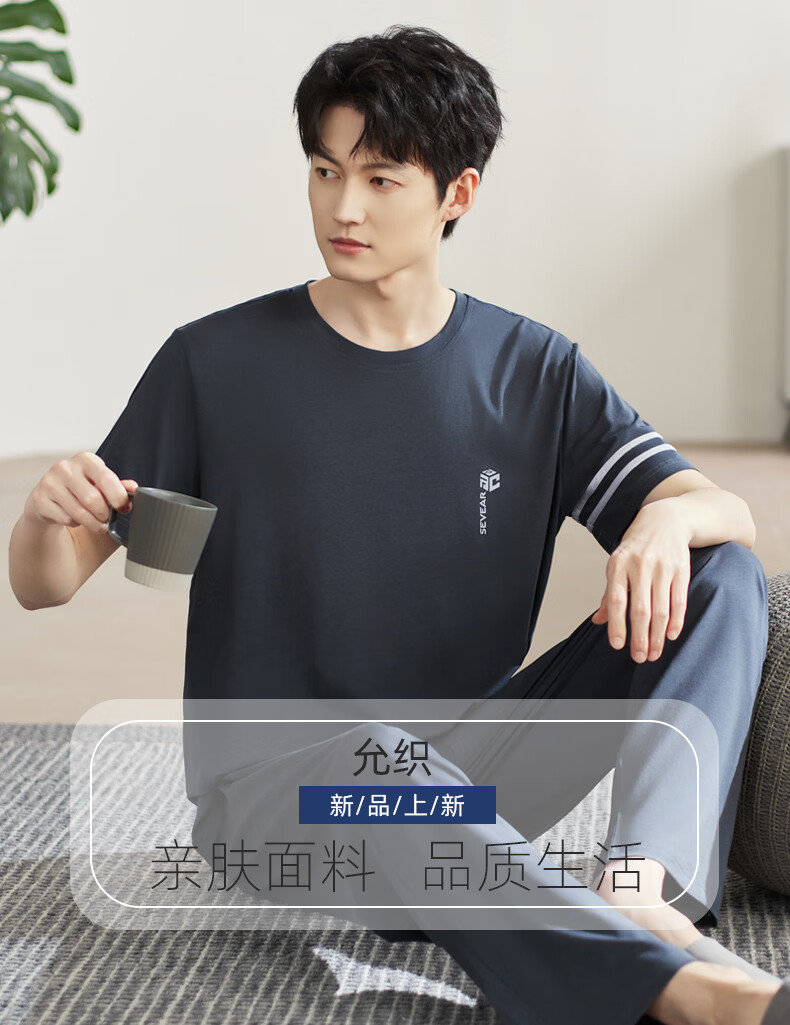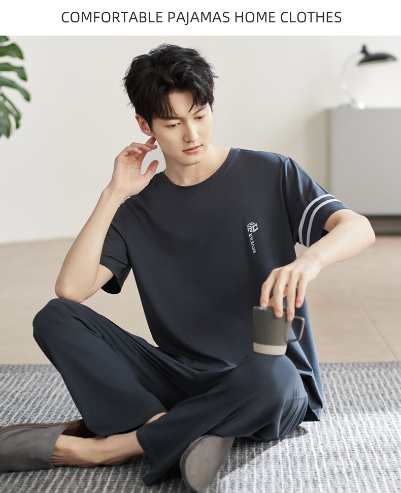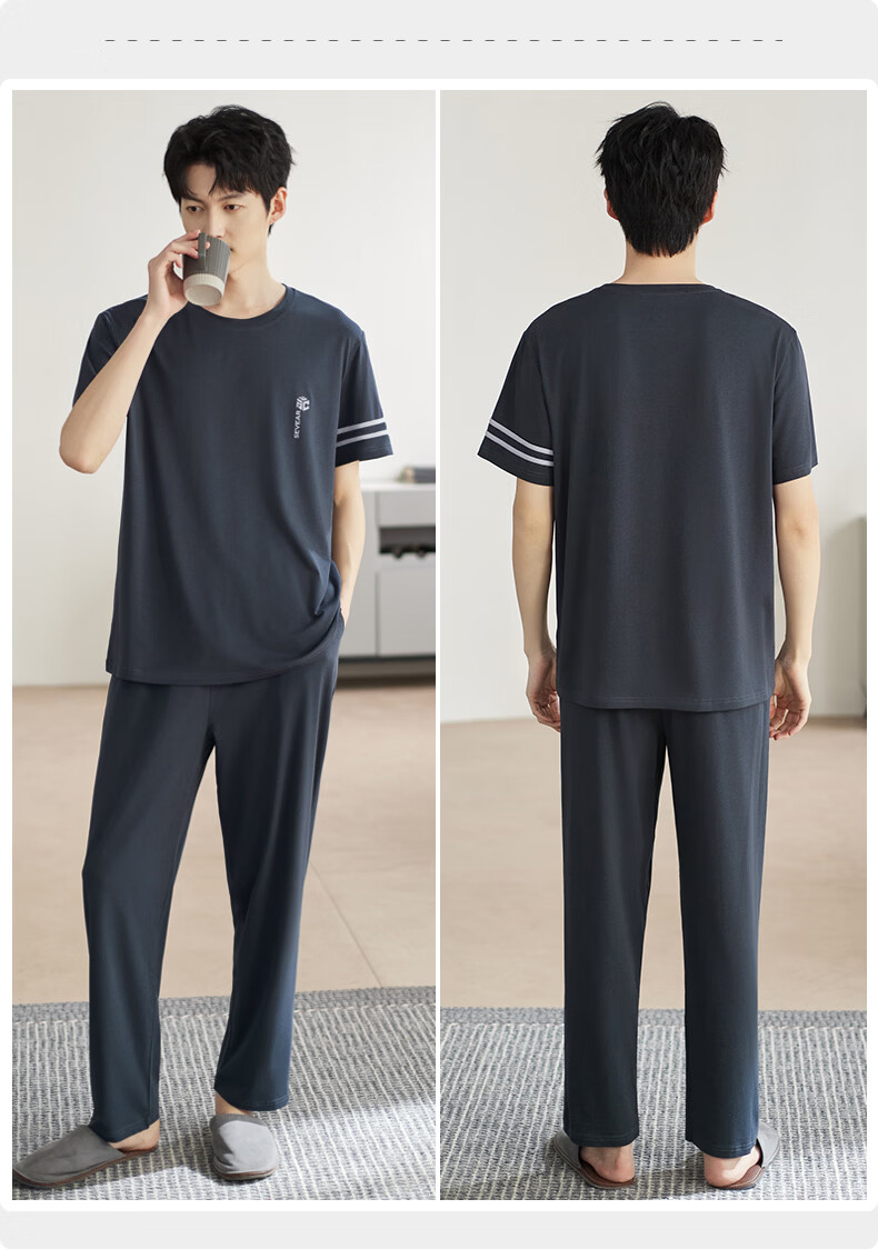 允织睡衣男夏季莫代尔短袖长裤2026年新款夏天宽松大码男士家居服套装 2554-染阳墨 M (165) :建议100-120斤穿着