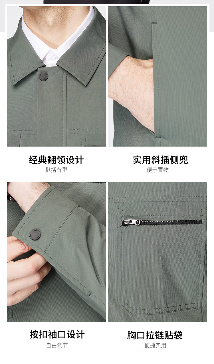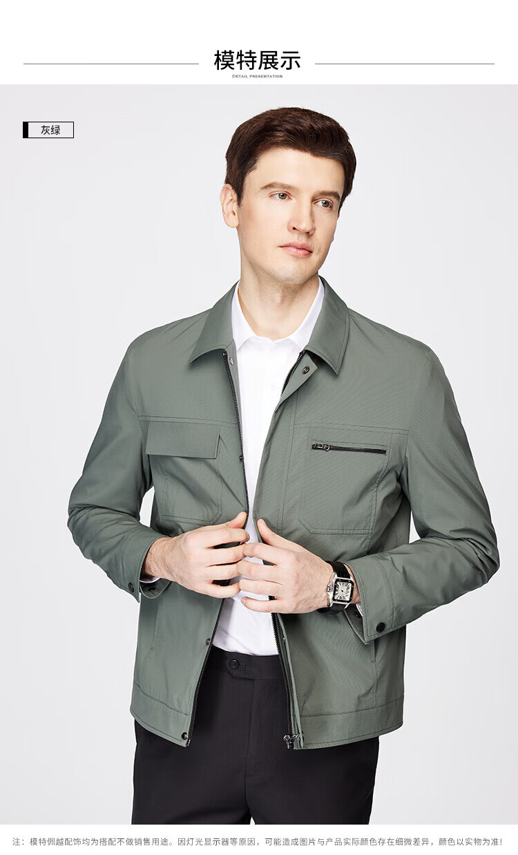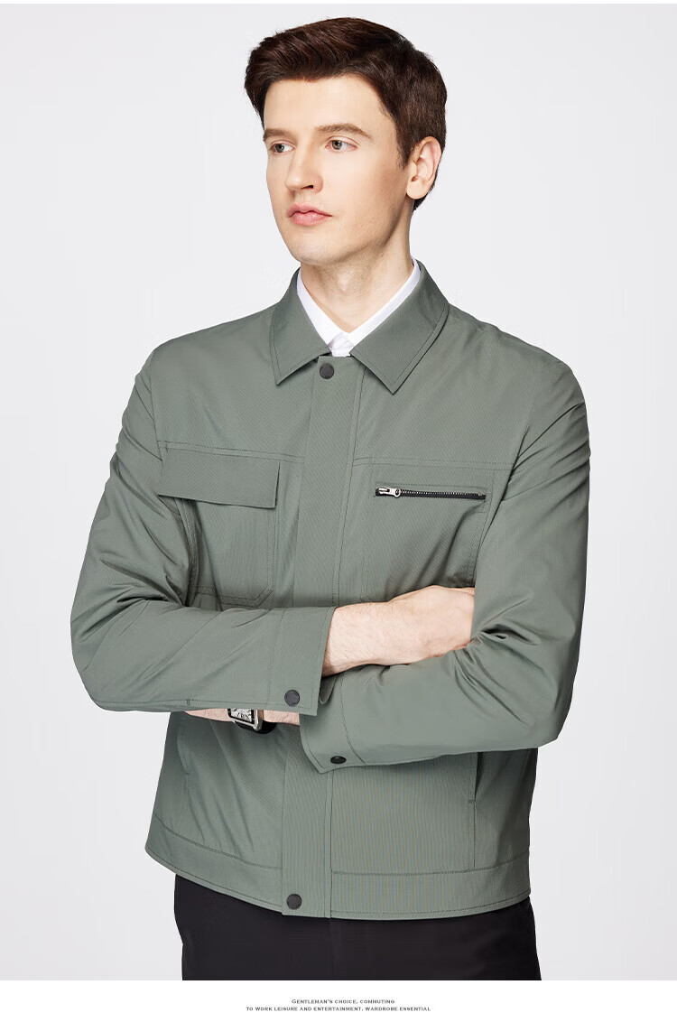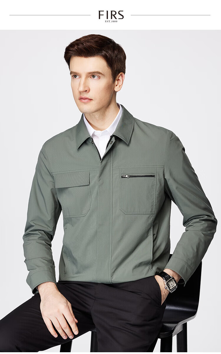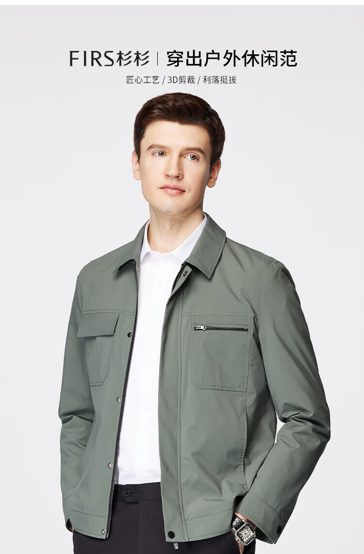 杉杉(FIRS)夹克男薄款春秋新款休闲户外翻领开衫挺括耐磨合体行政干部外套男 绿灰 M 170/88A