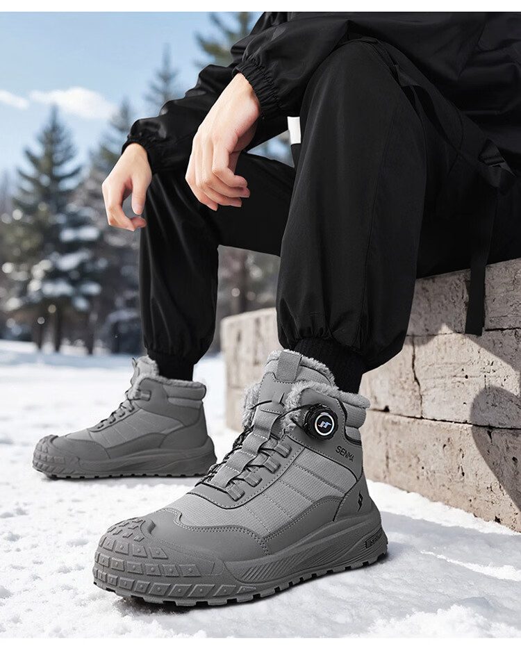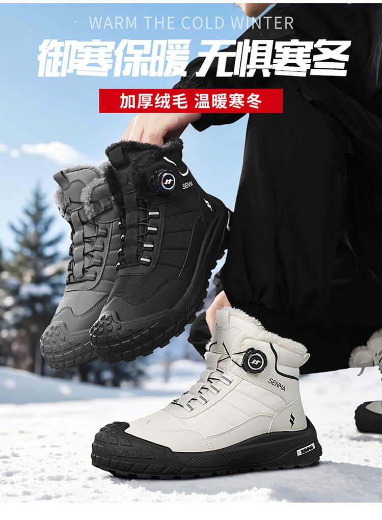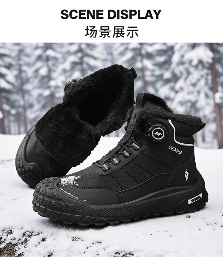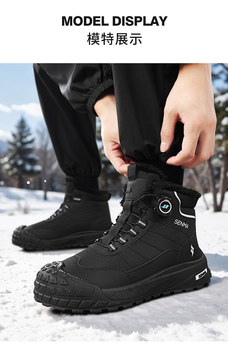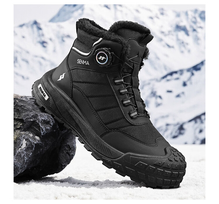 森馬雪地靴男2026新款冬季加绒保暖休闲棉鞋男士户外防滑抗寒东北棉靴 黑色【主图款】 39 标准码数/现货秒发