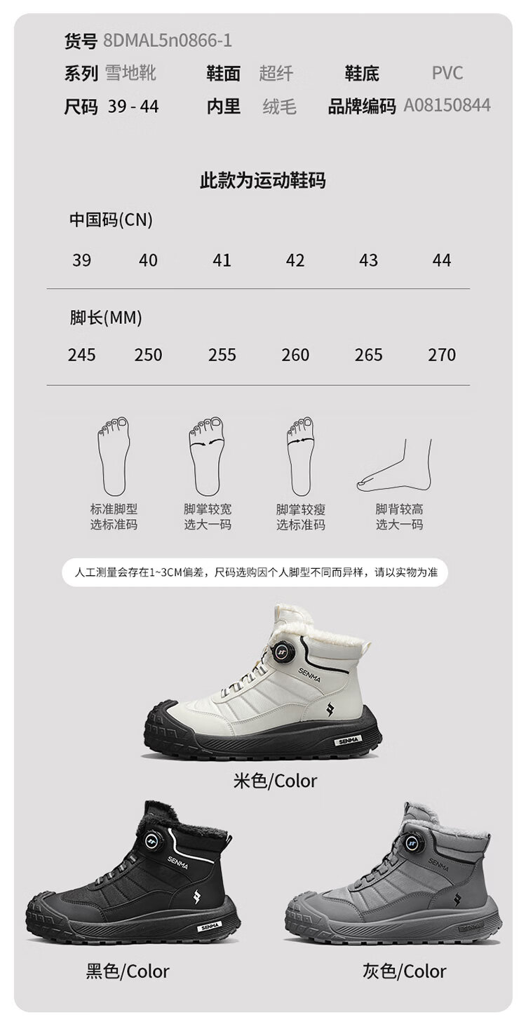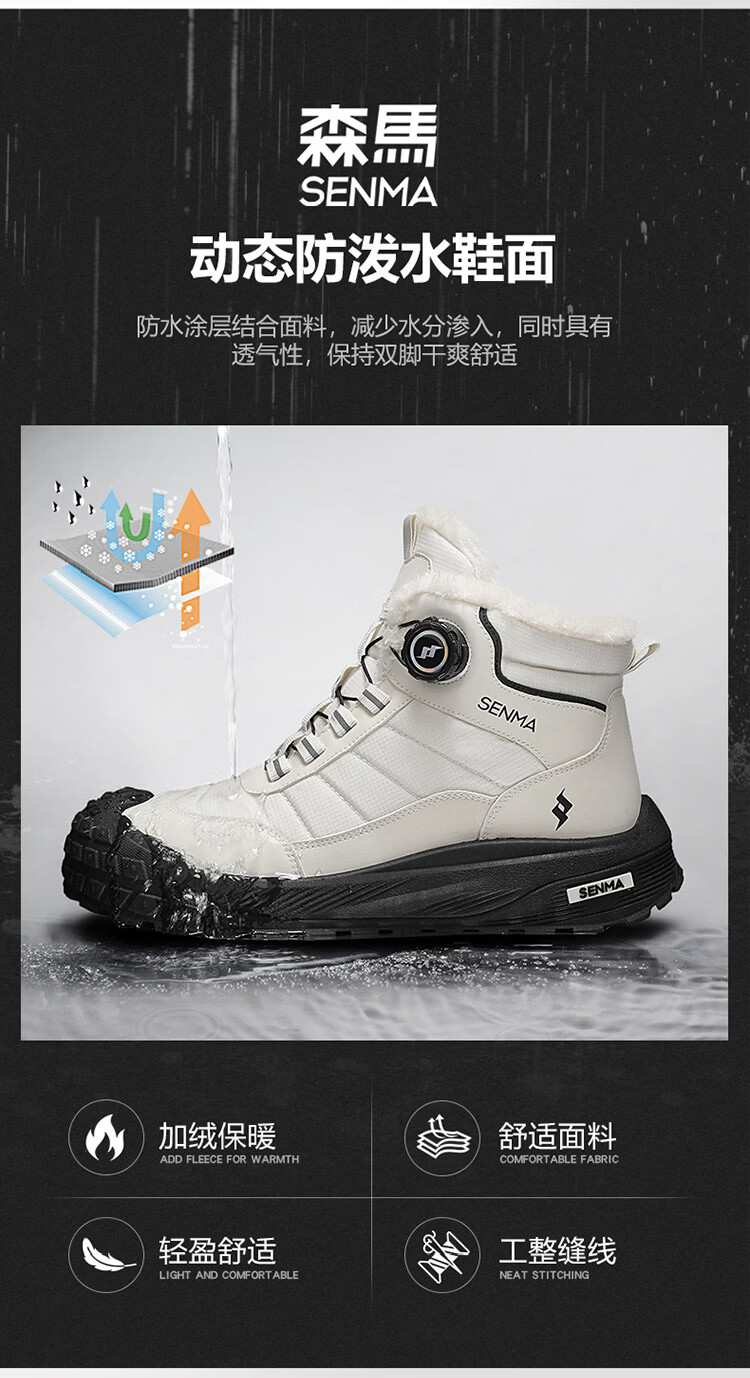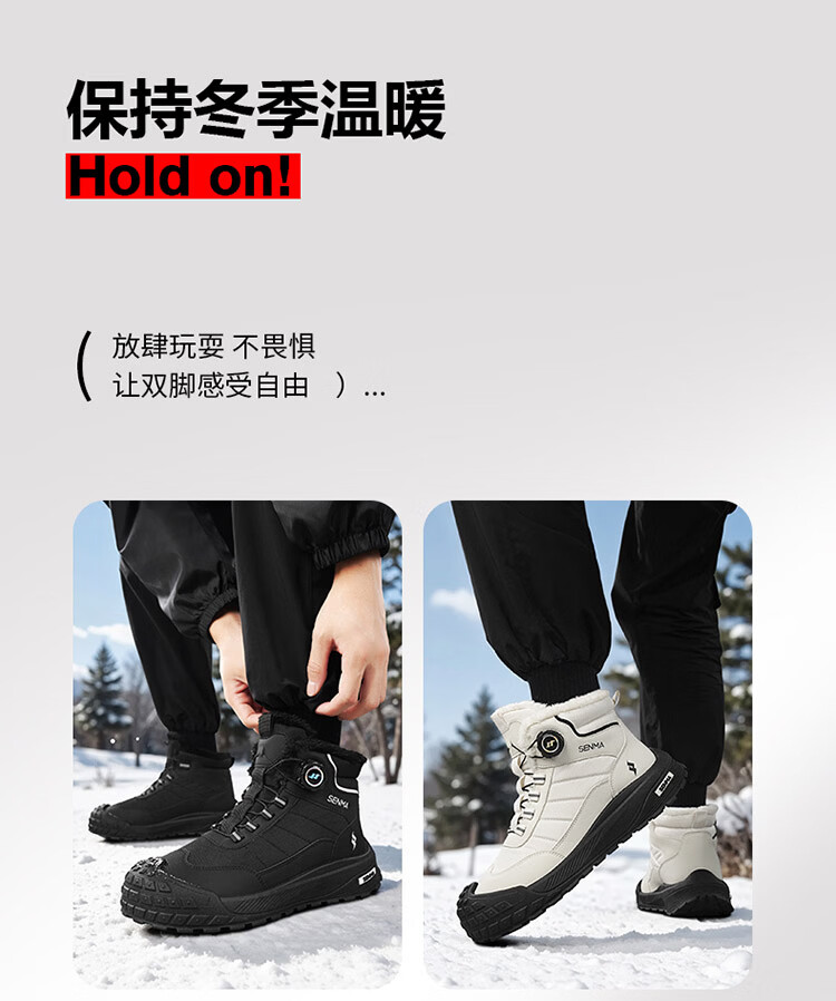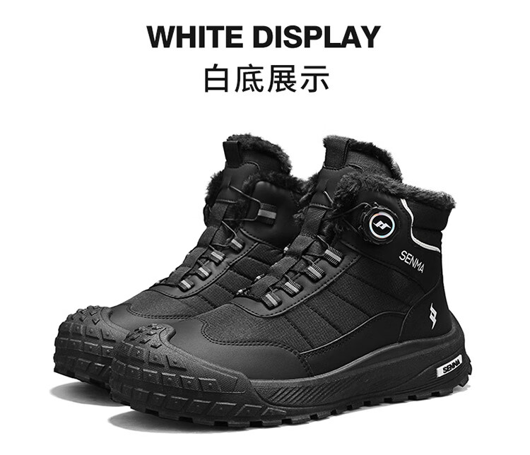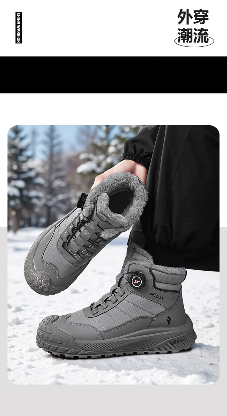 森馬雪地靴男2026新款冬季加绒保暖休闲棉鞋男士户外防滑抗寒东北棉靴 黑色【主图款】 39 标准码数/现货秒发