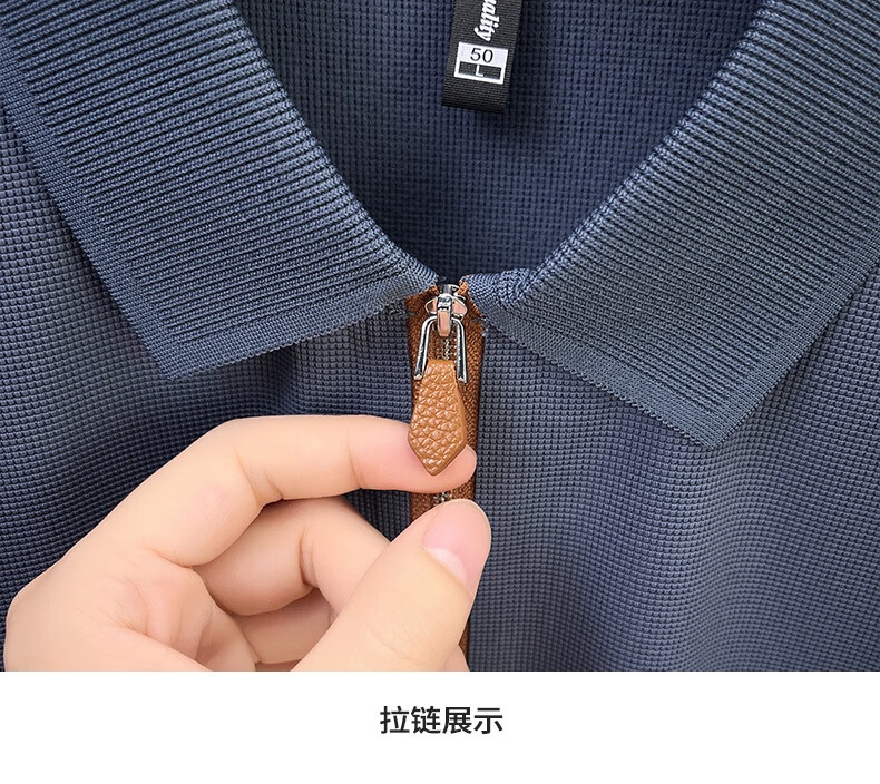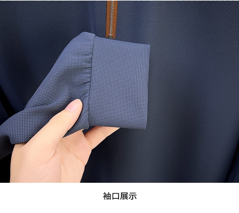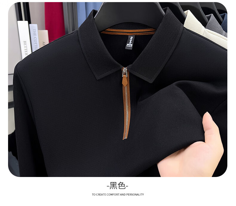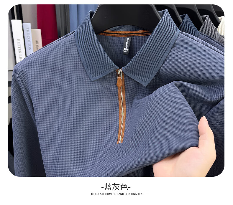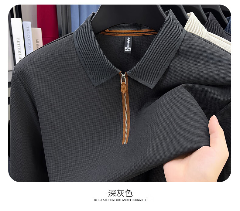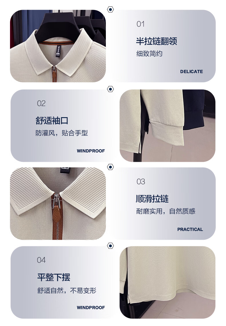 SHANSHAN杉杉长袖T恤男春季新款纯色半拉链领男士打底Polo商务休闲男上衣 米杏色 L /175