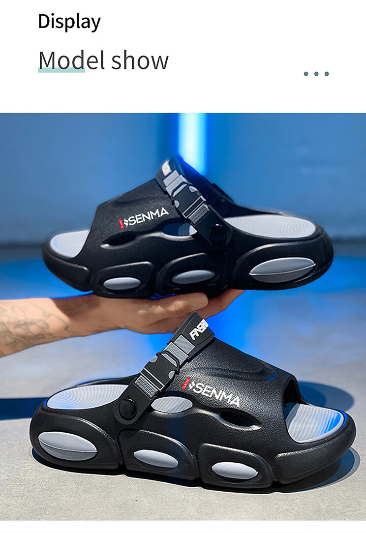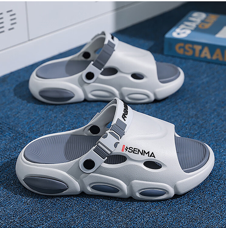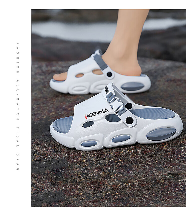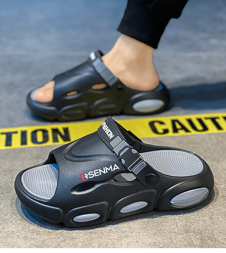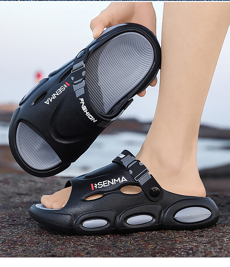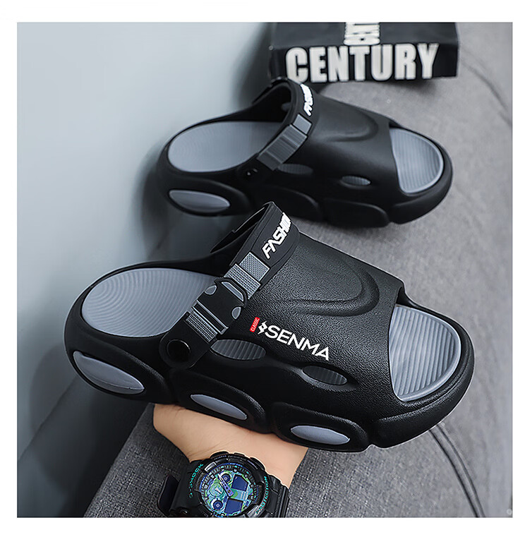 森馬椰子拖鞋2026新款夏季外穿增高厚底防滑凉拖男士开车两用沙滩凉鞋 黑灰【基础款】 38-39 现货秒发