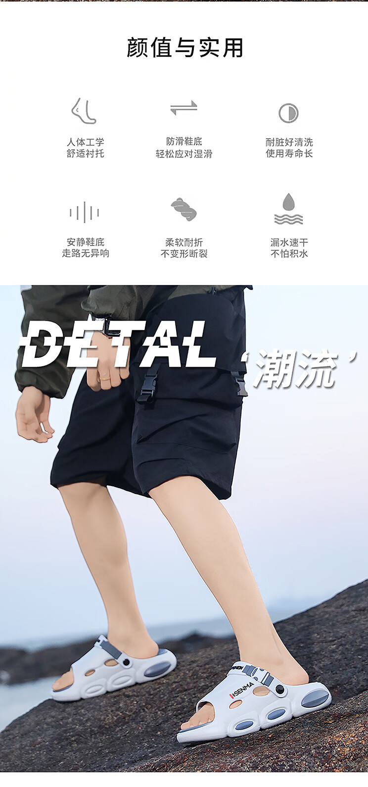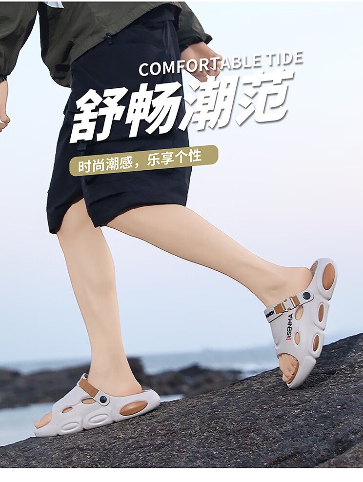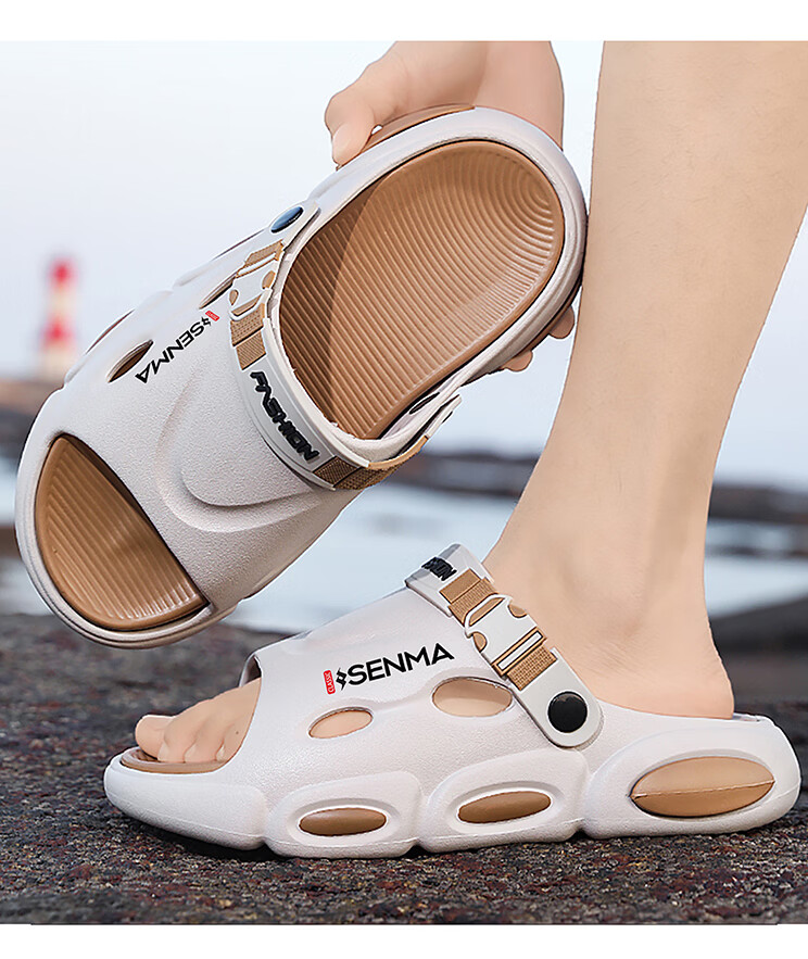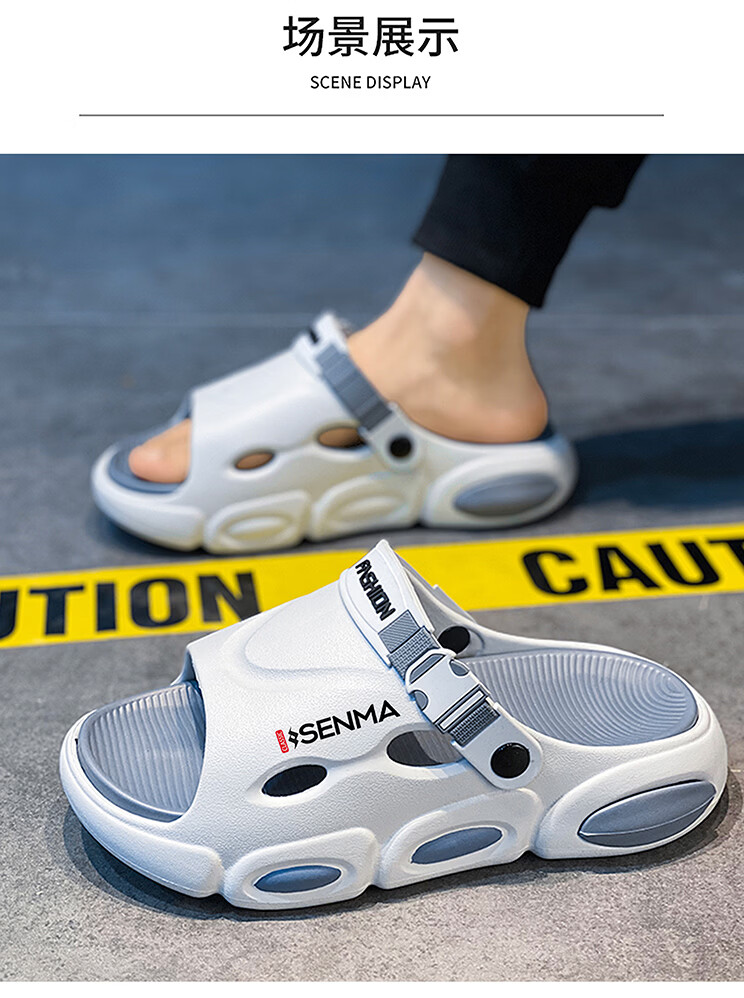 森馬椰子拖鞋2026新款夏季外穿增高厚底防滑凉拖男士开车两用沙滩凉鞋 黑灰【基础款】 38-39 现货秒发
