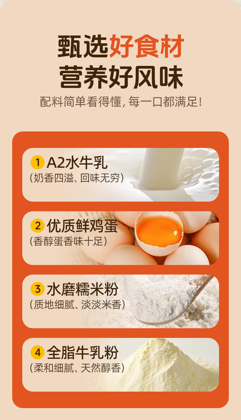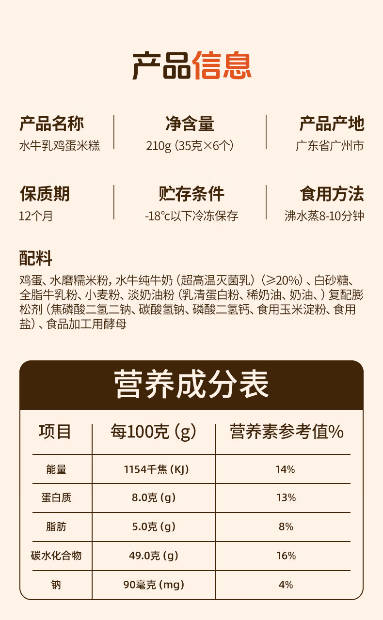 鲜京采水牛乳鸡蛋米糕210g *1袋 6个 儿童早餐 速食半成品面点