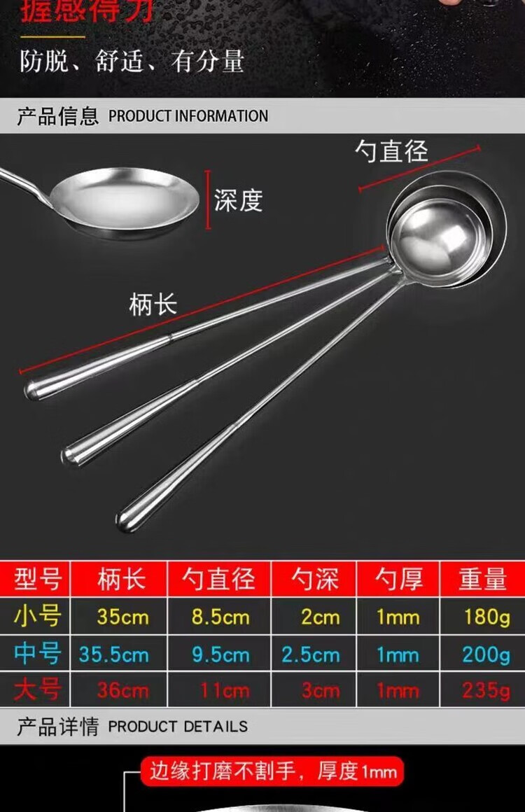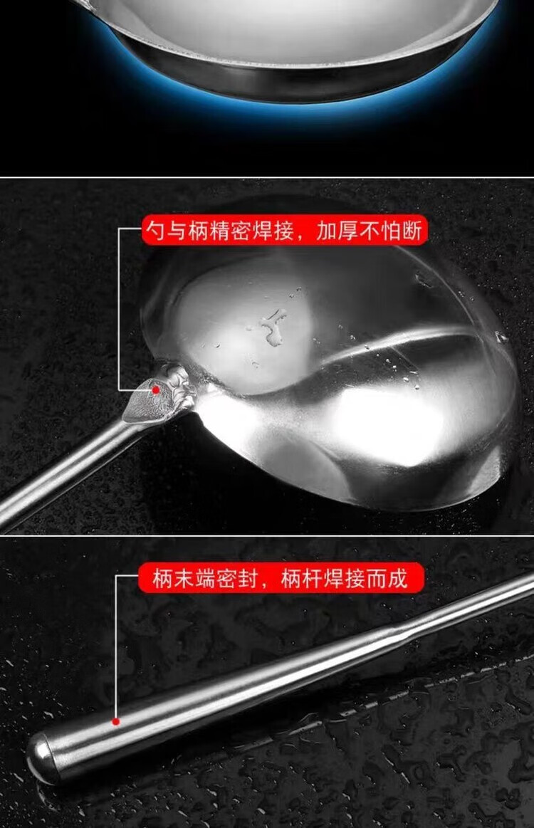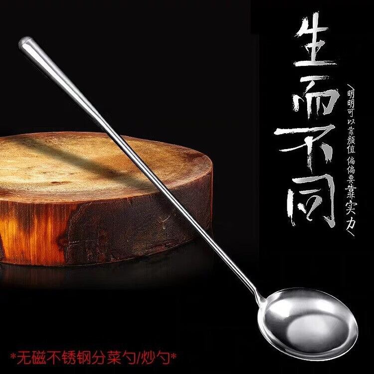 花沐禧304食品级不锈钢炒勺厨师专用炒勺家用厨房炒菜勺食堂铲勺分菜勺 实心炒勺-中号(家用首选)