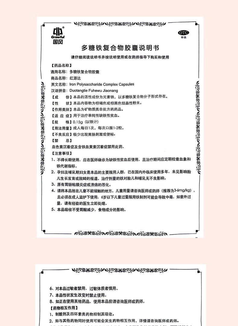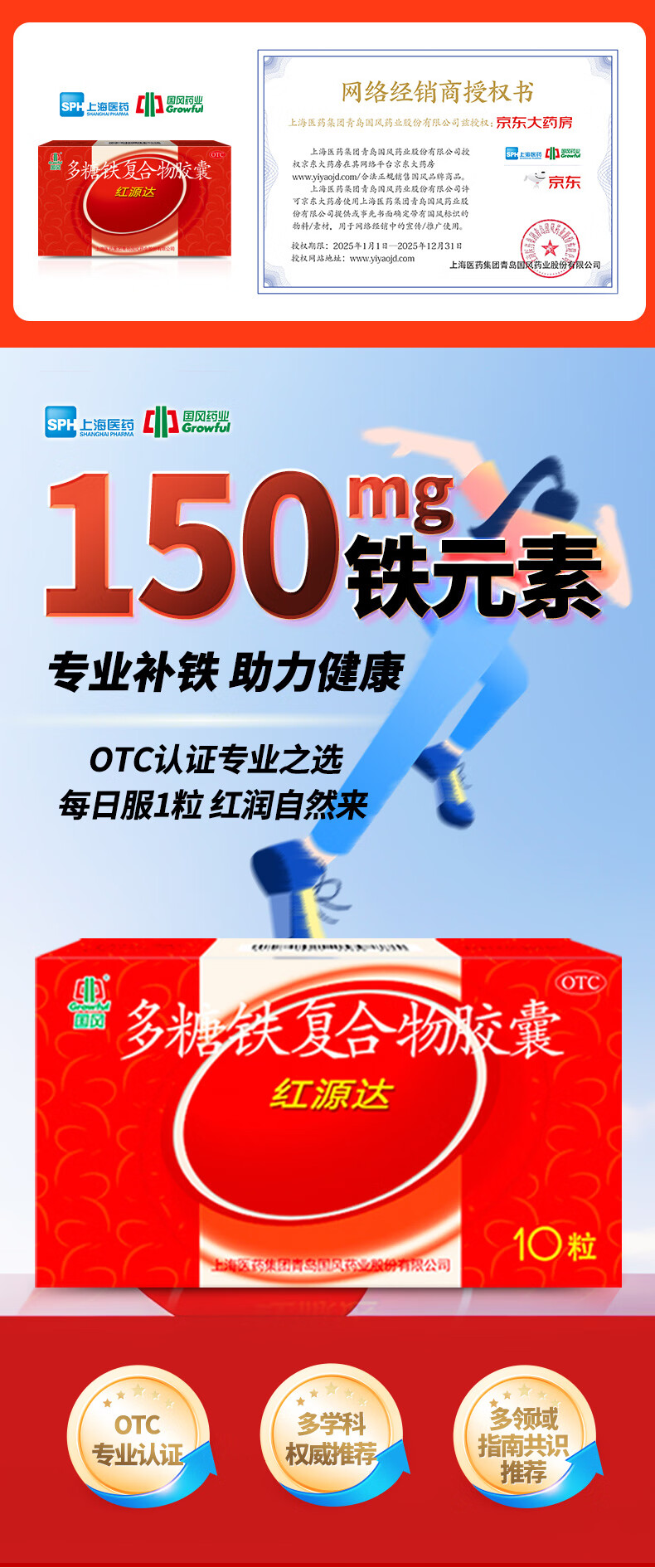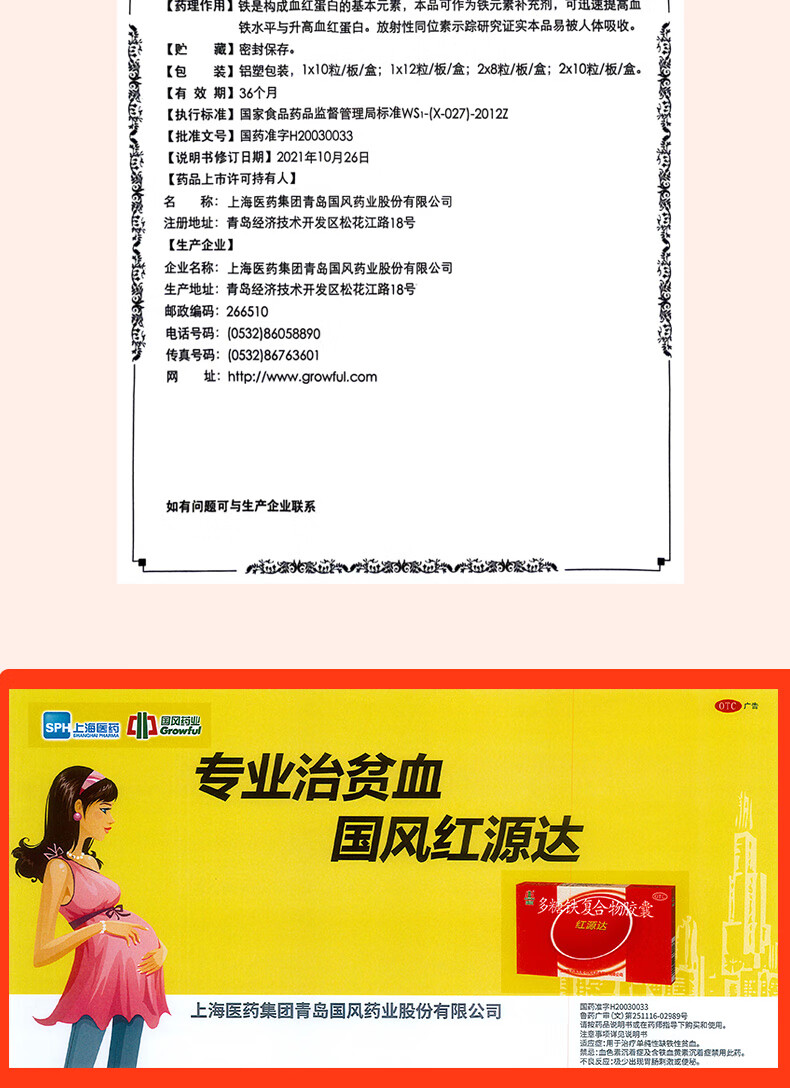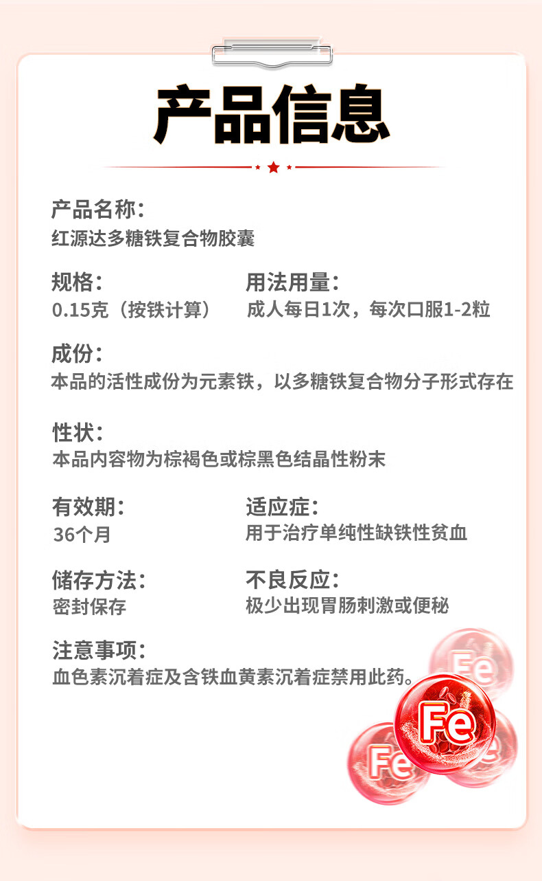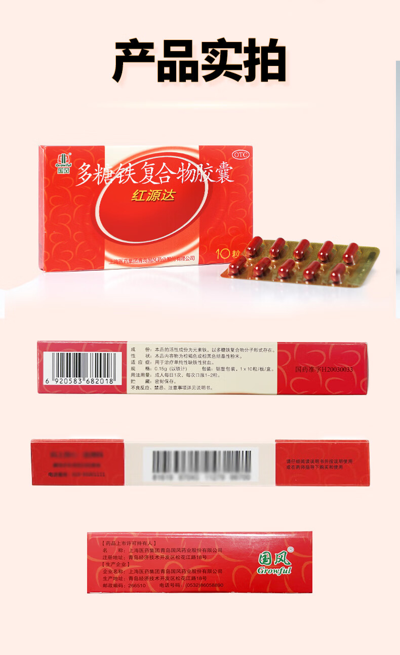 国风 红源达 多糖铁复合物胶囊10粒 女性贫血补血药经期补铁补铁剂铁片缺铁性贫血