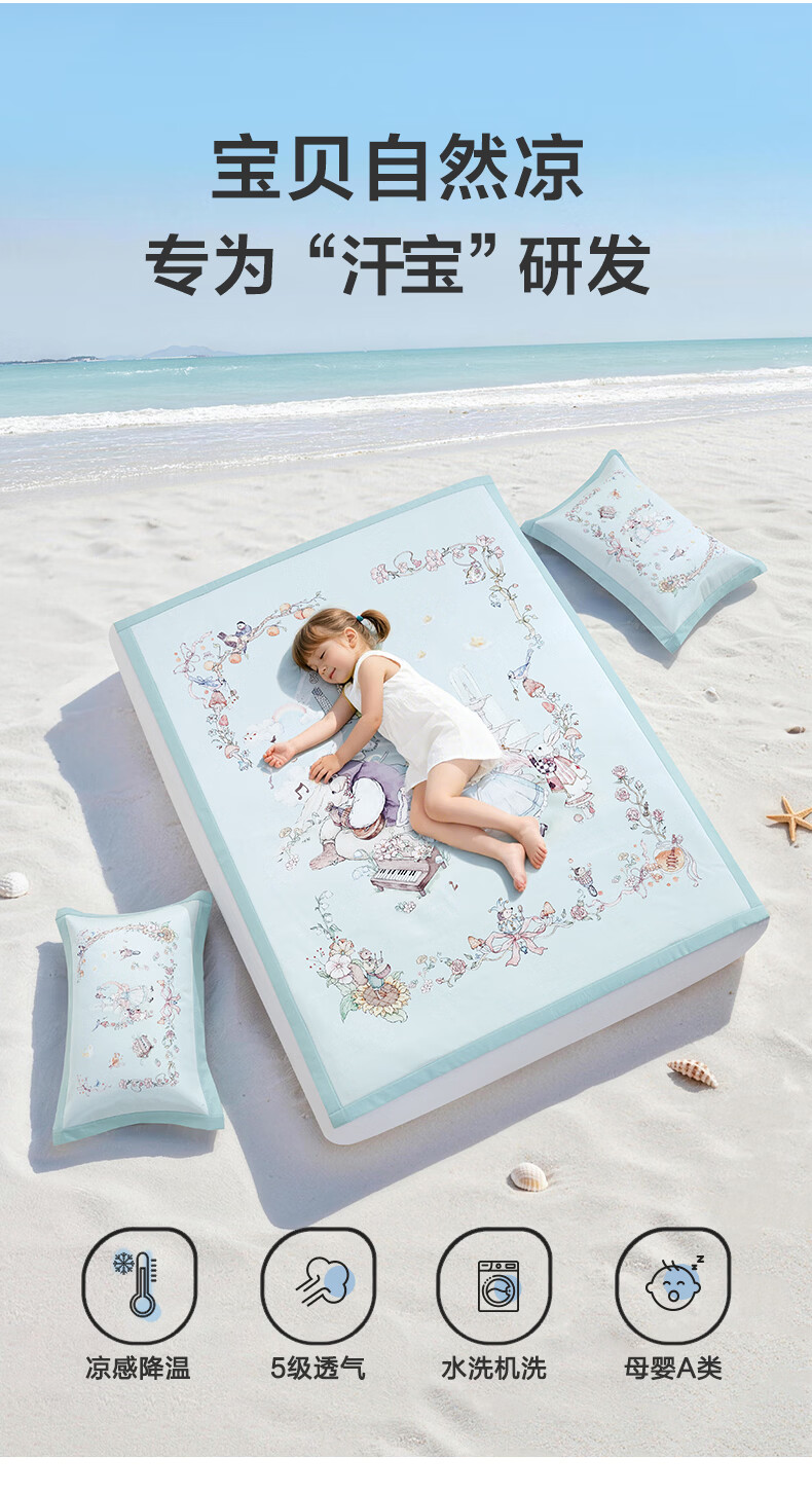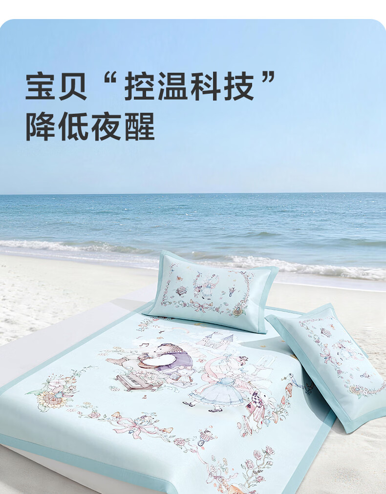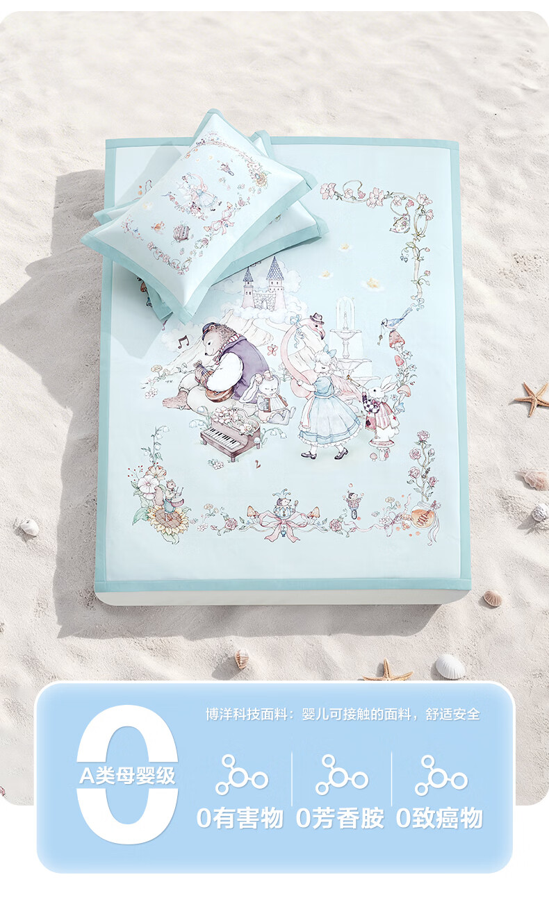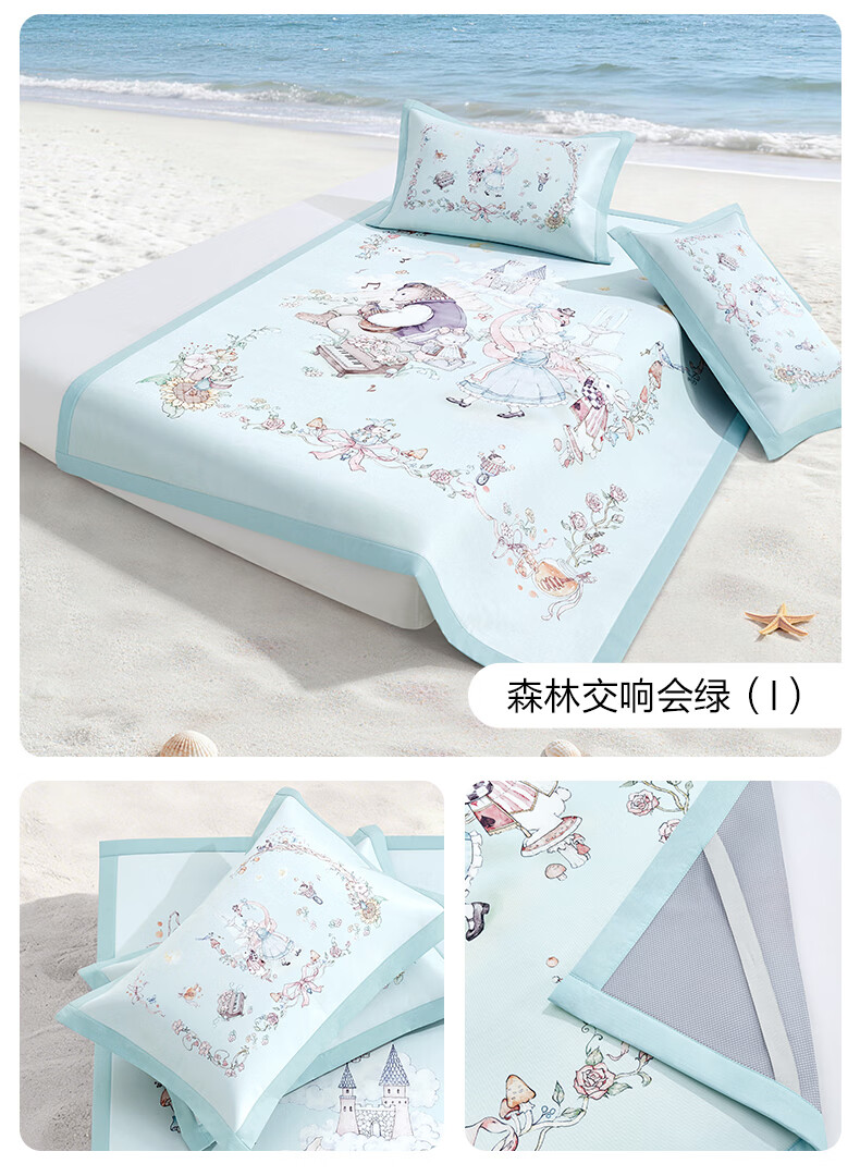 博洋宝贝(Beyond Kids)儿童凉席1000D凉席三件套A类夏天冰垫子学生席子二件套凉席套件 1000D凉席套件一森林交响会绿(I) 120*200cm(二件套)