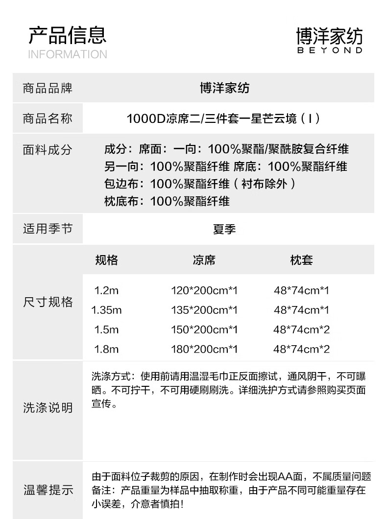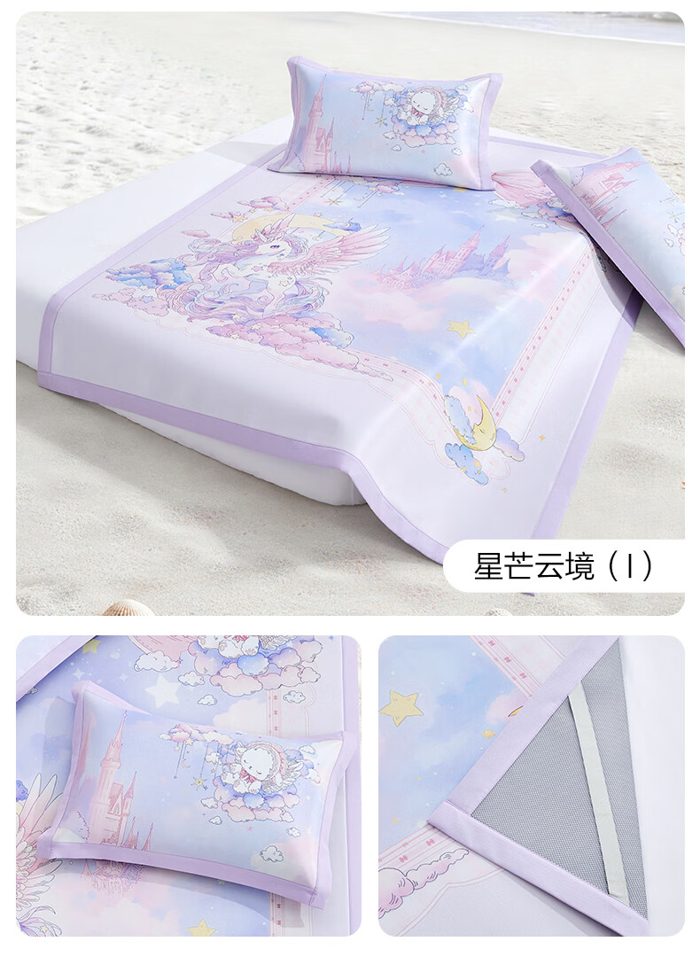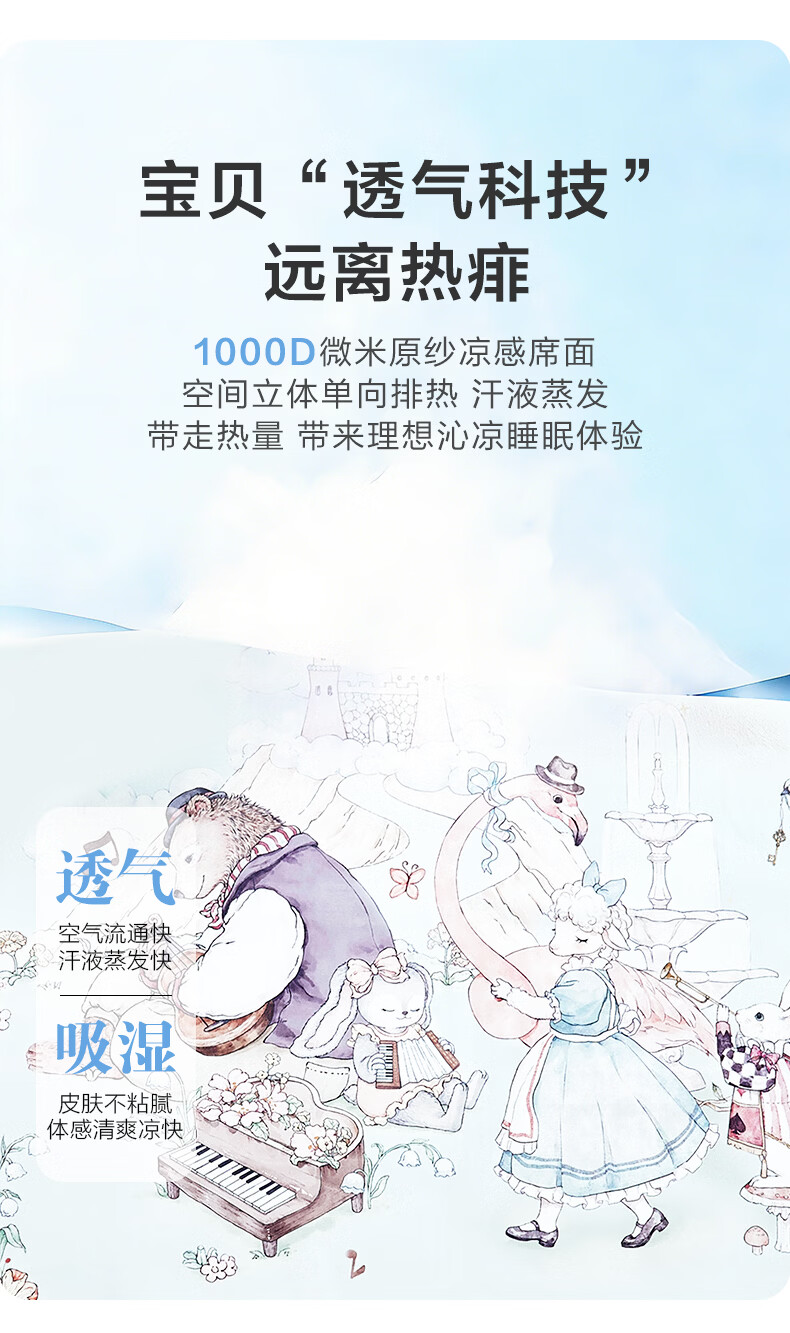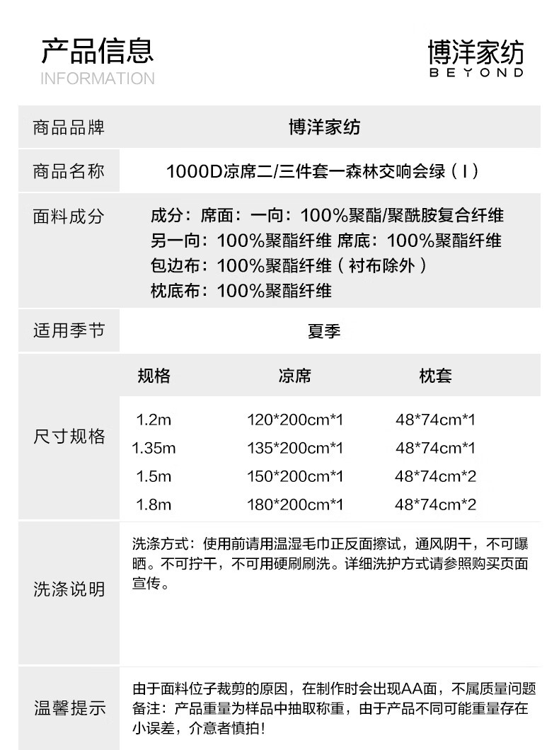 博洋宝贝(Beyond Kids)儿童凉席1000D凉席三件套A类夏天冰垫子学生席子二件套凉席套件 1000D凉席套件一森林交响会绿(I) 120*200cm(二件套)