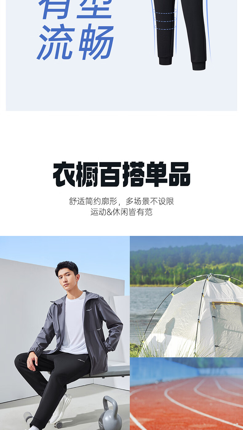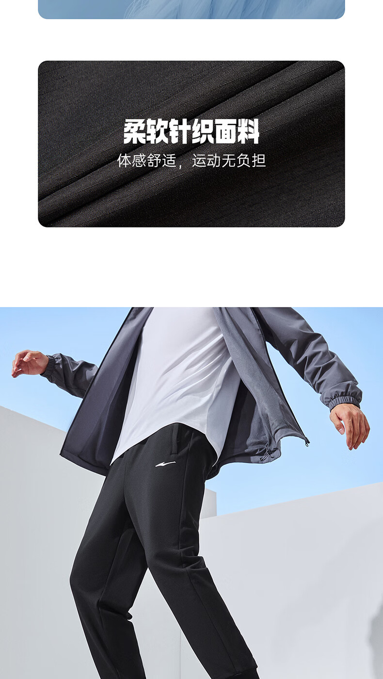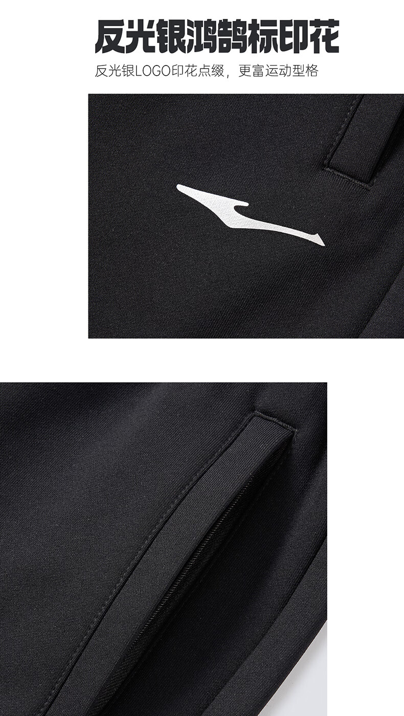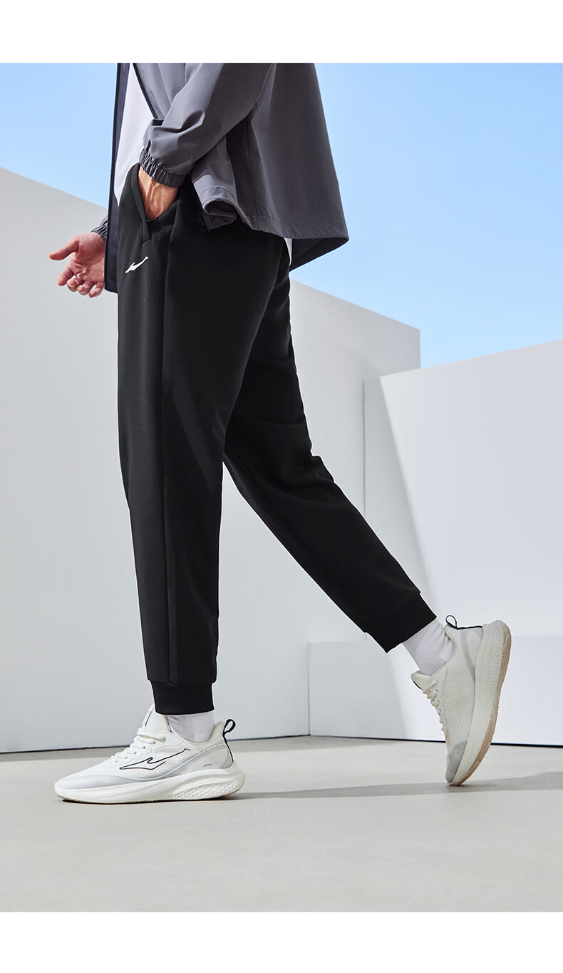 鸿星尔克运动裤男春夏季新款户外休闲梭织束口长裤九分裤男士裤子卫裤男裤 【梭织轻薄束脚款】正黑-2012 XL