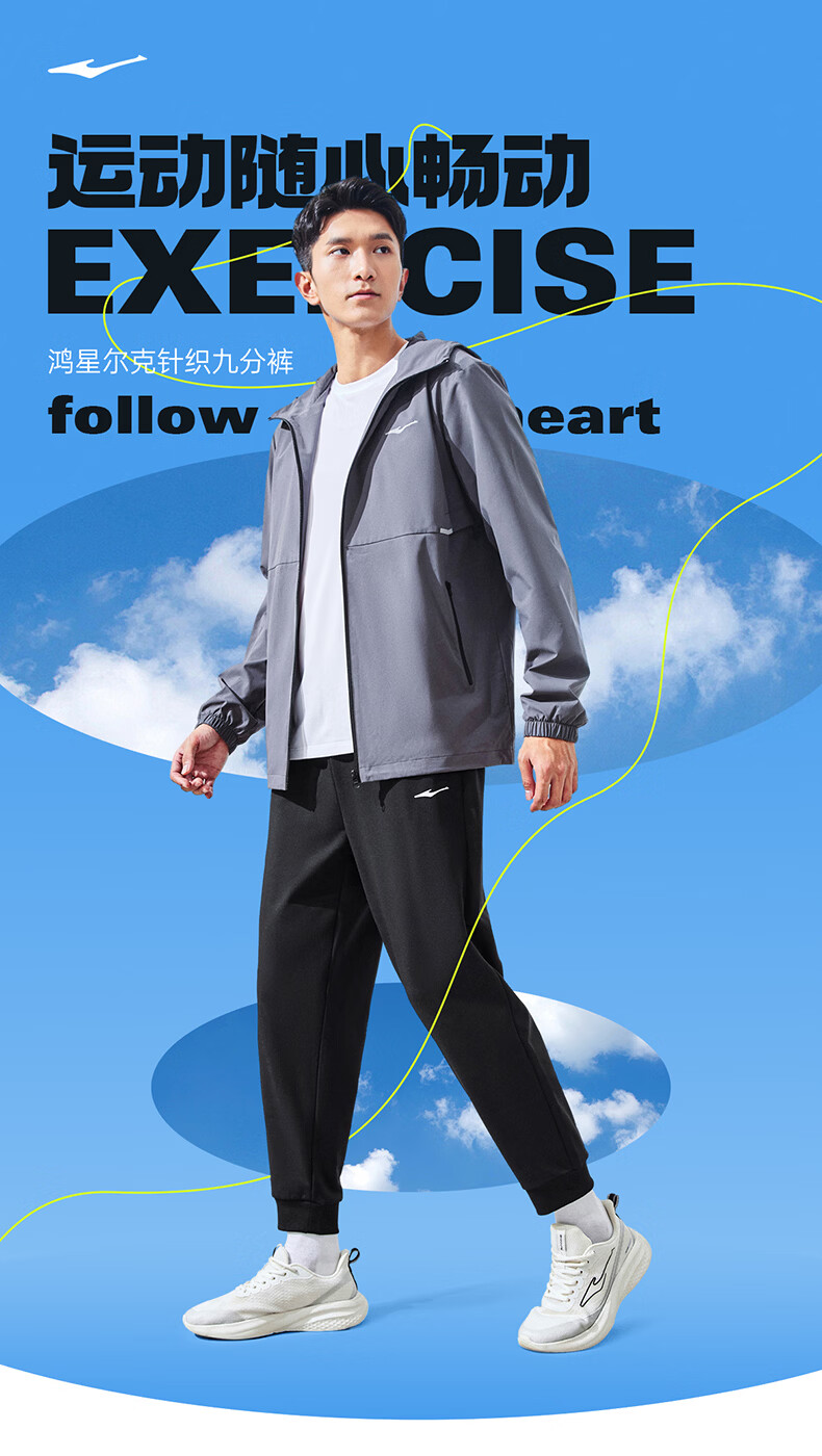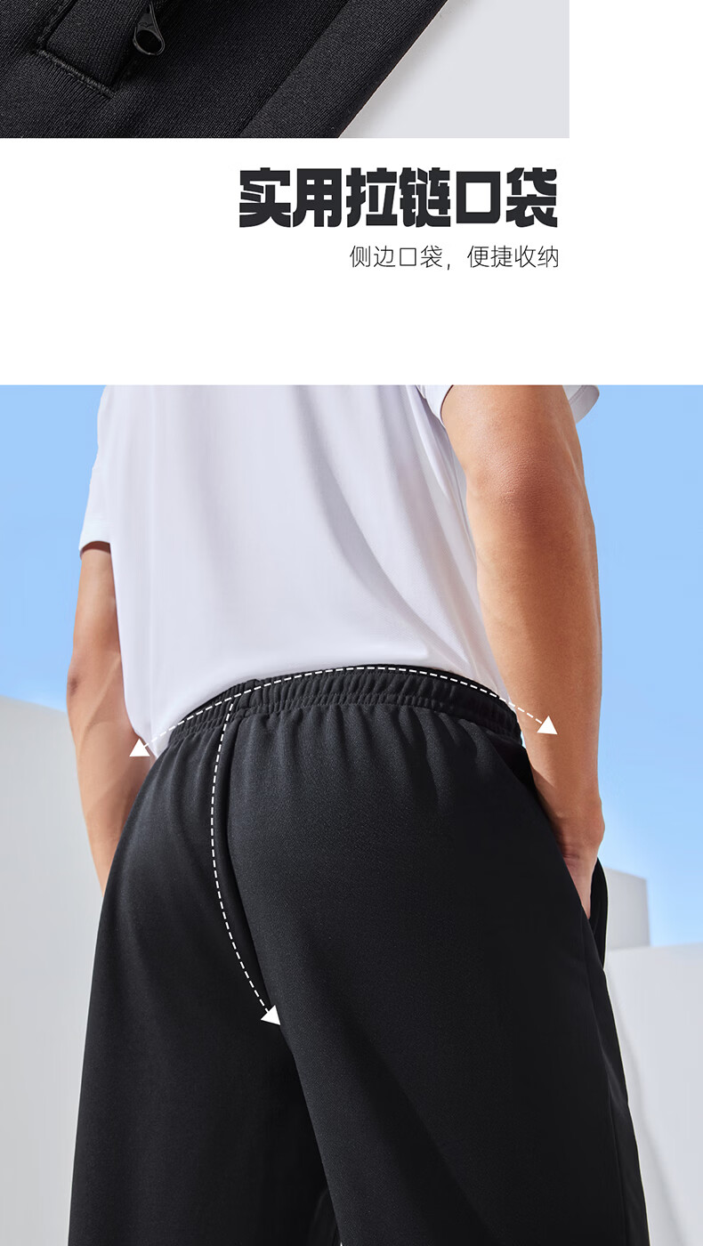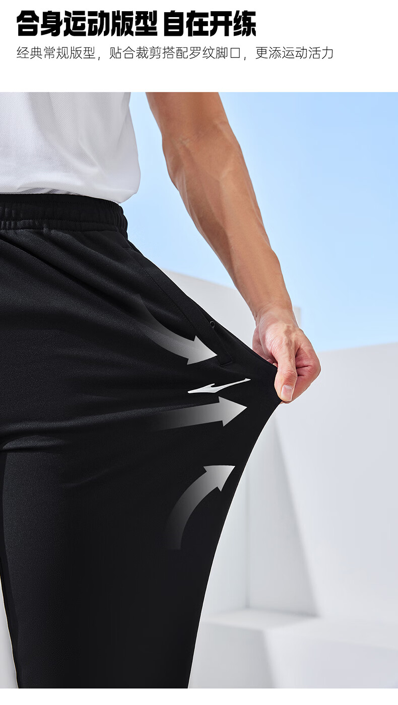 鸿星尔克运动裤男春夏季新款户外休闲梭织束口长裤九分裤男士裤子卫裤男裤 【梭织轻薄束脚款】正黑-2012 XL