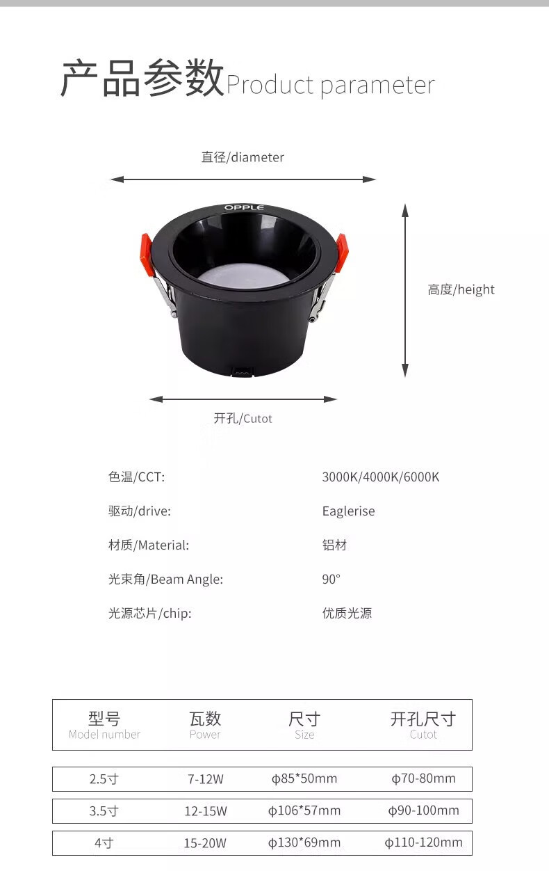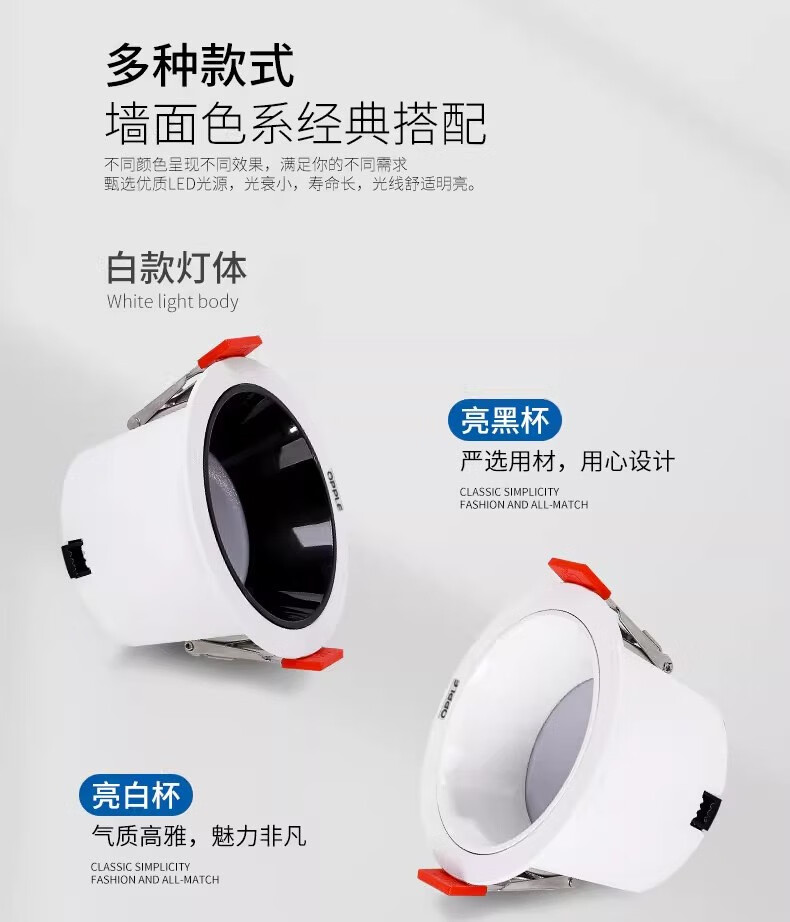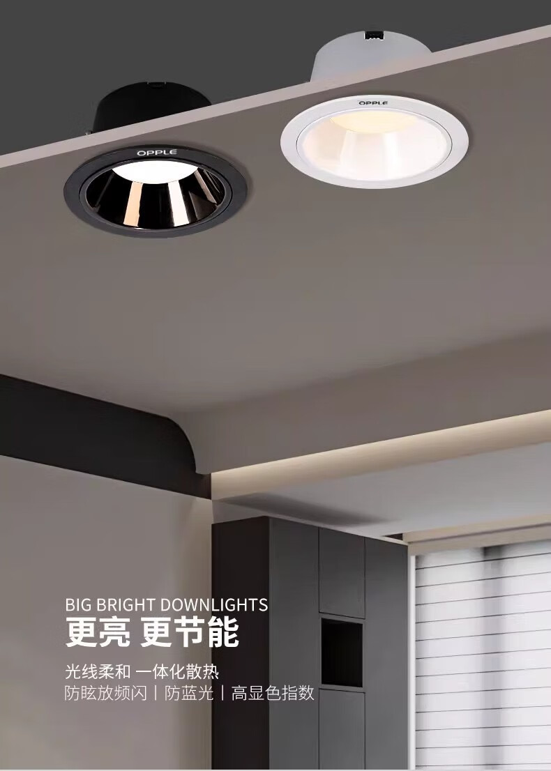 欧普照明LED防眩深杯筒灯窄边框无主灯嵌入式天花灯70-80mm 深杯筒灯全白杯 暖黄光 7-8cm 7W