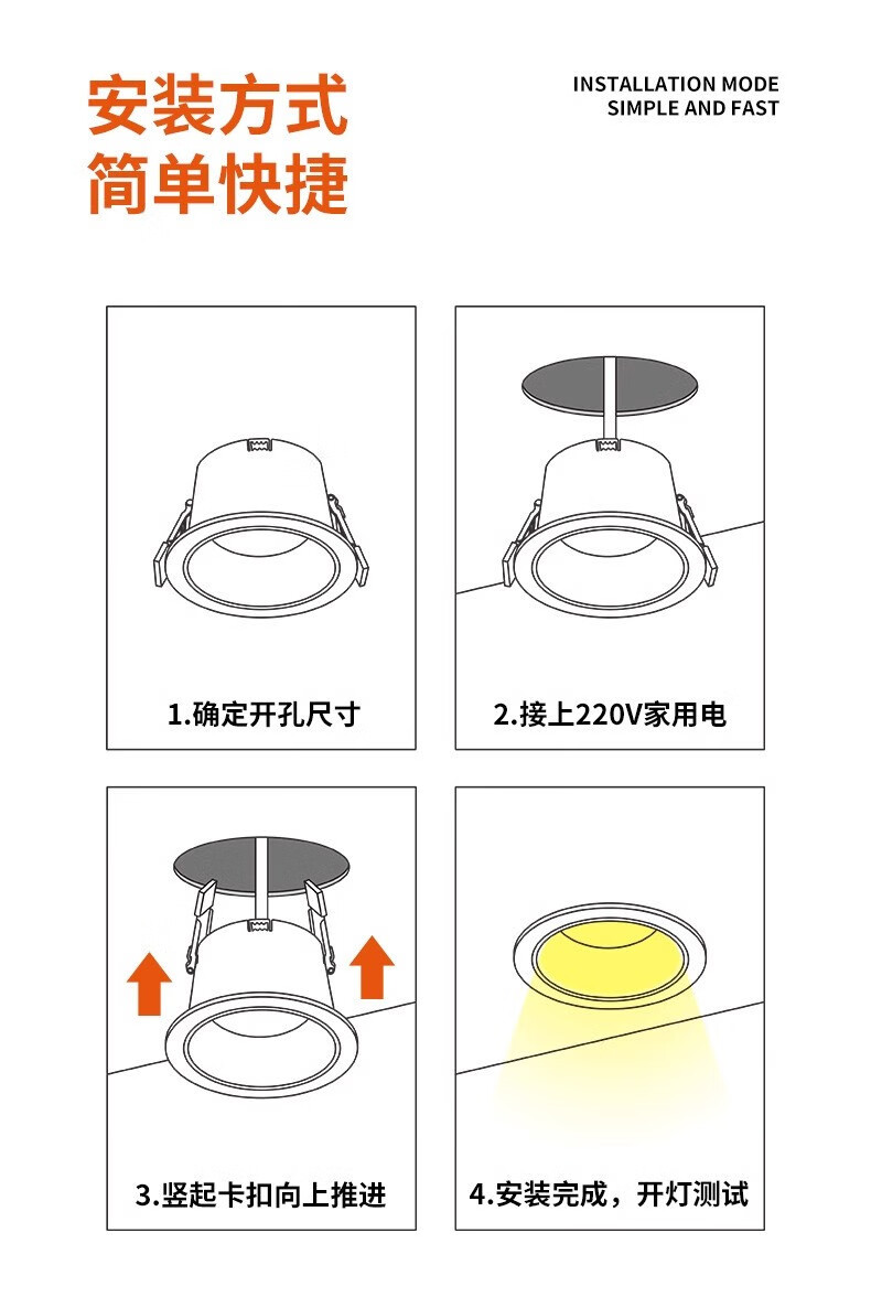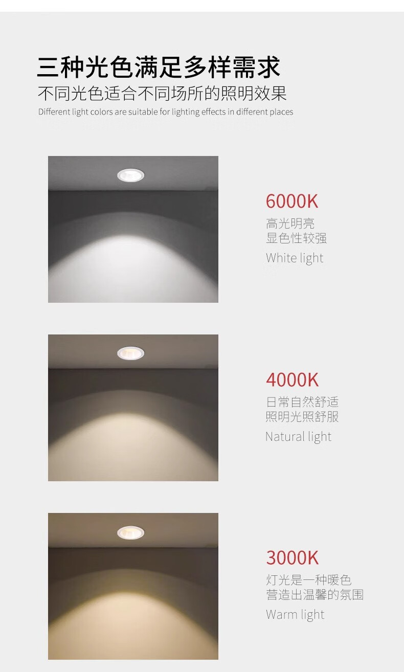 易来全光谱筒射灯T4防眩高显指美国普瑞芯片嵌入式过道走廊照明灯 T4 3.0-全光谱筒灯【12W-50°】