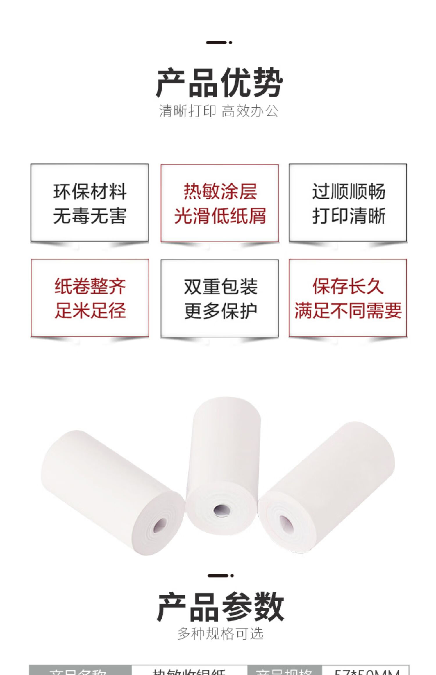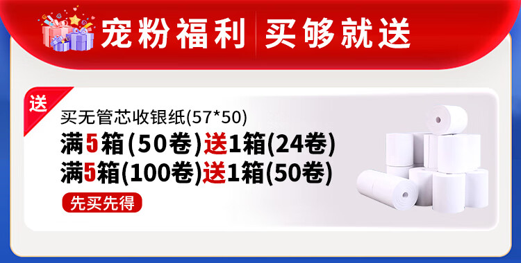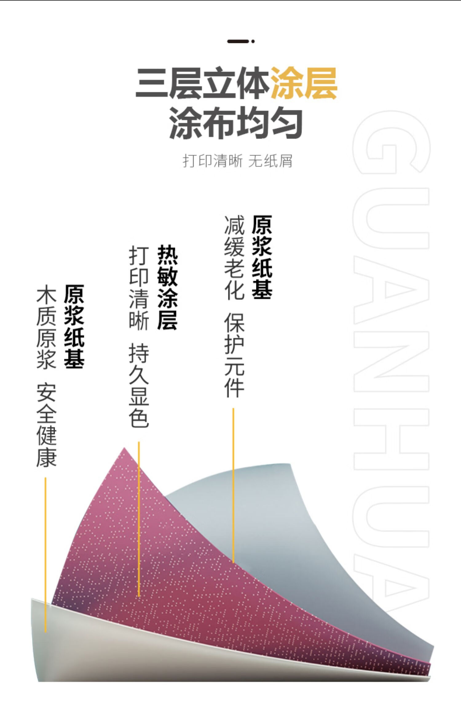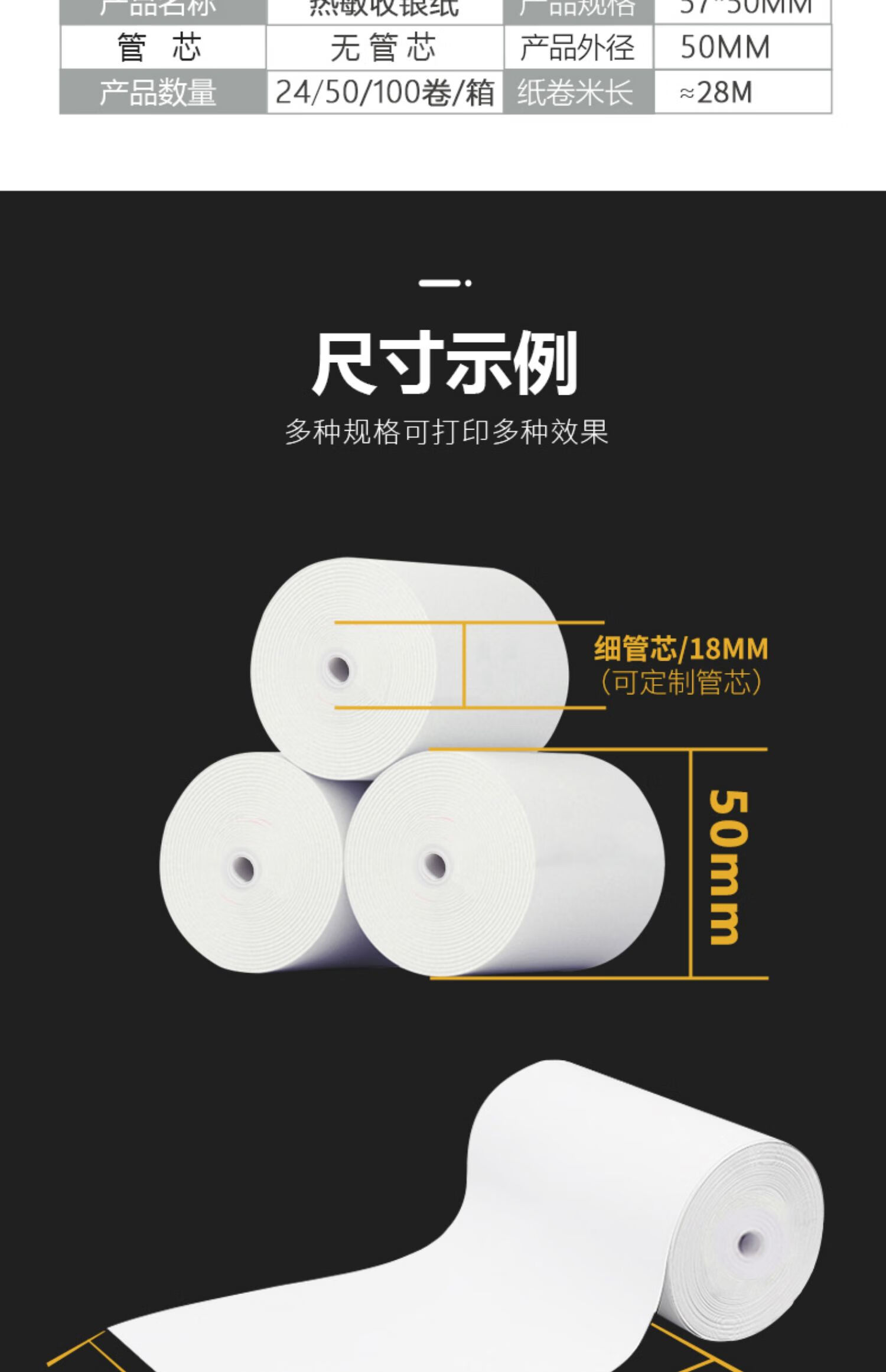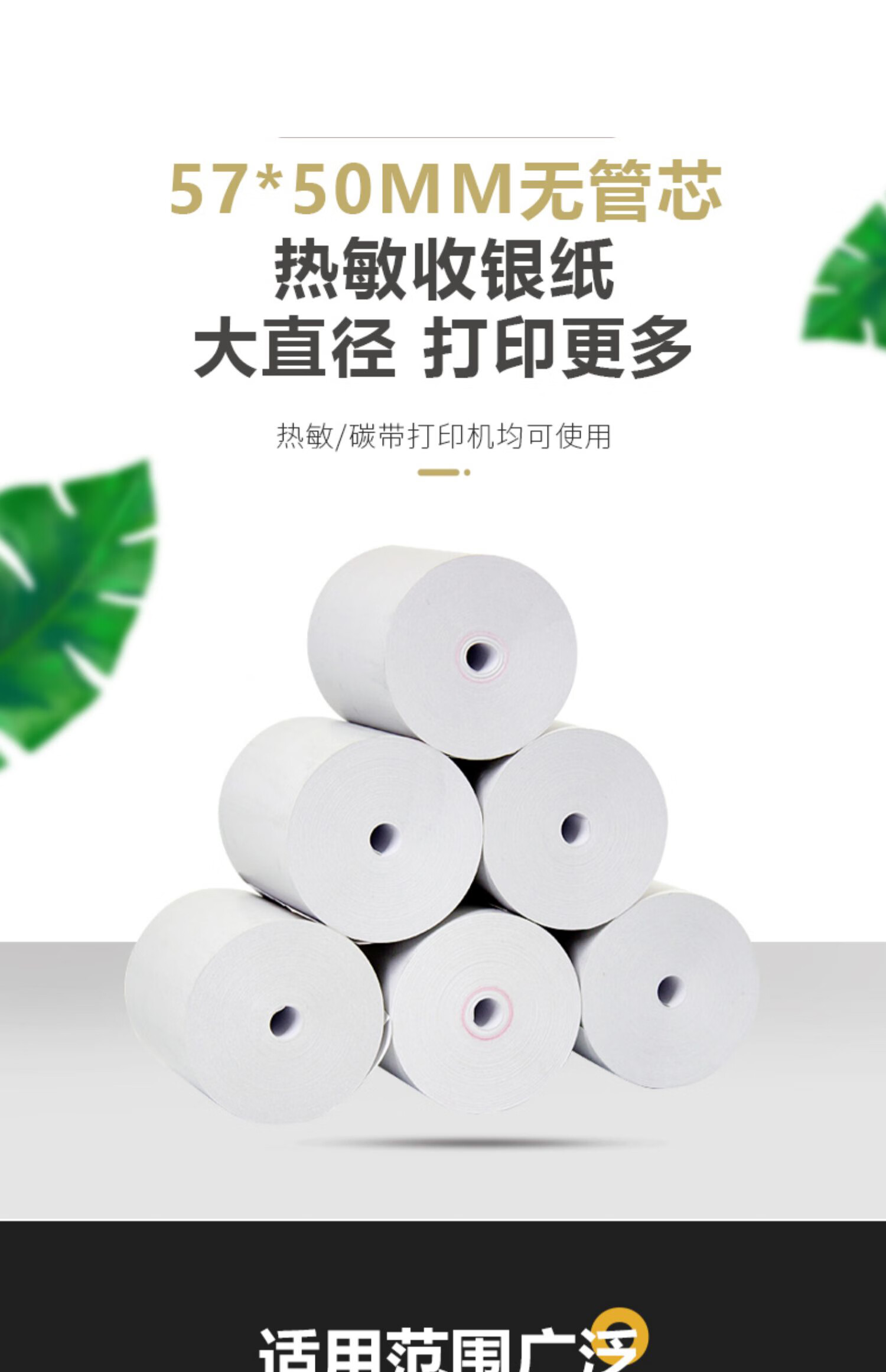 冠华 无管芯收银纸57*50热敏纸小票打印纸排队机纸外卖小票纸热敏收银小票纸 57*50 无管芯 100卷/箱
