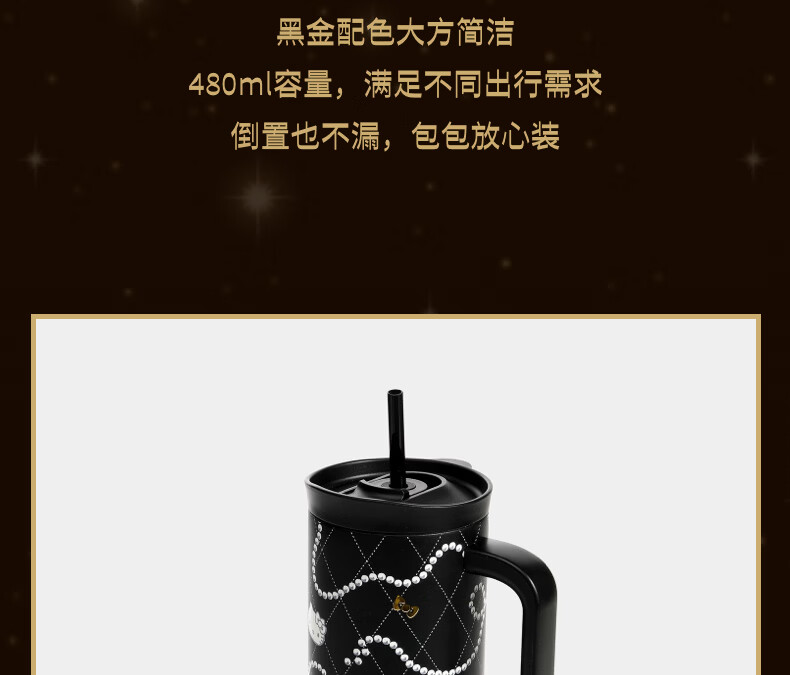 膳魔师(THERMOS)保温杯男生316不锈钢便携车载直饮弹盖水杯女学生上学专用茶杯子 曜石黑500ml【316内胆+滤网+提环】
