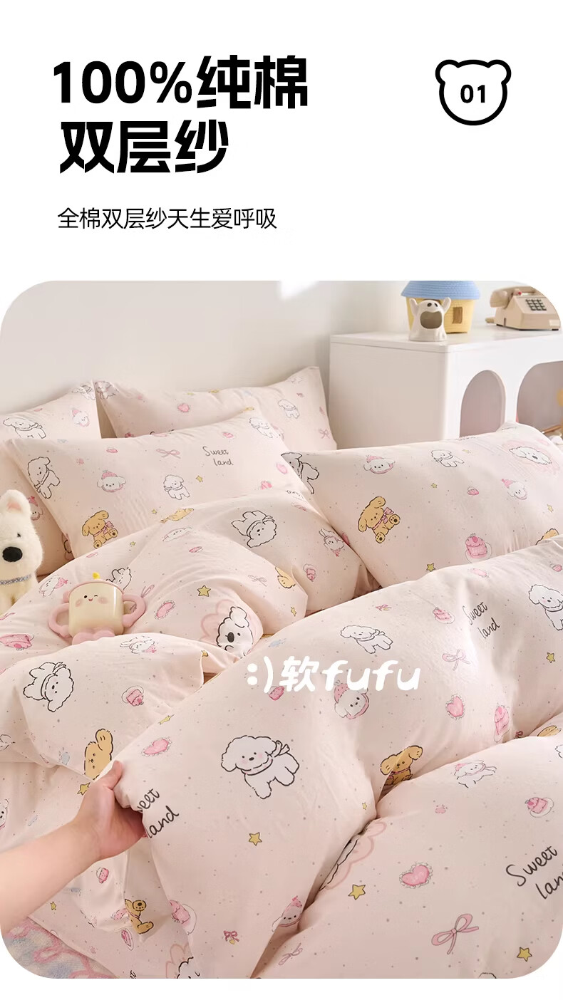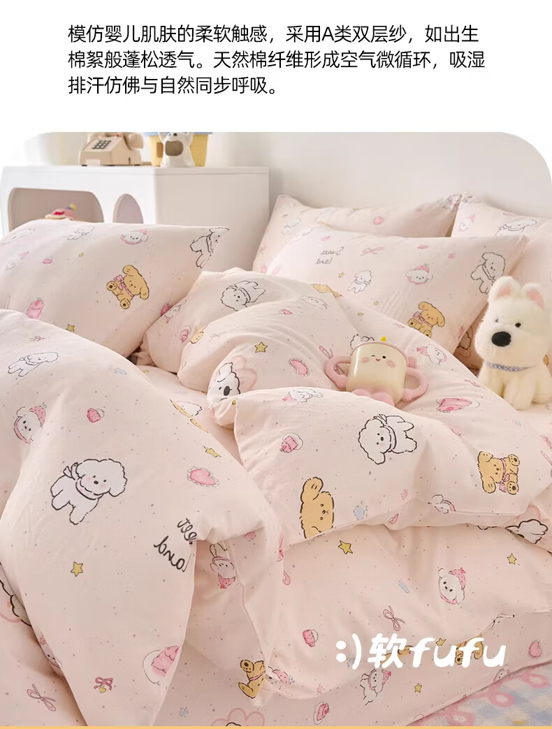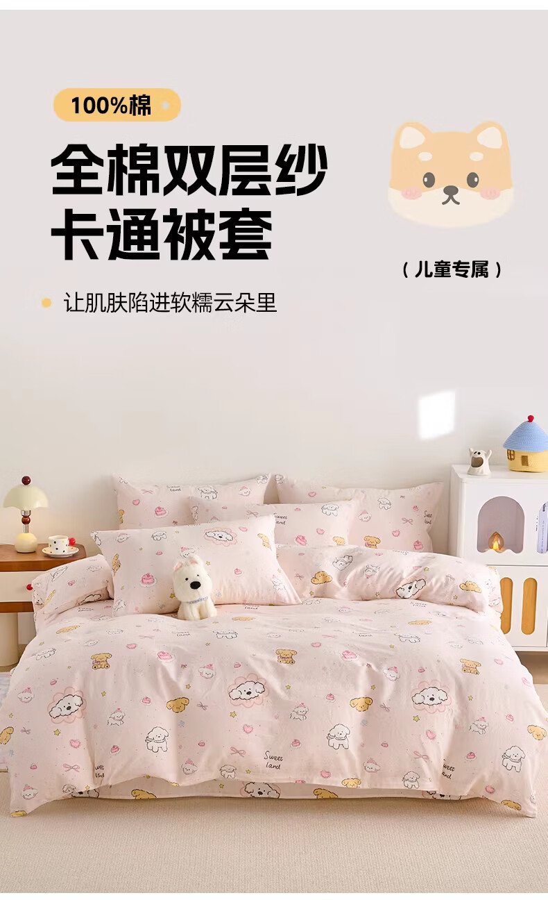 云瑾A类双层纱纯棉儿童被套单件全棉被罩学生男女被罩 乖乖狗(A类亲肤,柔软透气) 120x150cm【儿童小被套】
