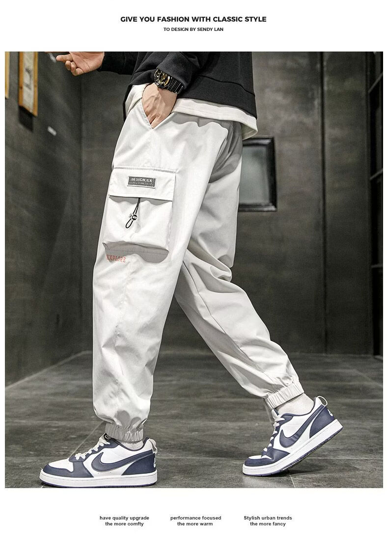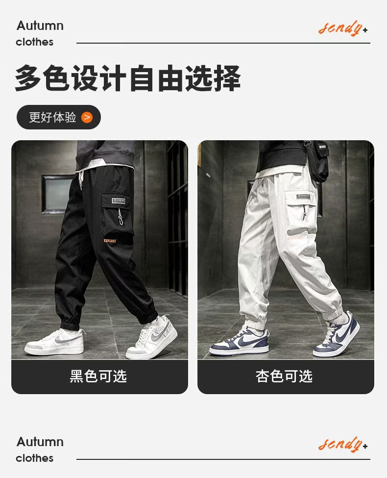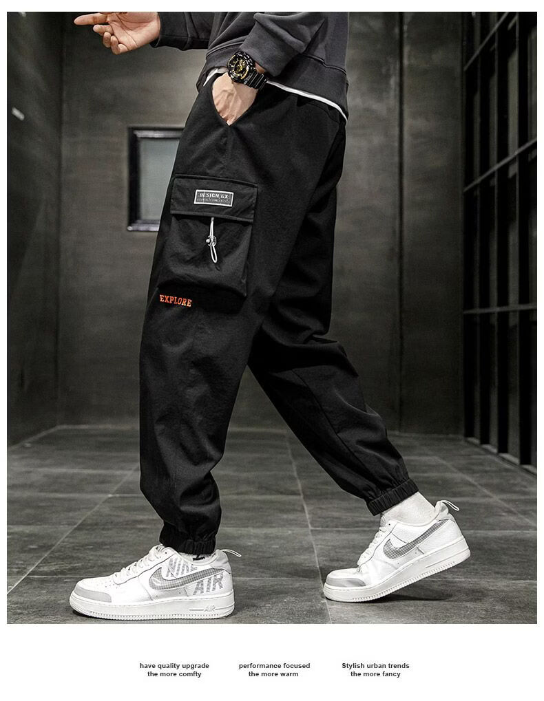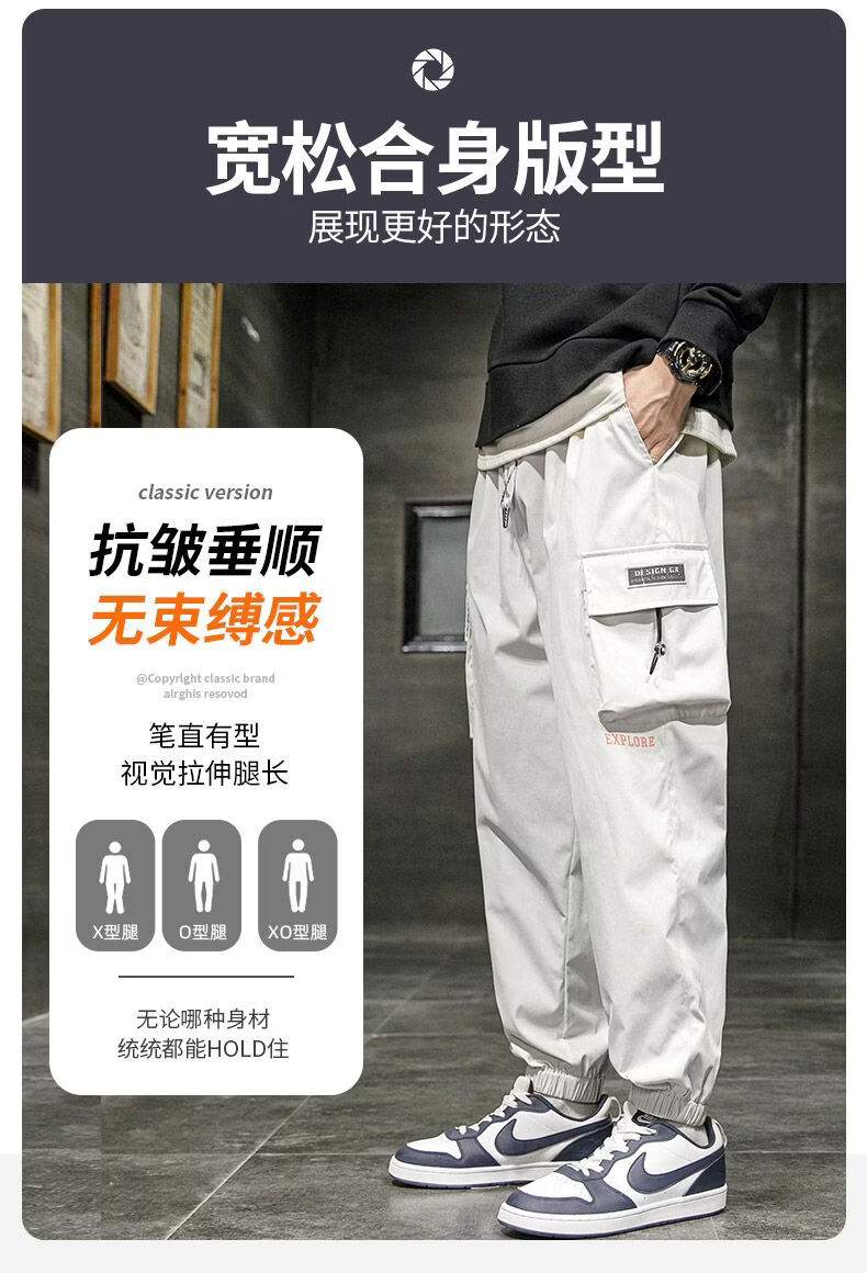 啄木鸟加肥加大工装裤男生夏季潮宽松束脚大码冲锋裤休闲运动长裤 黑色 M