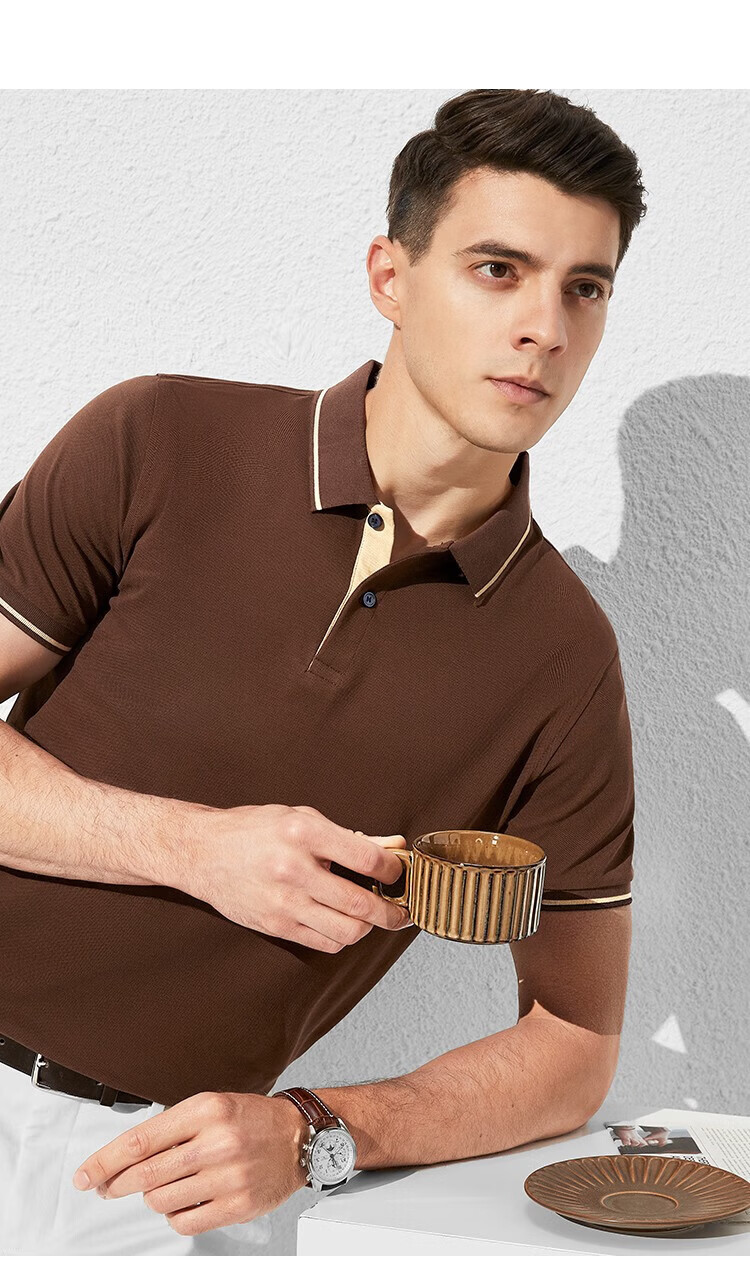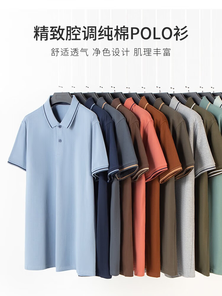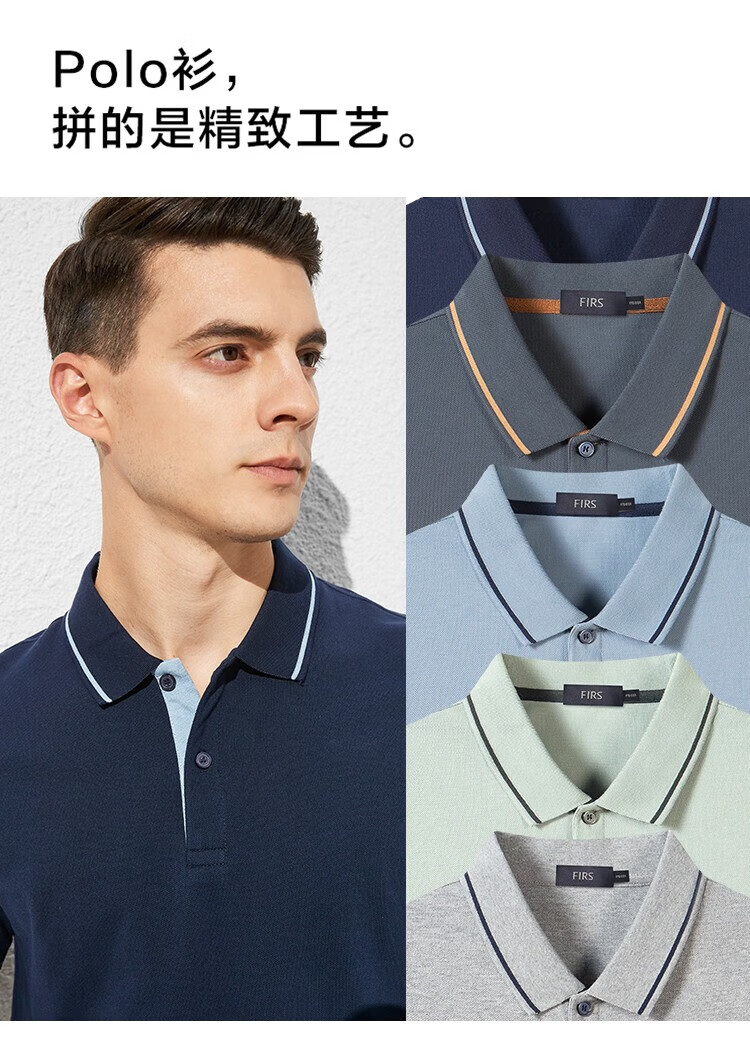 杉杉(FIRS)短袖男夏季新款纯棉透气商务休闲polo中青年翻领工作服半袖T恤 紫蓝 M (170/88A)
