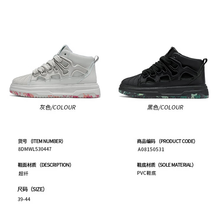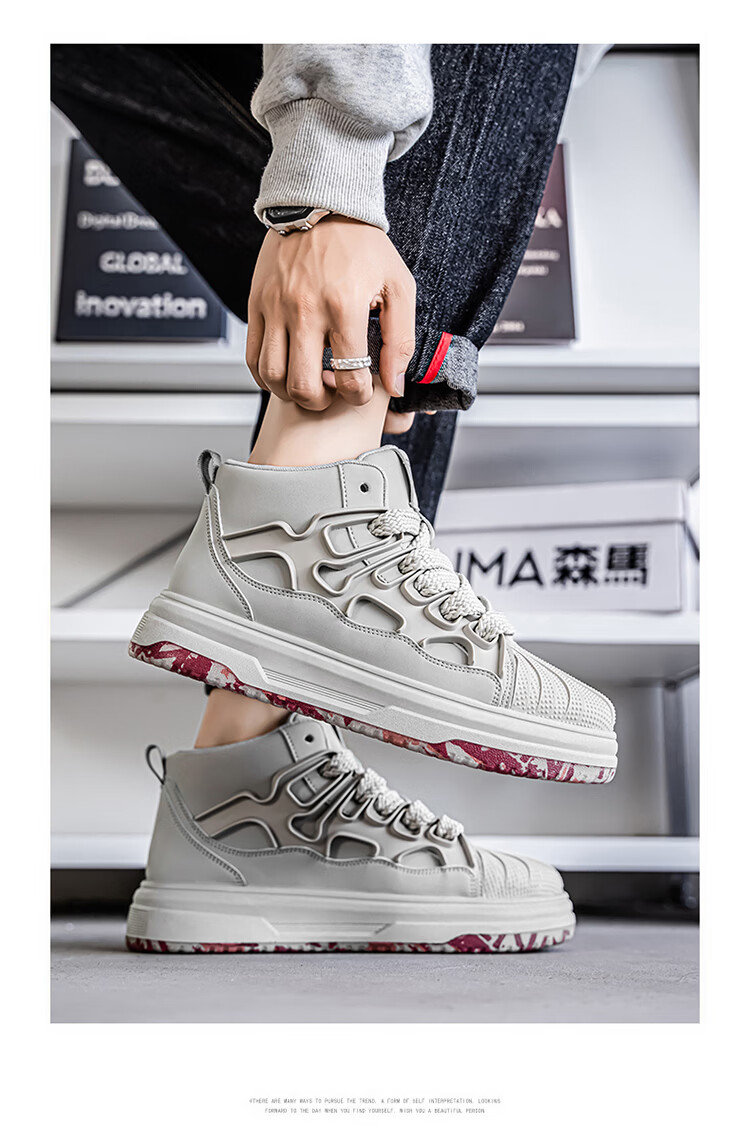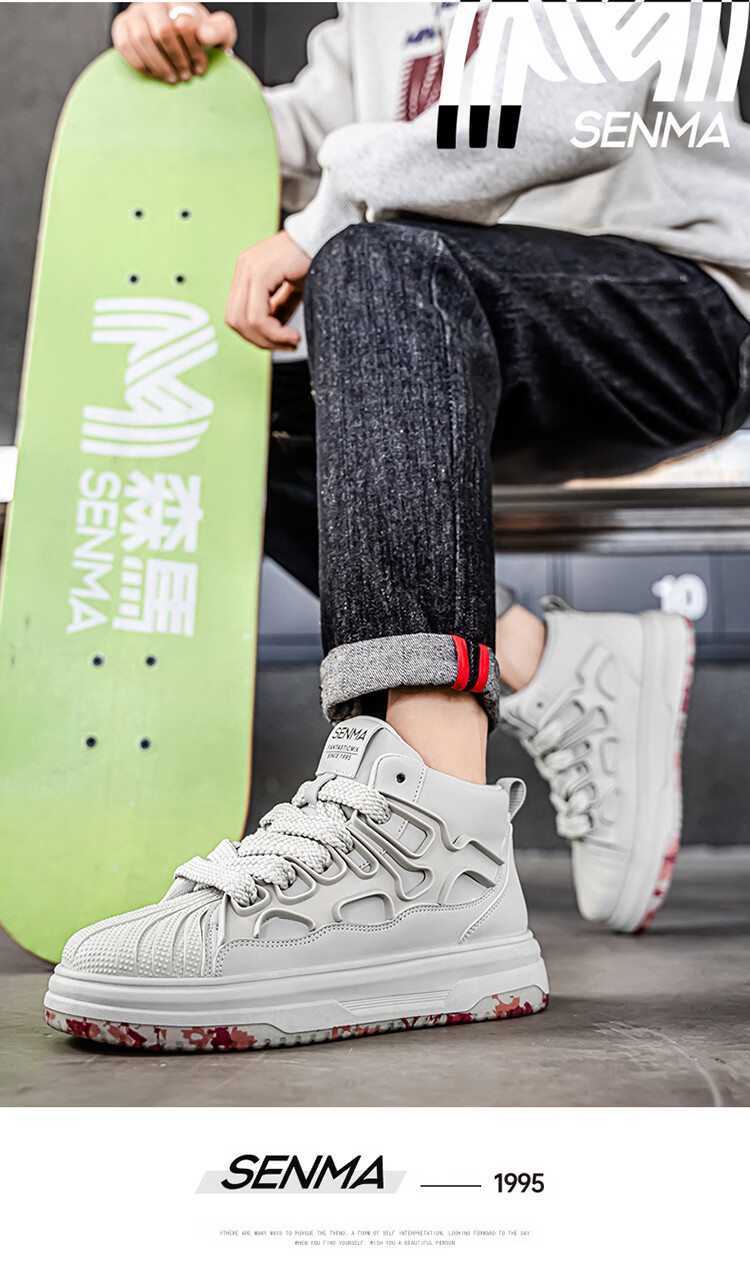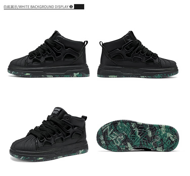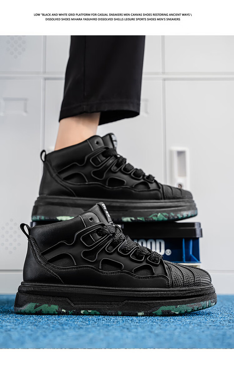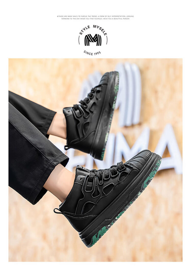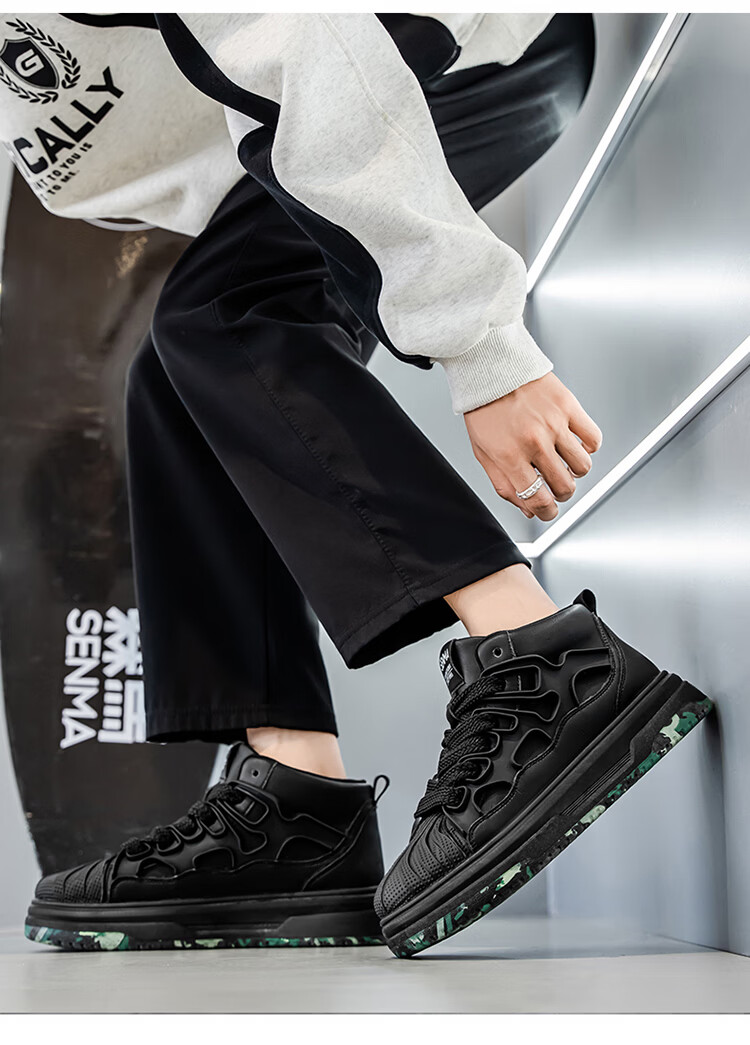 森馬高帮男鞋2026春季皮面防防水黑色板鞋男士百搭增高厚底休闲运动鞋 黑色【基础款】 39 标准码数/现货秒发