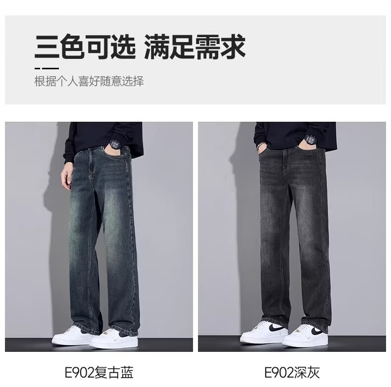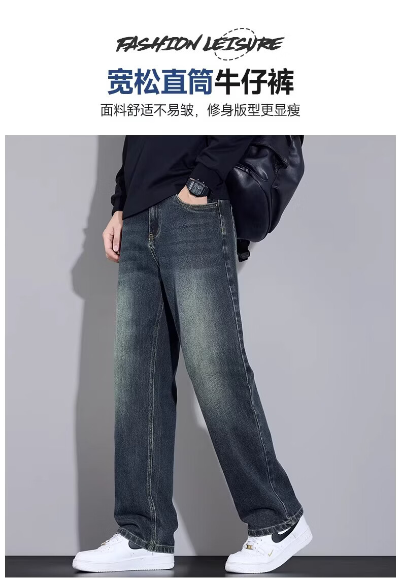 真维斯高端牛仔裤男士2026新款宽松直筒男裤春秋季美式复古休闲长裤子男 复古蓝 28 【腰围二尺一】