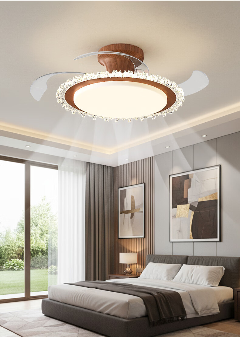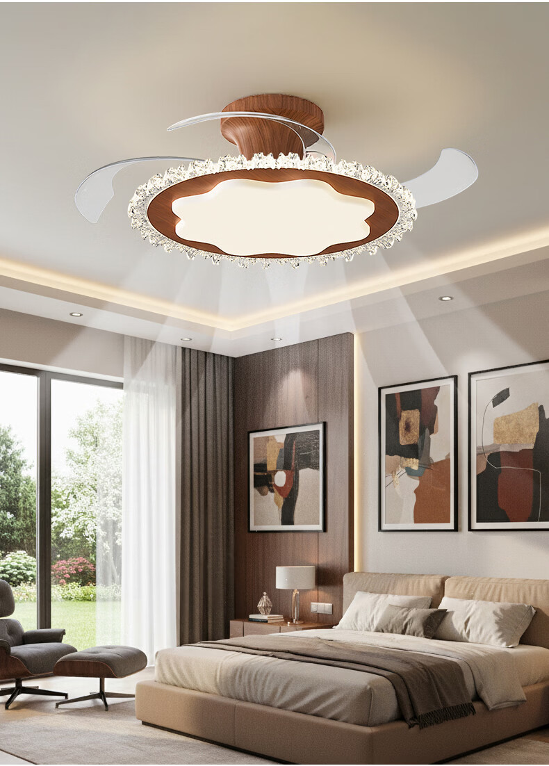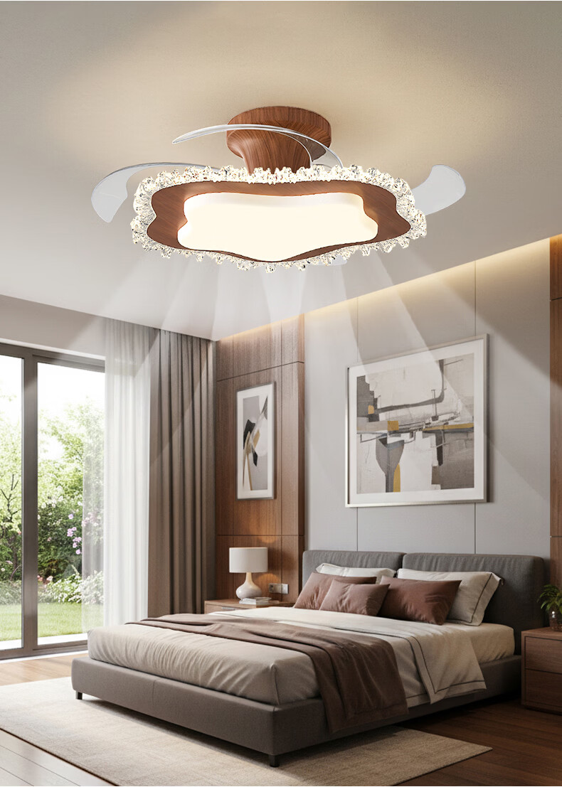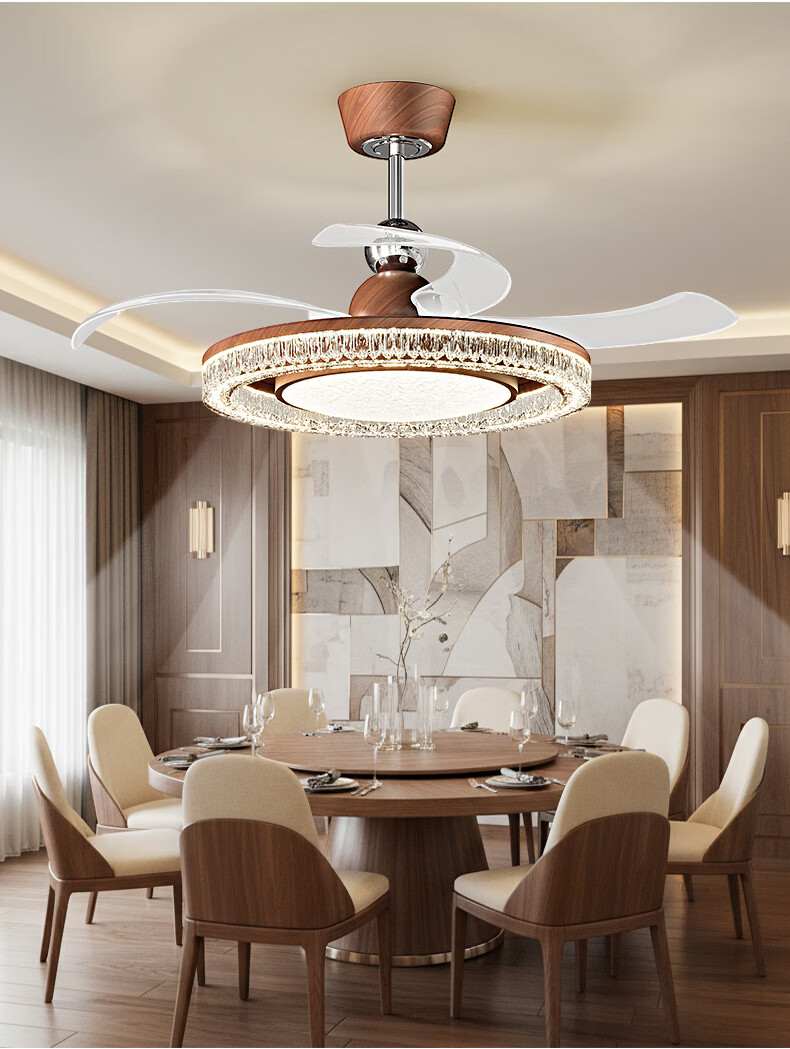 繁奢胡桃木色风扇灯组合套餐客厅灯卧室餐厅带风扇灯具大全2026中山灯 8367+胡桃色+110CM+离线语音.