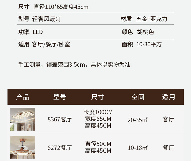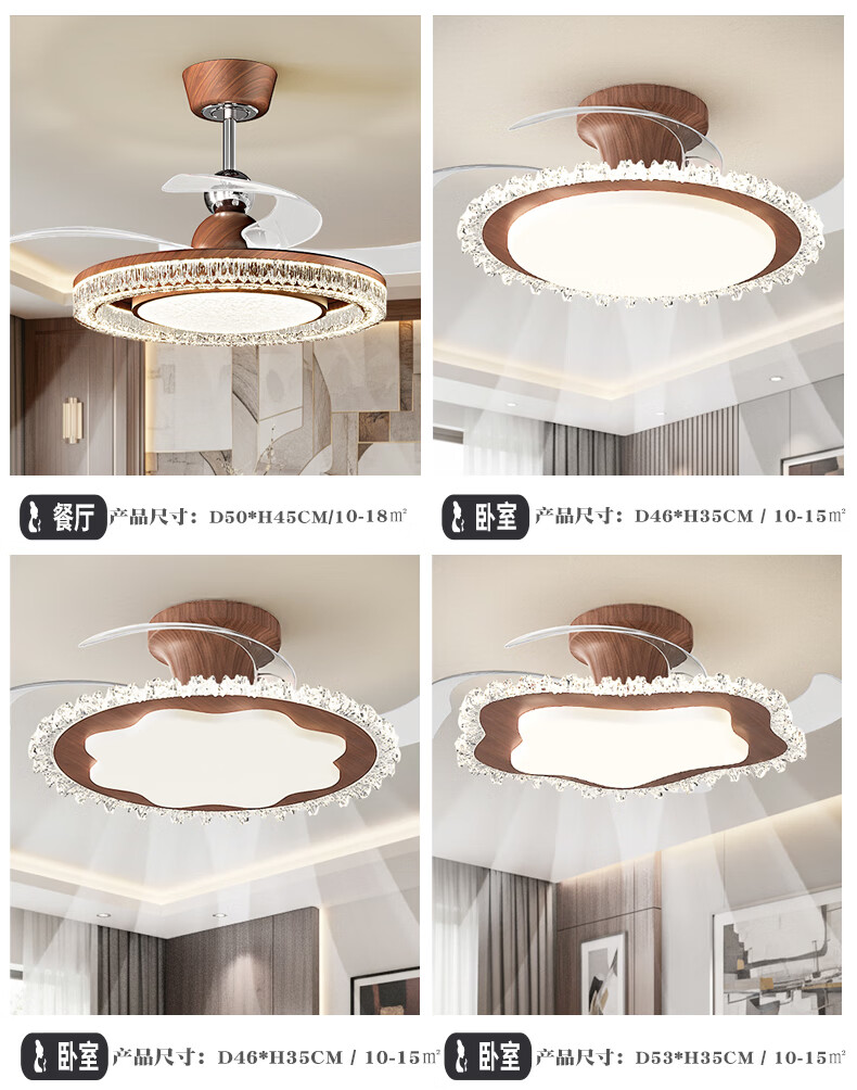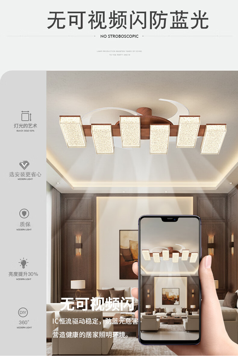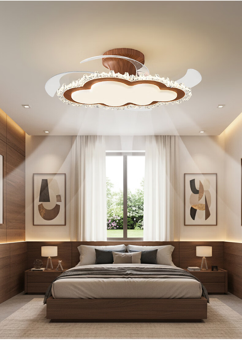 繁奢胡桃木色风扇灯组合套餐客厅灯卧室餐厅带风扇灯具大全2026中山灯 8367+胡桃色+110CM+离线语音.