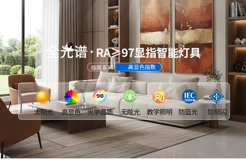 雷士(NVC)高端客厅吸顶灯动态淡彩光宽色域自然节律光伴生适然光 全色域护眼客厅灯