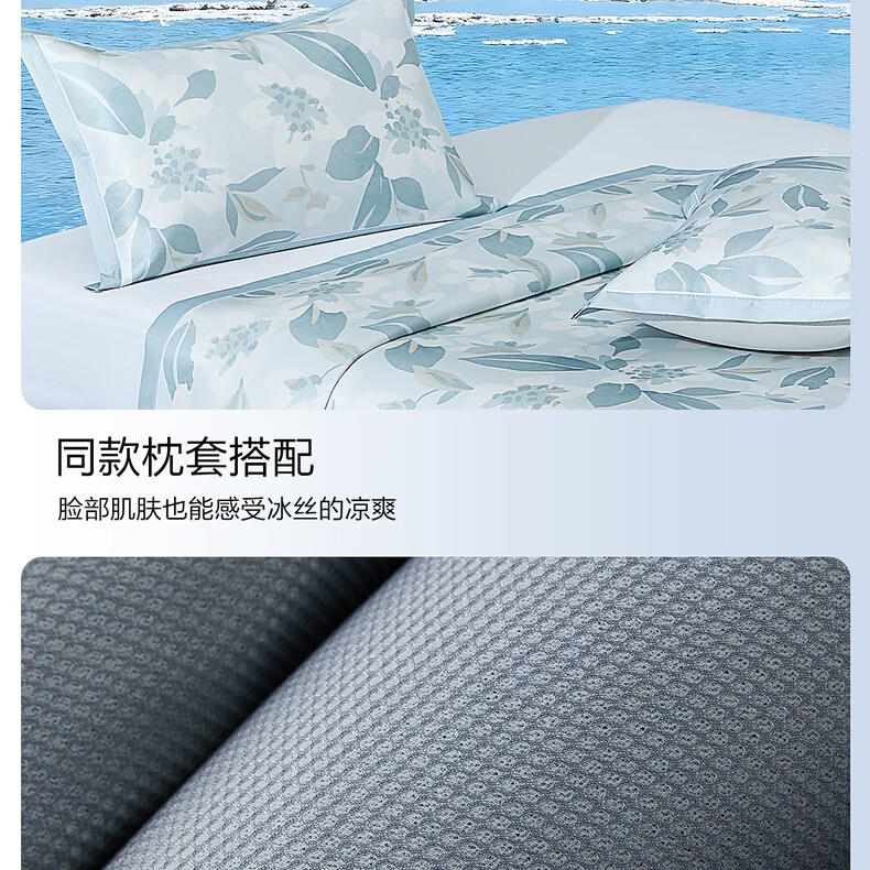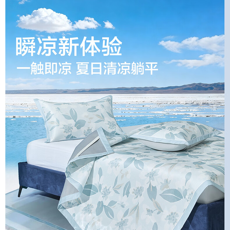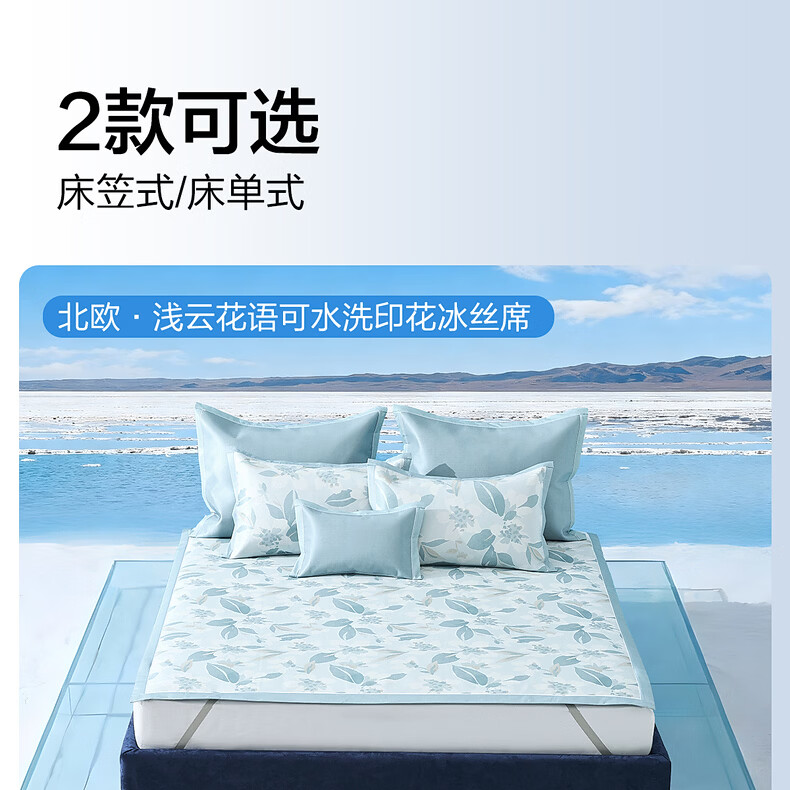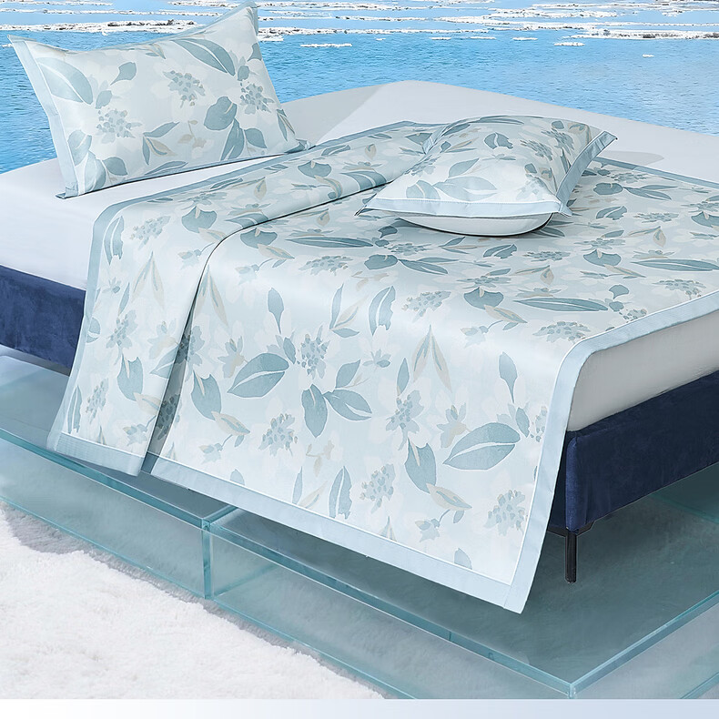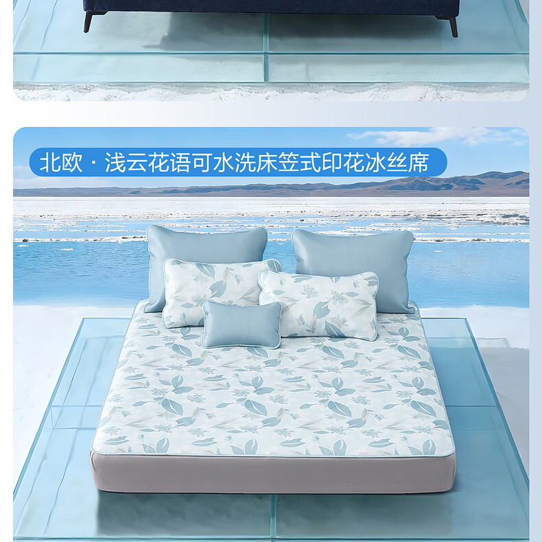 水星家纺北欧·浅云花语可水洗床单式/床笠式印花冰丝席 北欧·浅云花语可水洗印花冰丝席 120cm*195cm