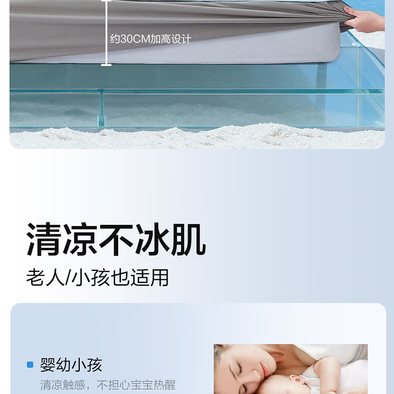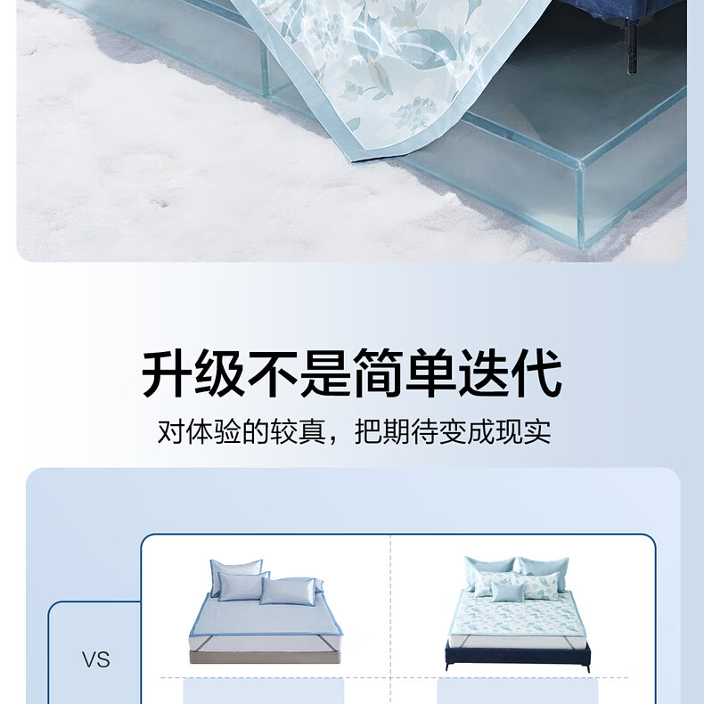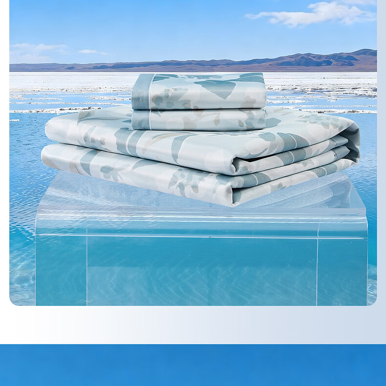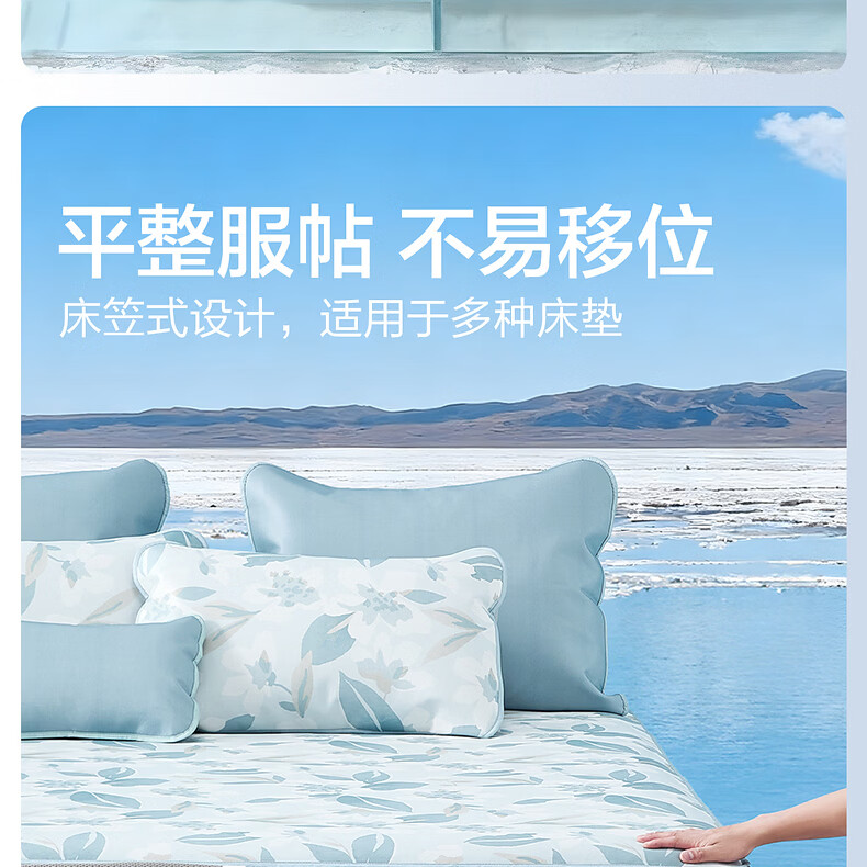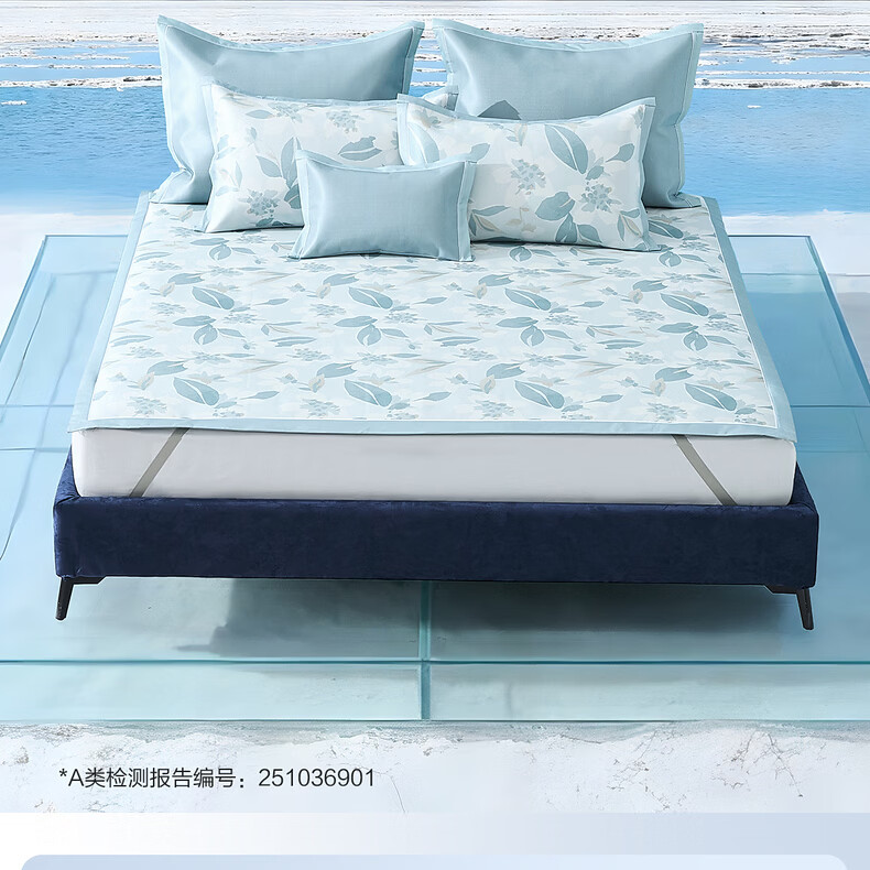 水星家纺北欧·浅云花语可水洗床单式/床笠式印花冰丝席 北欧·浅云花语可水洗印花冰丝席 120cm*195cm
