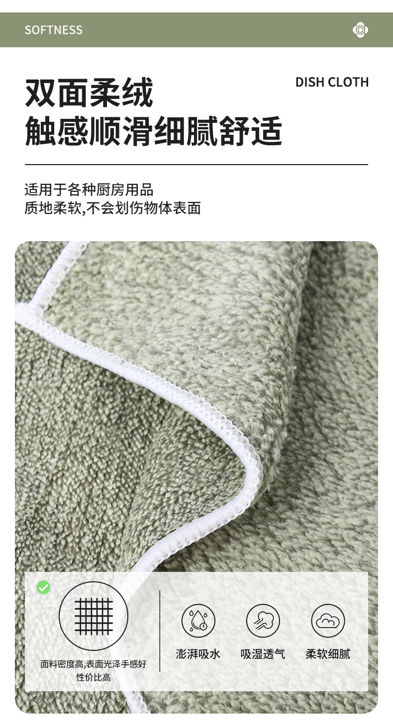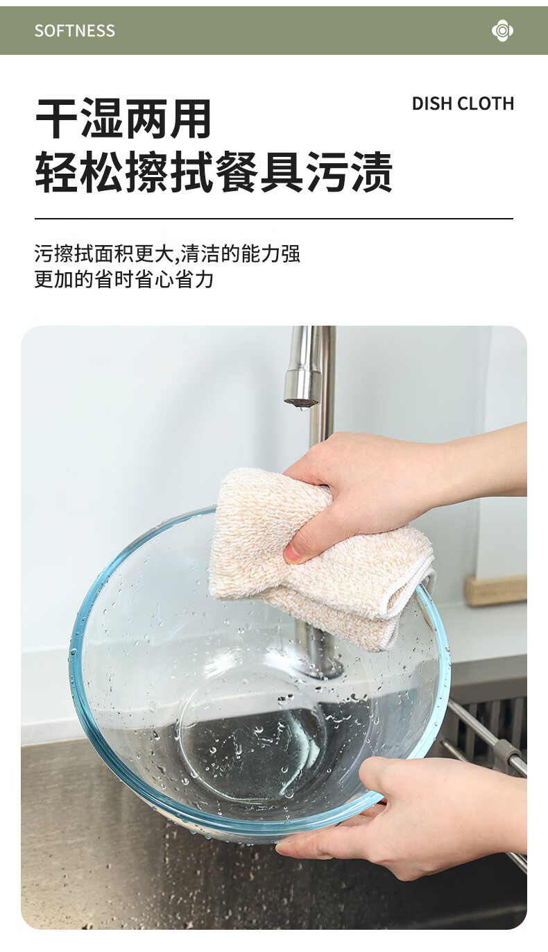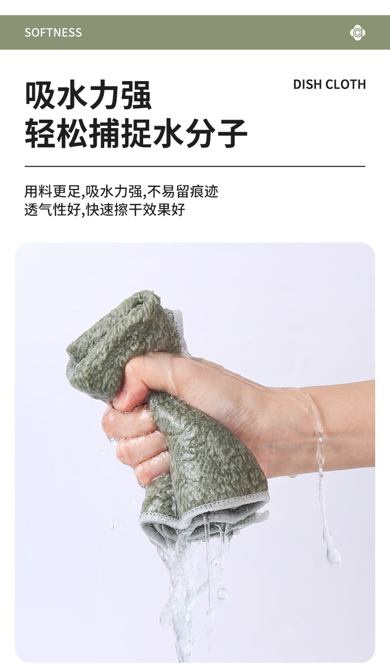 洁丽雅吸水抹布5条30*40cm家务清洁巾擦桌子不易掉毛