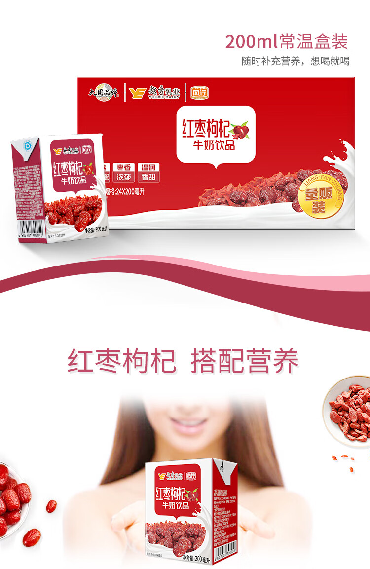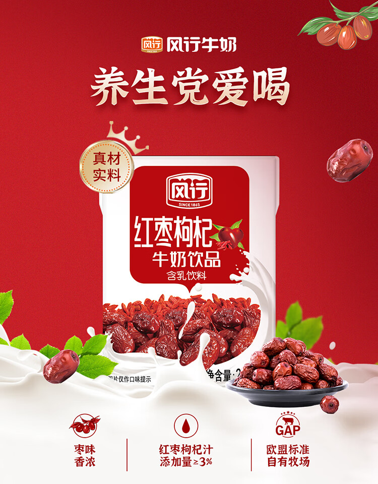 风行红枣枸杞牛奶饮品 200ml*24盒整箱牛奶量贩装家庭装 礼盒装送礼