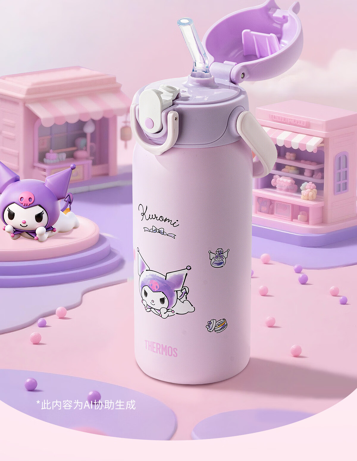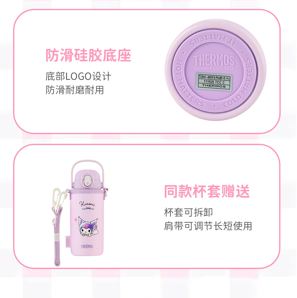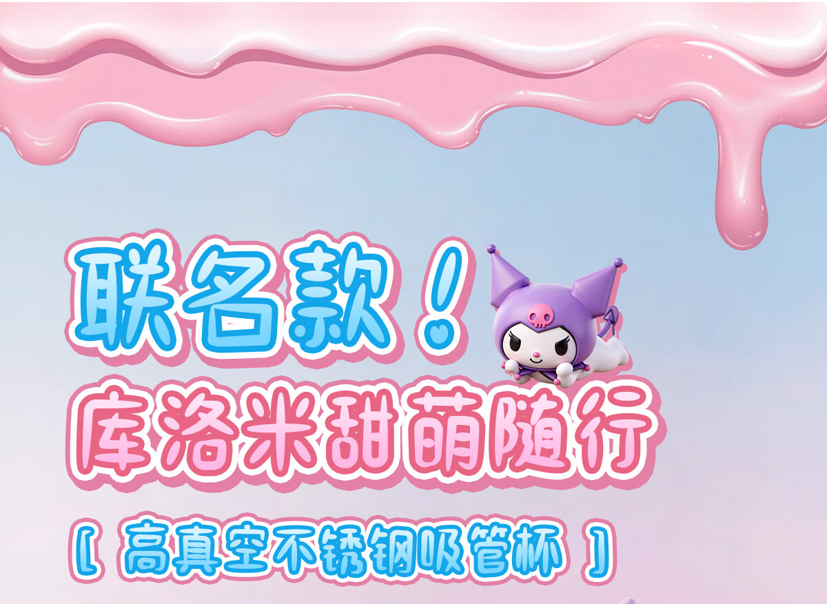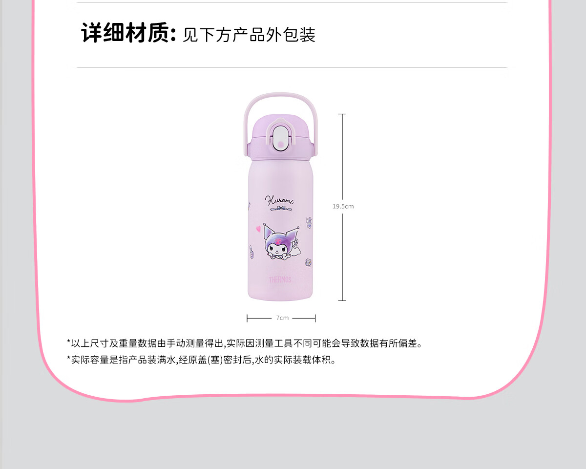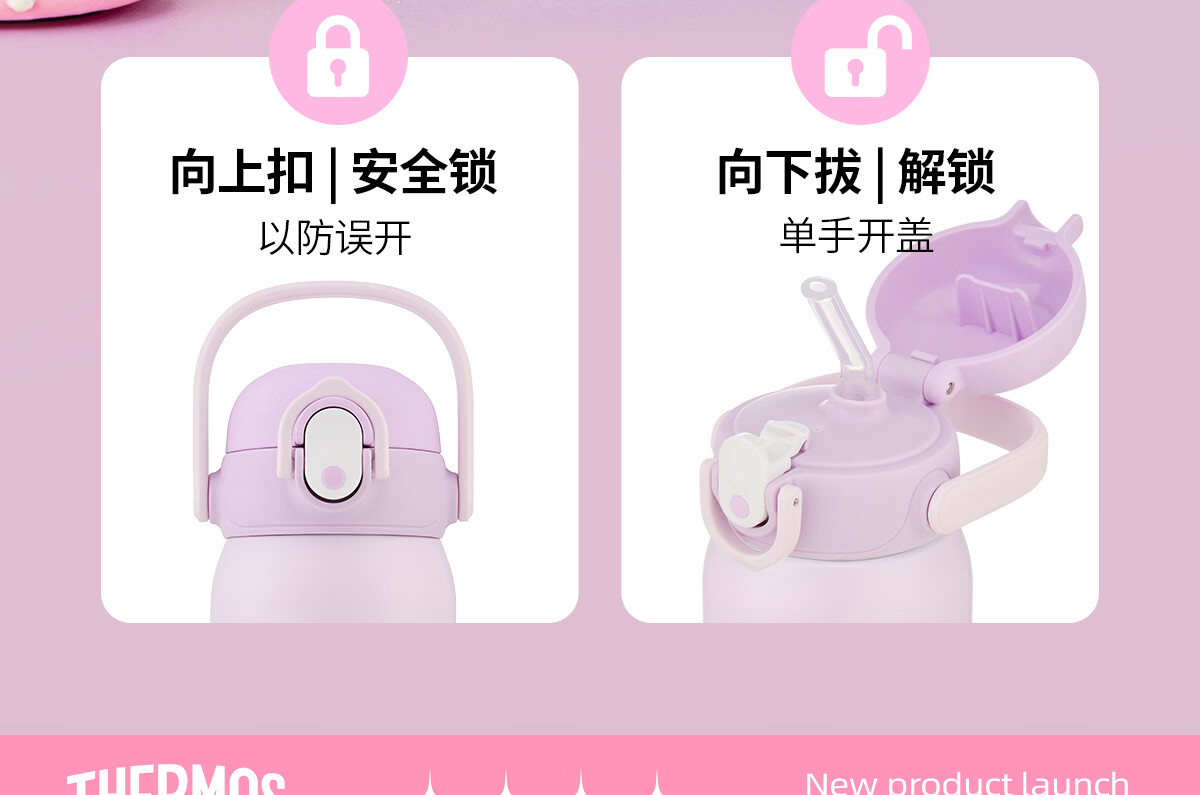 膳魔师库洛米316L不锈钢吸管杯安全锁扣儿童学生水杯460ml 紫