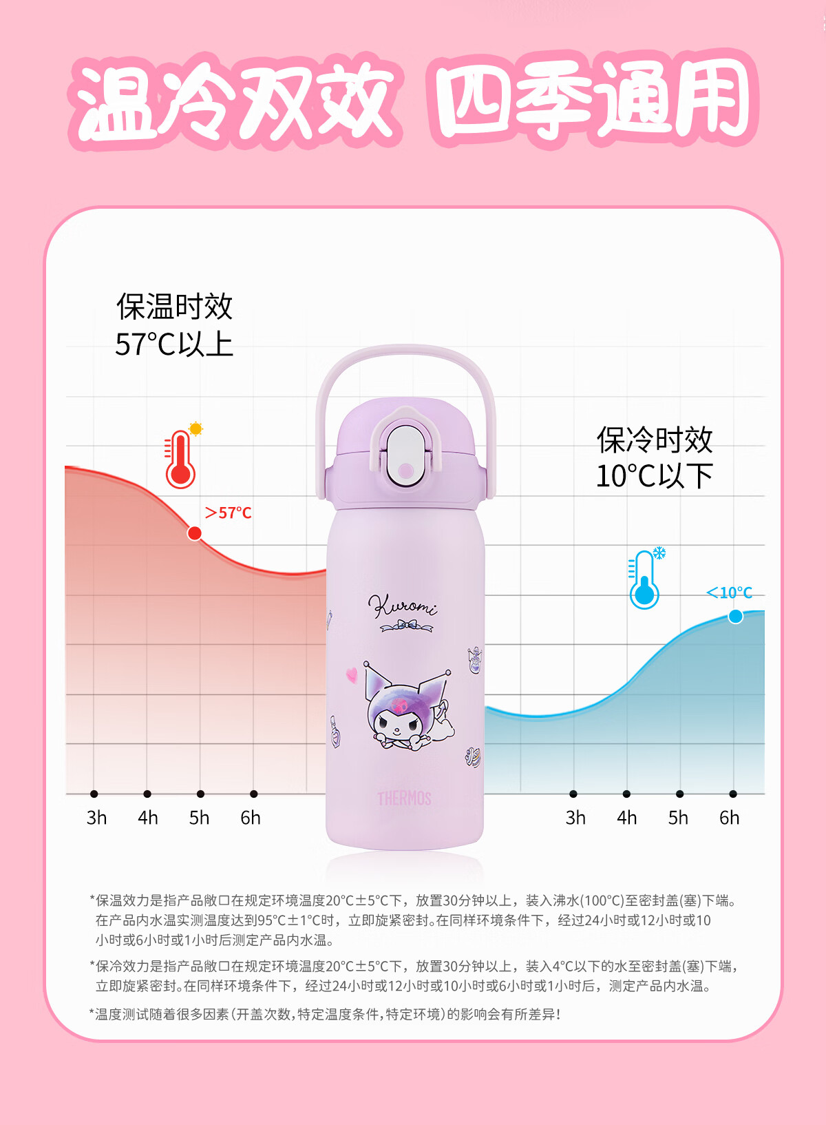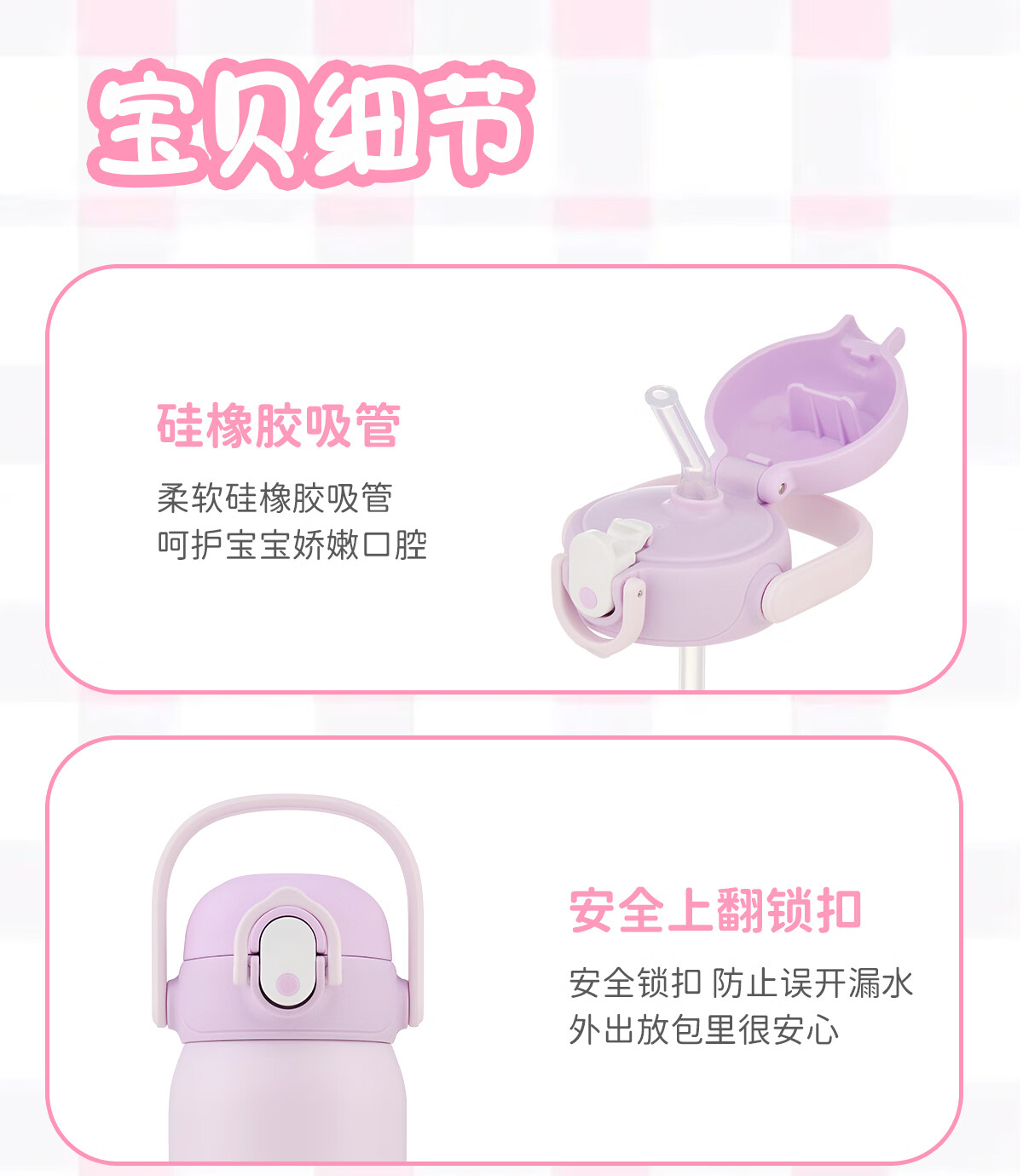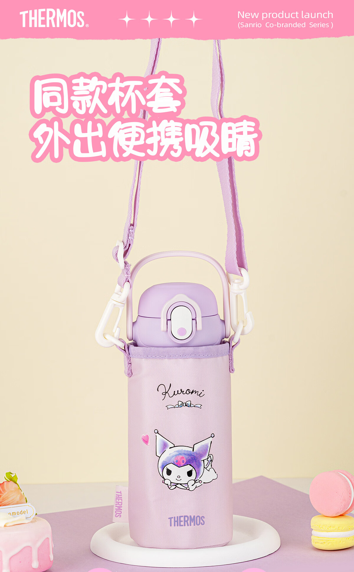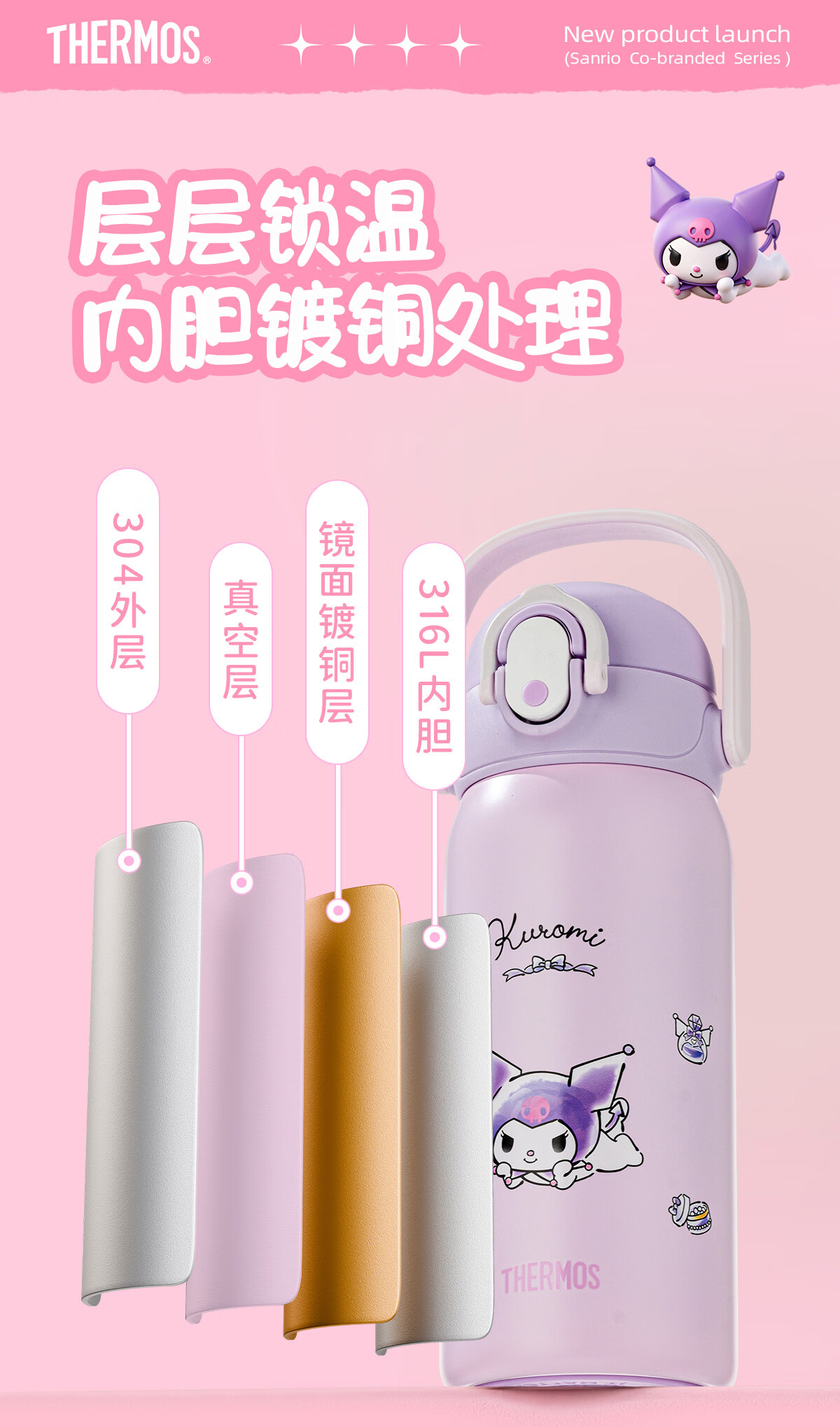 膳魔师库洛米316L不锈钢吸管杯安全锁扣儿童学生水杯460ml 紫