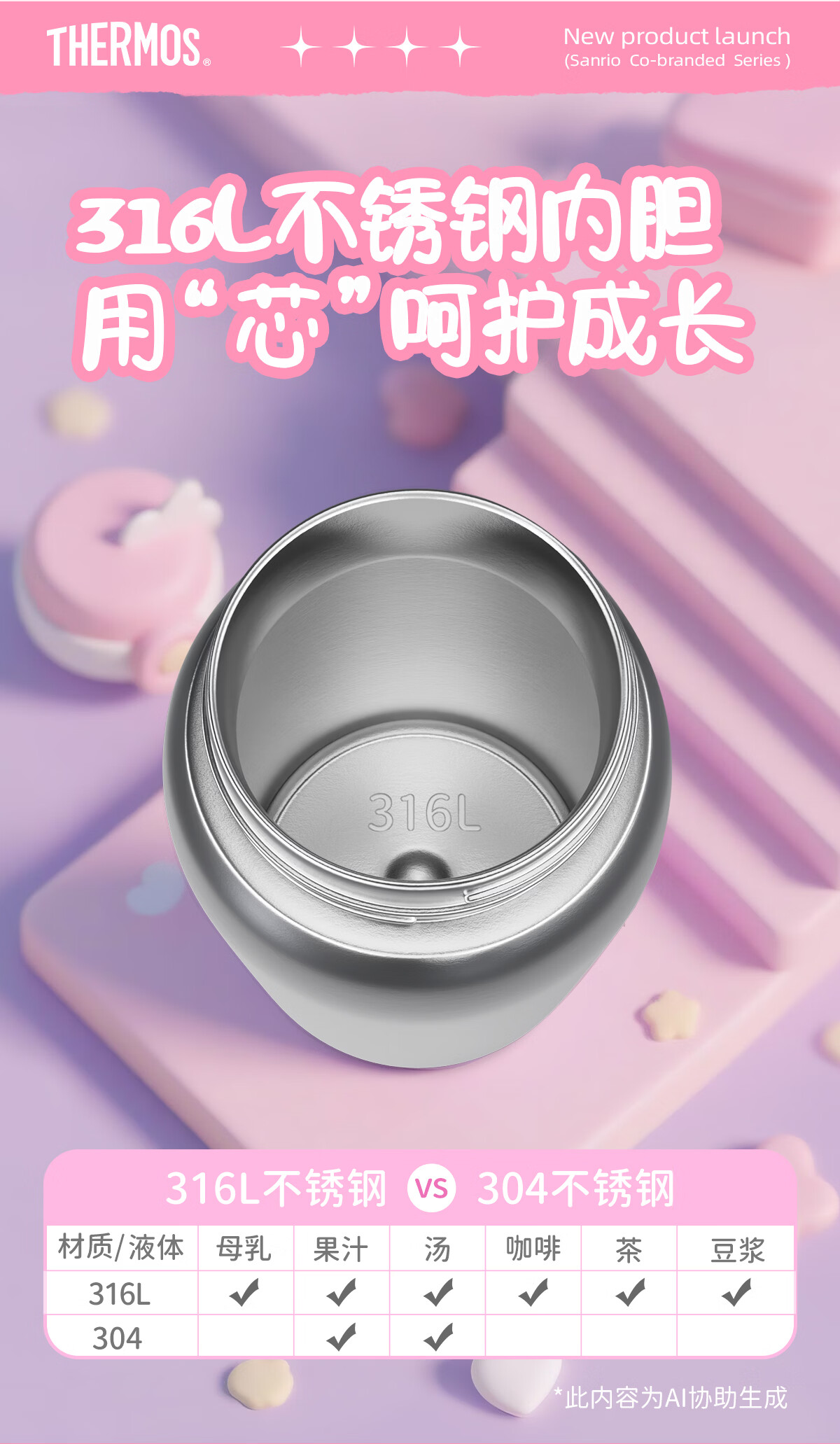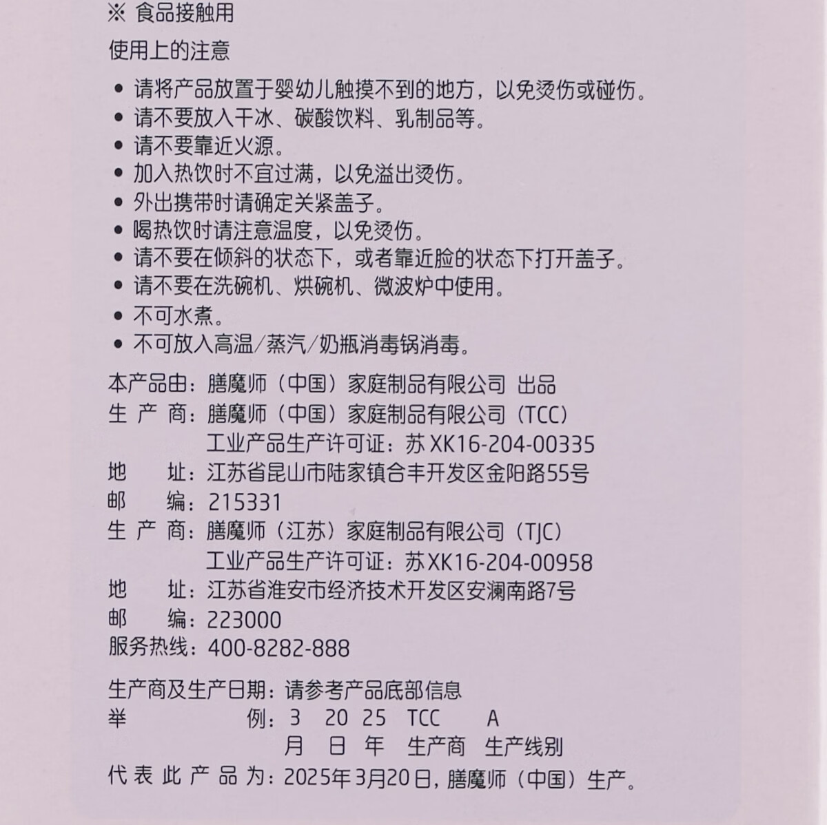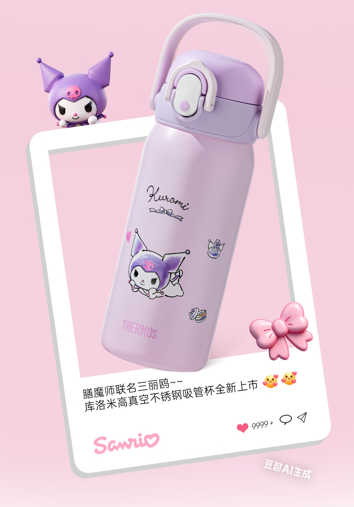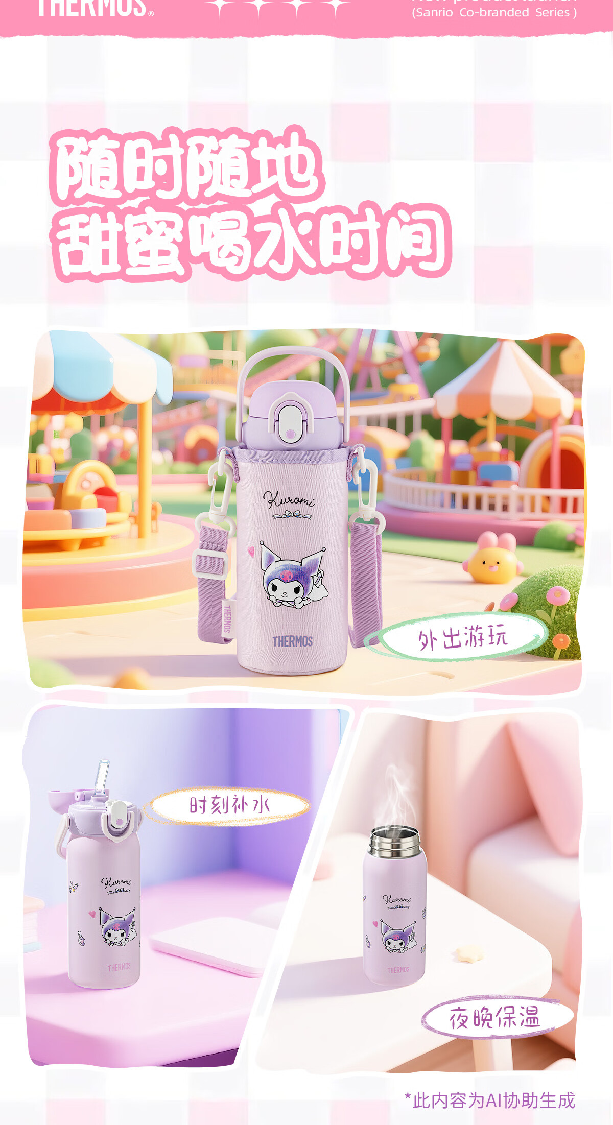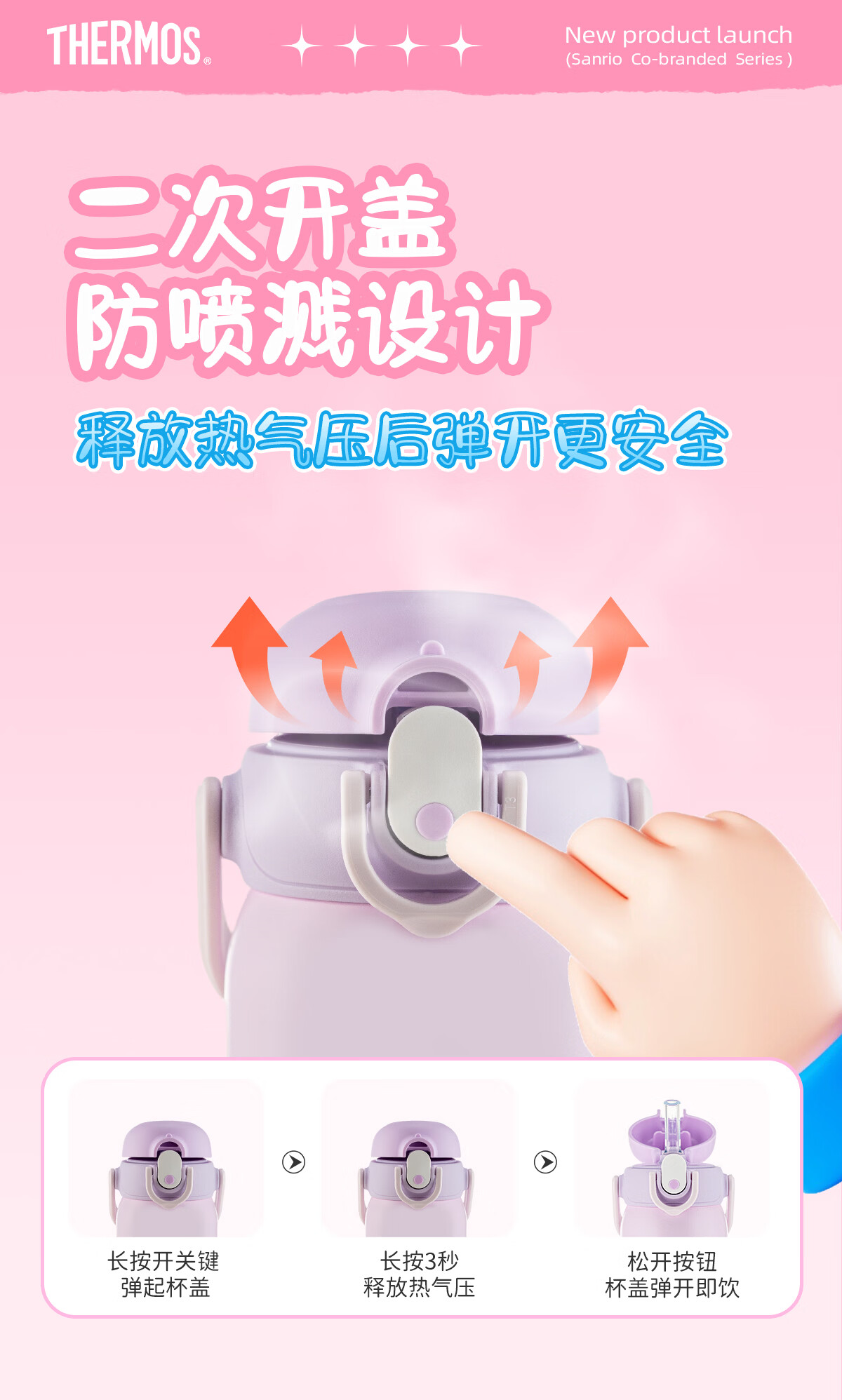 膳魔师库洛米316L不锈钢吸管杯安全锁扣儿童学生水杯460ml 紫
