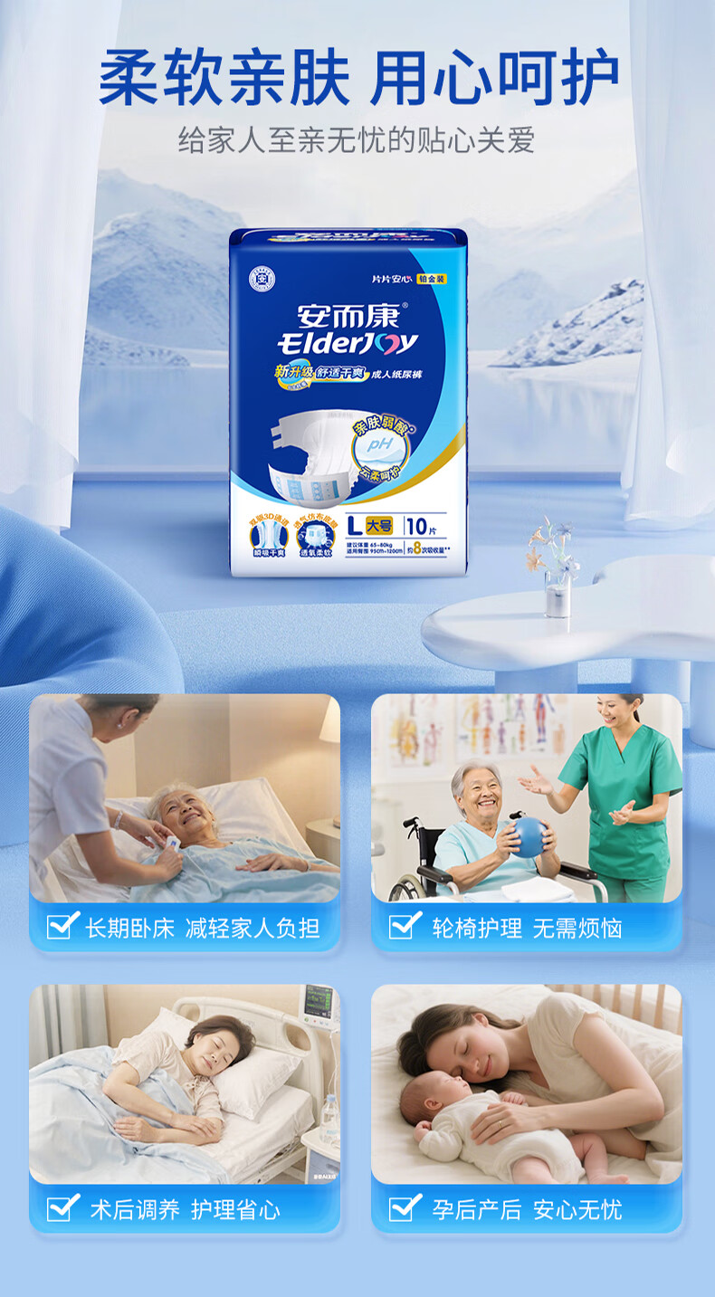 安而康(Elderjoy)舒适干爽成人纸尿裤 老年人用亲肤腰贴式纸尿裤 产妇尿不湿新升级 【品牌热销】舒适干爽 M码 80片(10片*8包) /箱