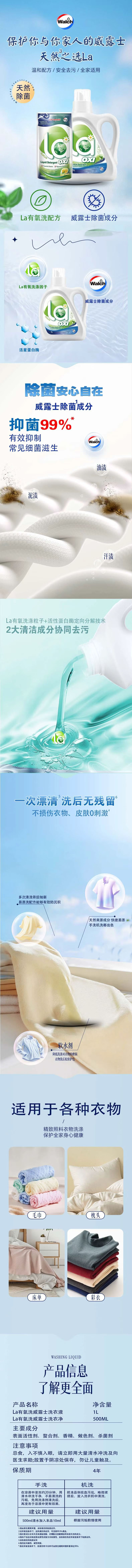 威露士(Walch)la有氧洗衣液套装【除菌除螨留香】 松木500mL*1袋