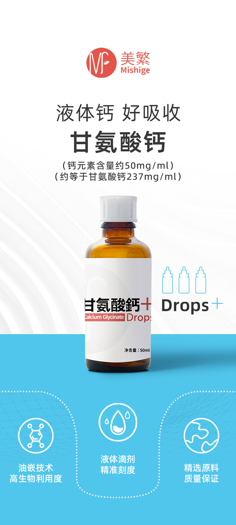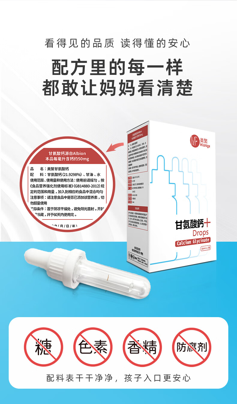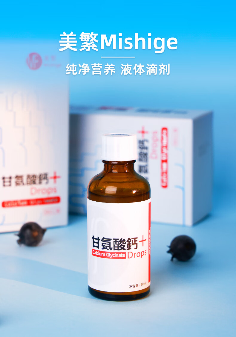 美繁甘氨酸钙液体滴剂50ml 第三代液体螯合钙 儿童菁华瓶 原装进口 50ml/瓶*2瓶