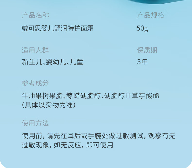 戴·可·思婴儿宝宝面霜 舒润特护面霜 儿童面霜 婴儿舒润特护面霜50g