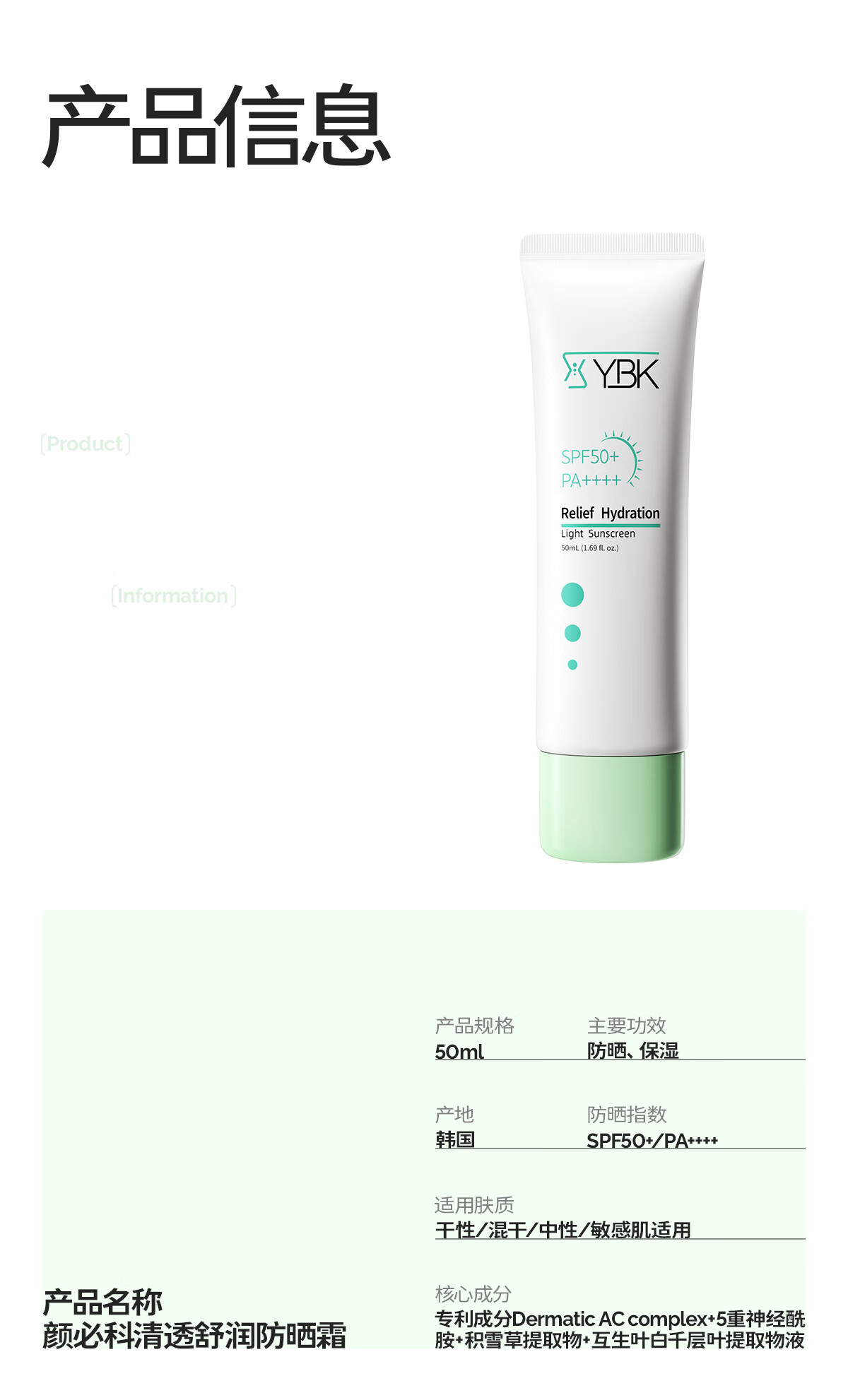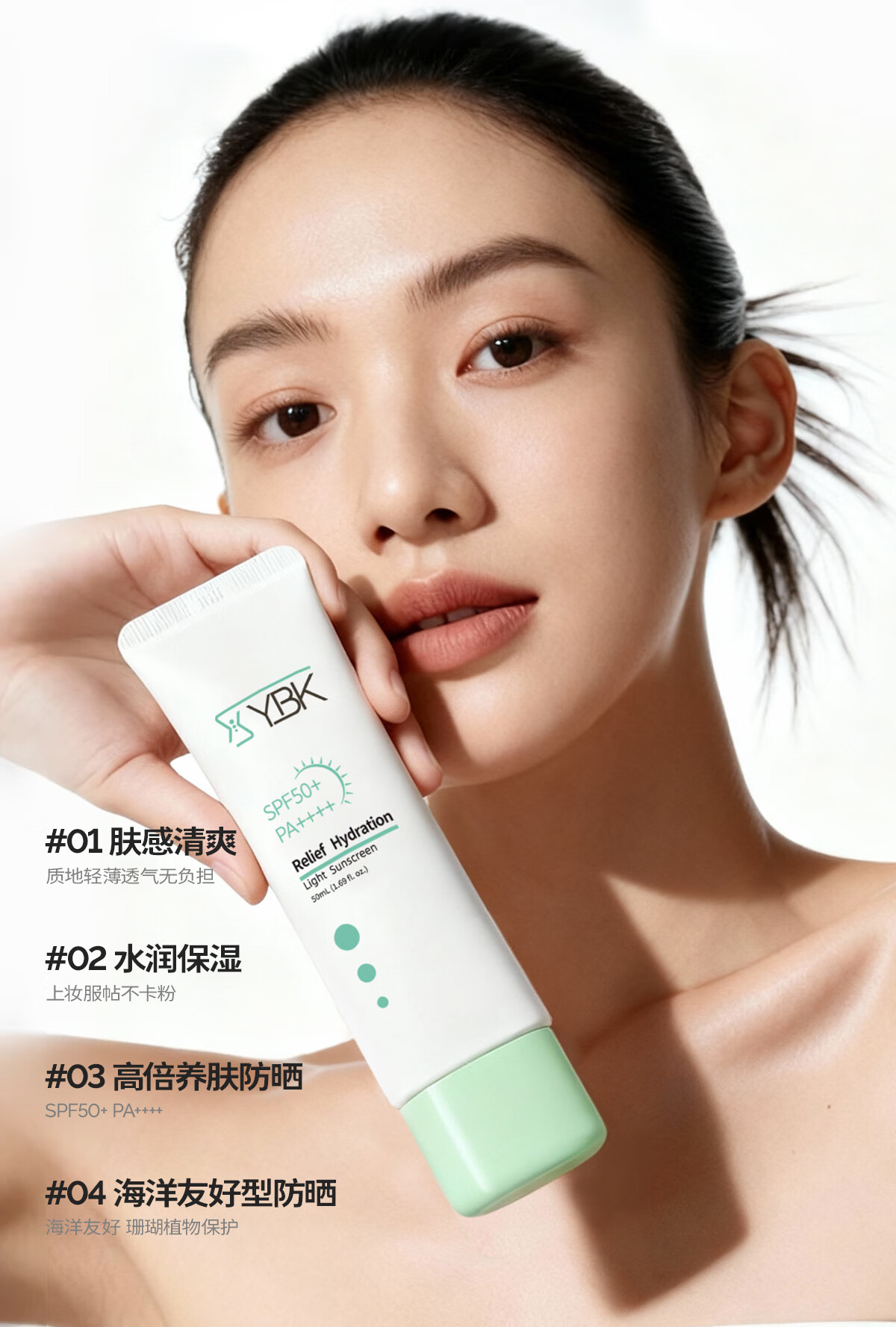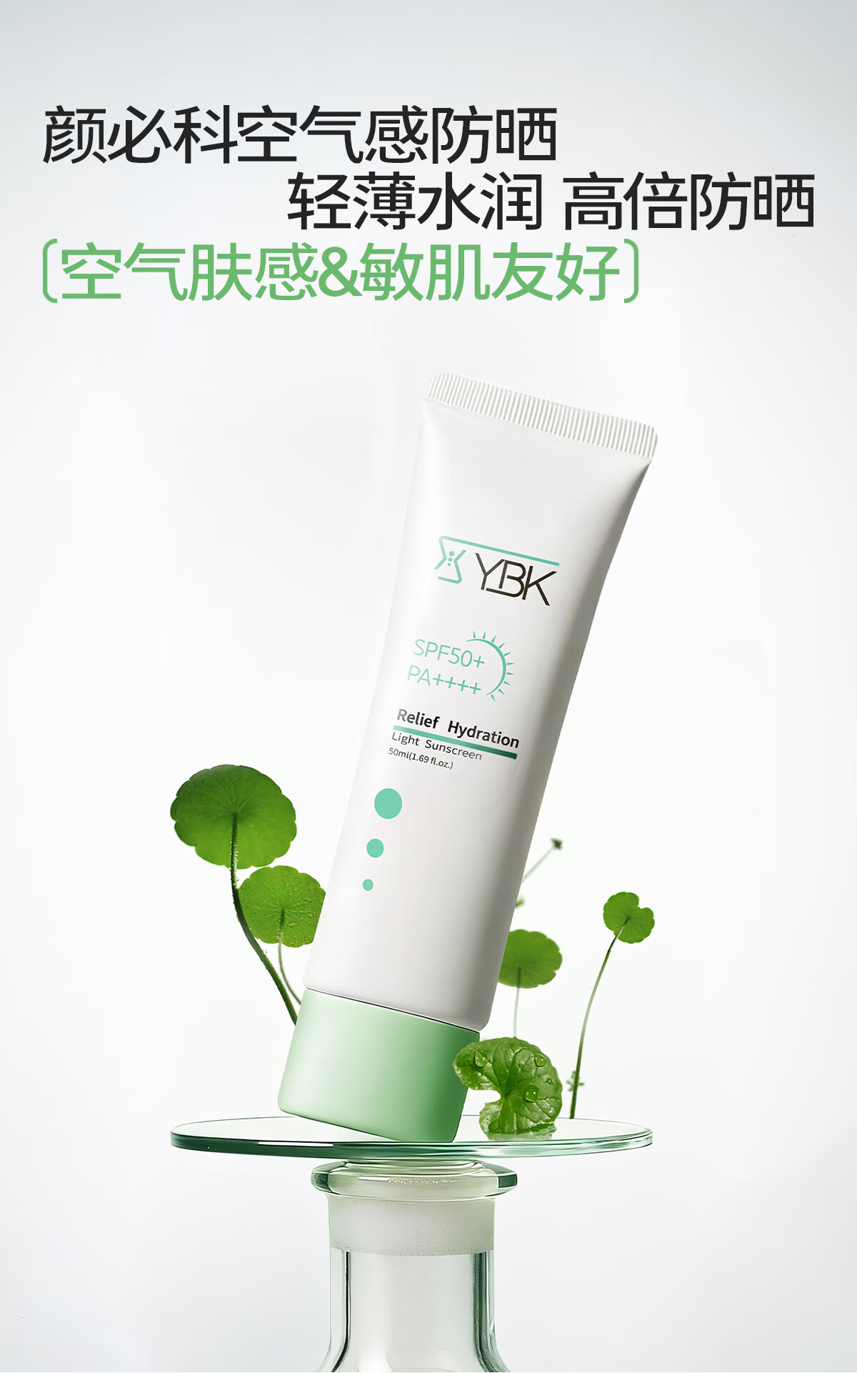 颜必科(YBK)空气感防晒霜清透保湿不粘腻隔离防晒遮瑕三合一敏肌友好男女可用 【店铺爆款】空气感防晒霜50ml