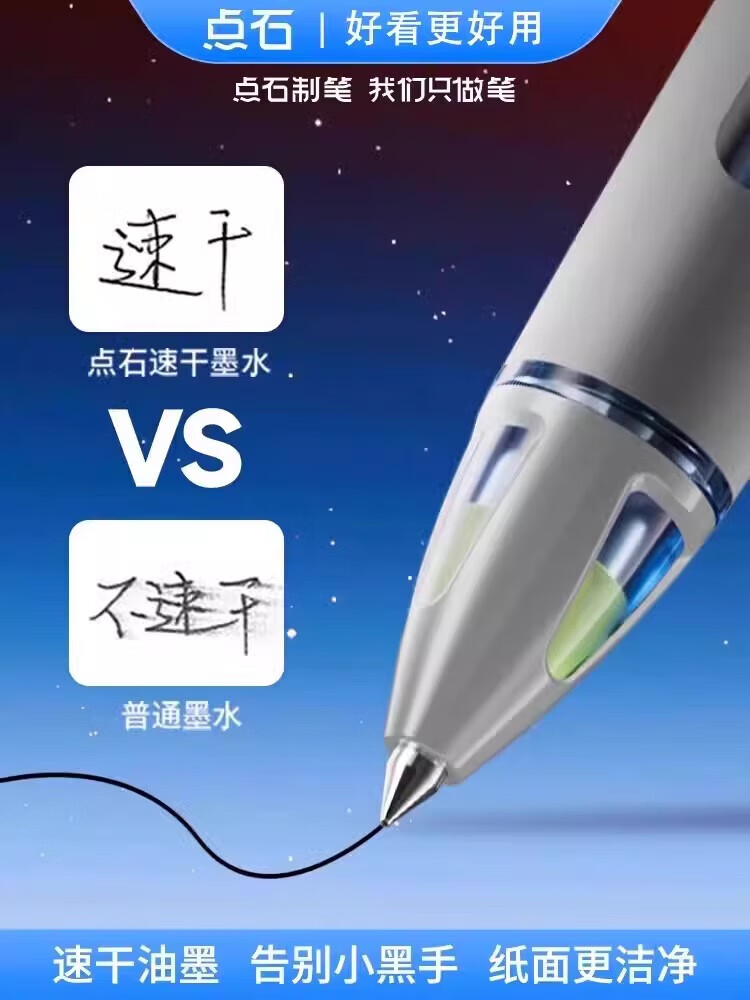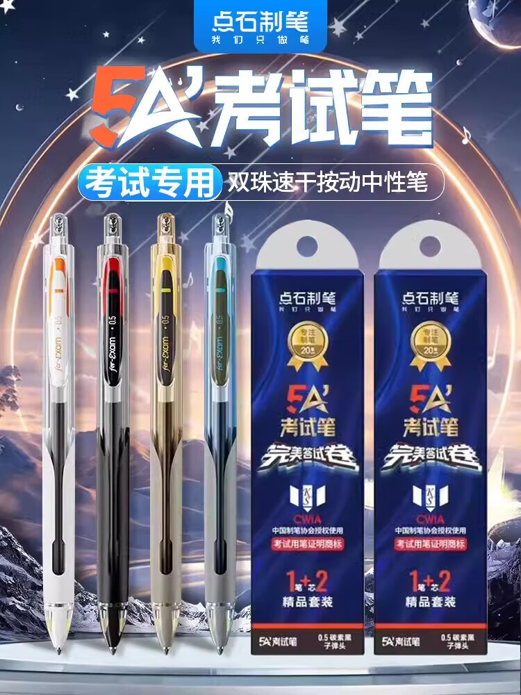 正品点石5A考试笔双珠速干按动静音中性笔0.5mm碳素黑子弹头学生刷题笔办公签字笔 5A原装笔芯24支【书写黑】