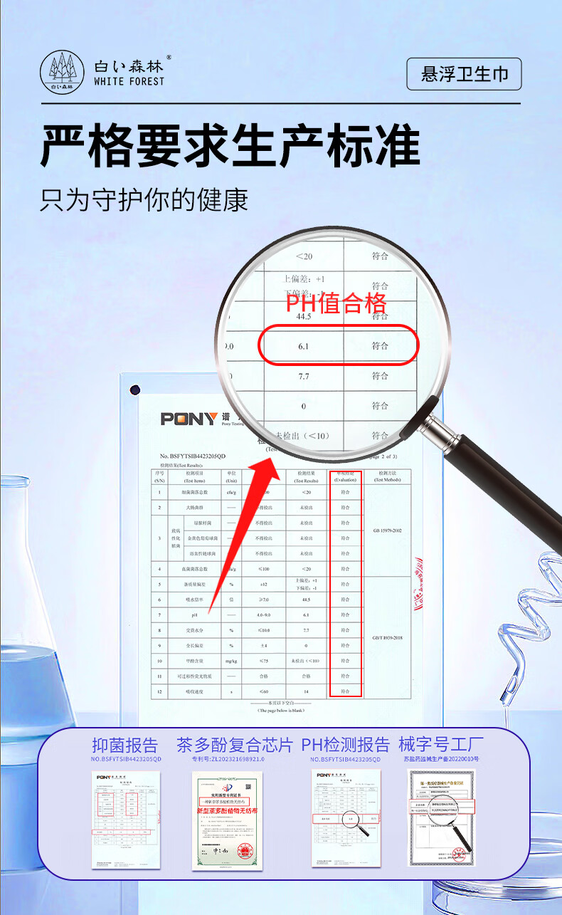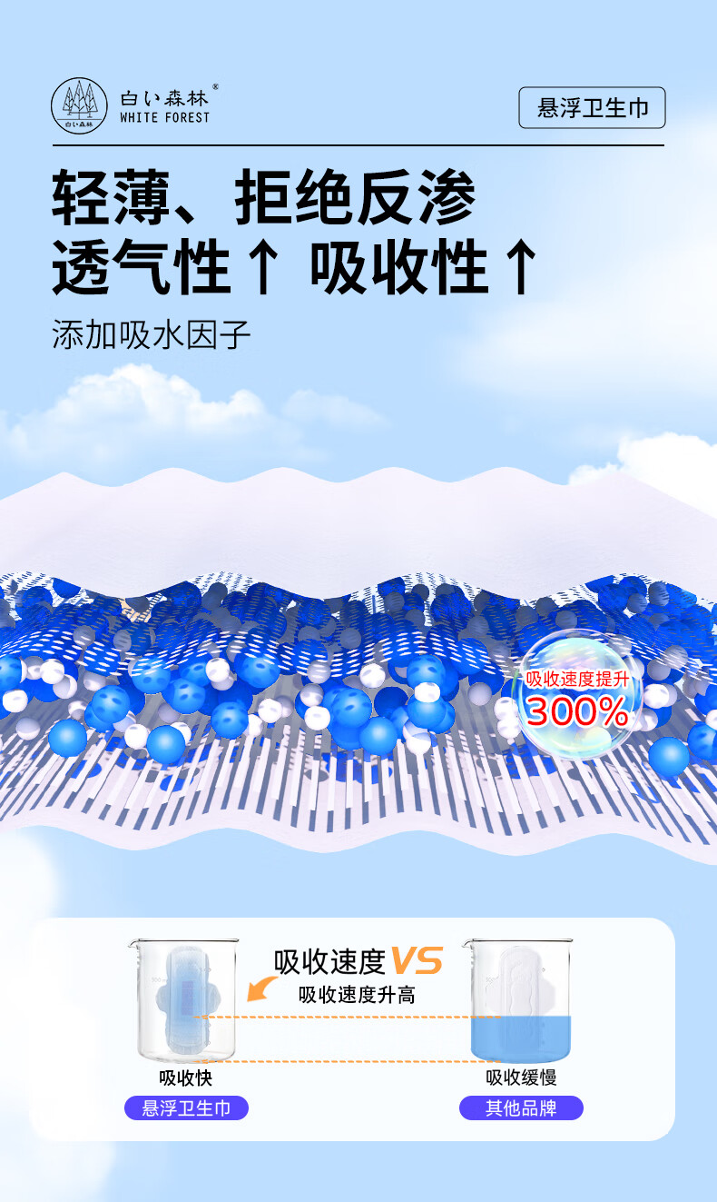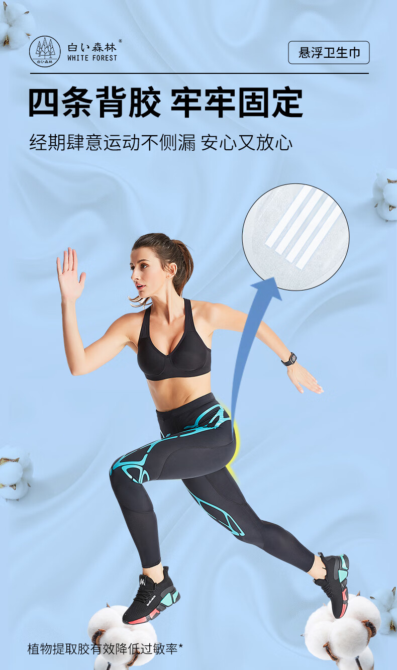 白森林(white forest)茶多酚悬浮卫生巾轻薄透气量大防侧漏无感不闷姨妈巾日夜组合 1护3日1夜1加长【共65片】+湿巾35片