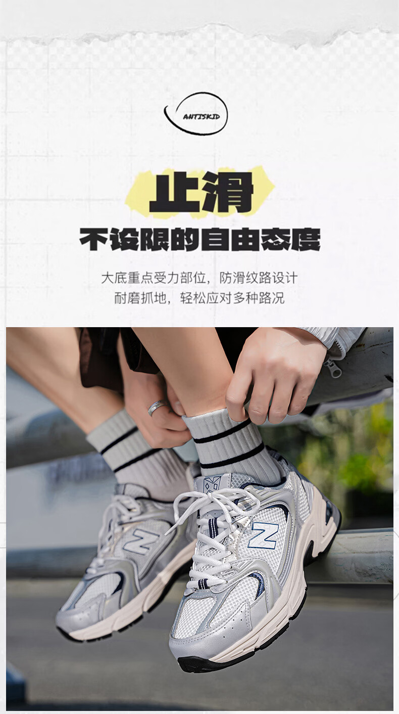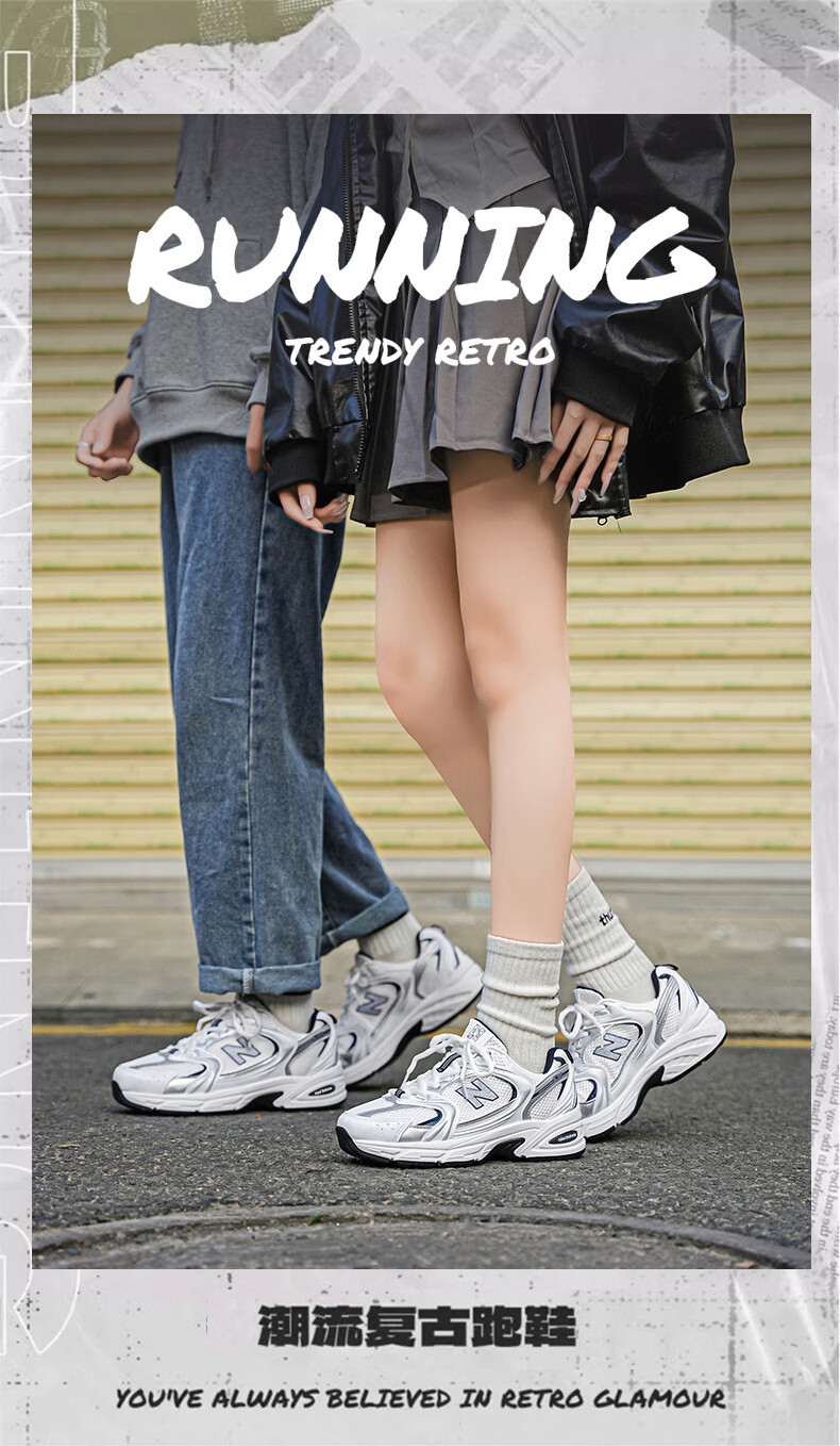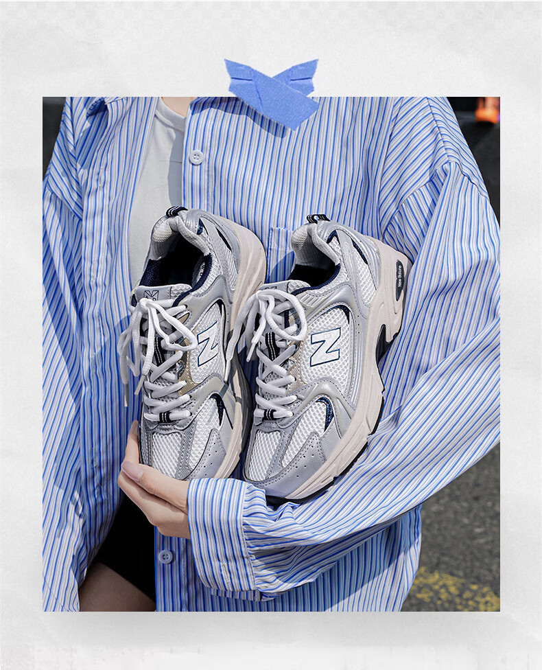 新百伦530运动鞋女2026新款夏季男款男士鞋子百搭网面白色男 白银 36